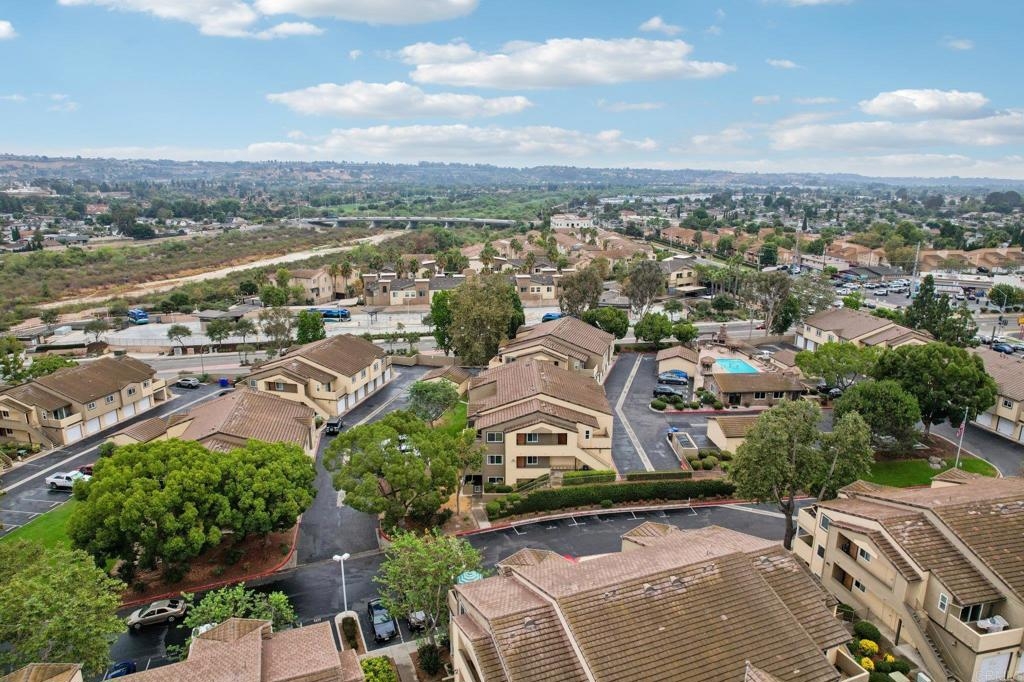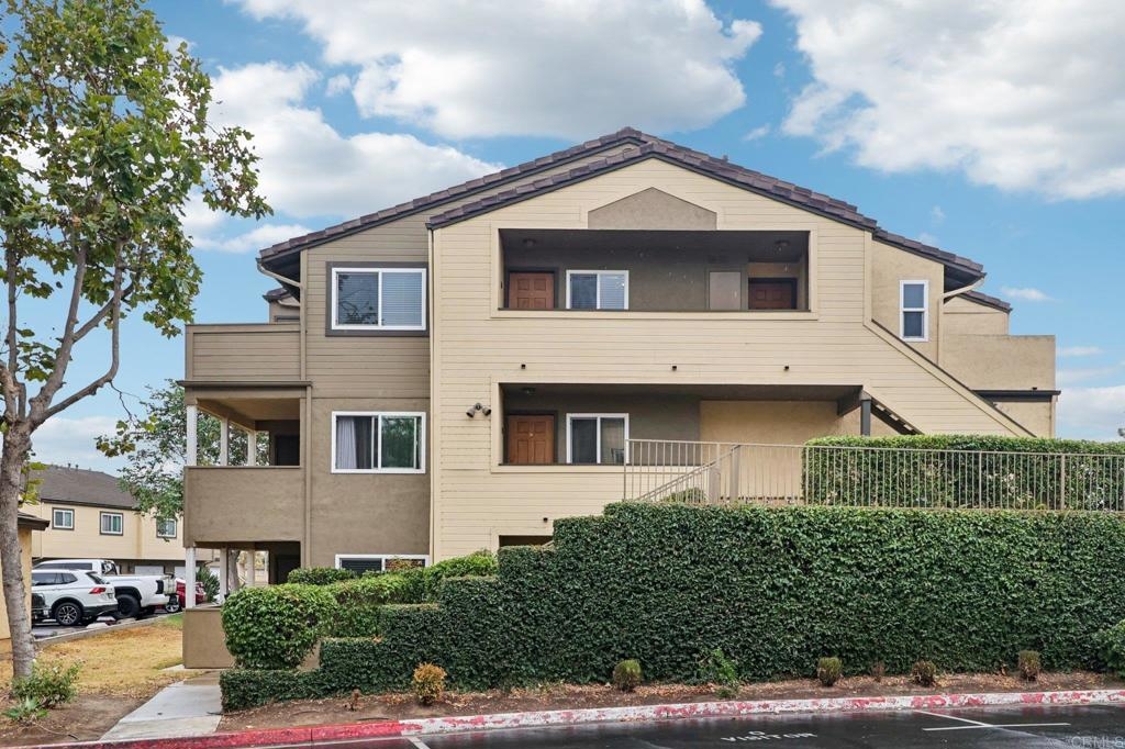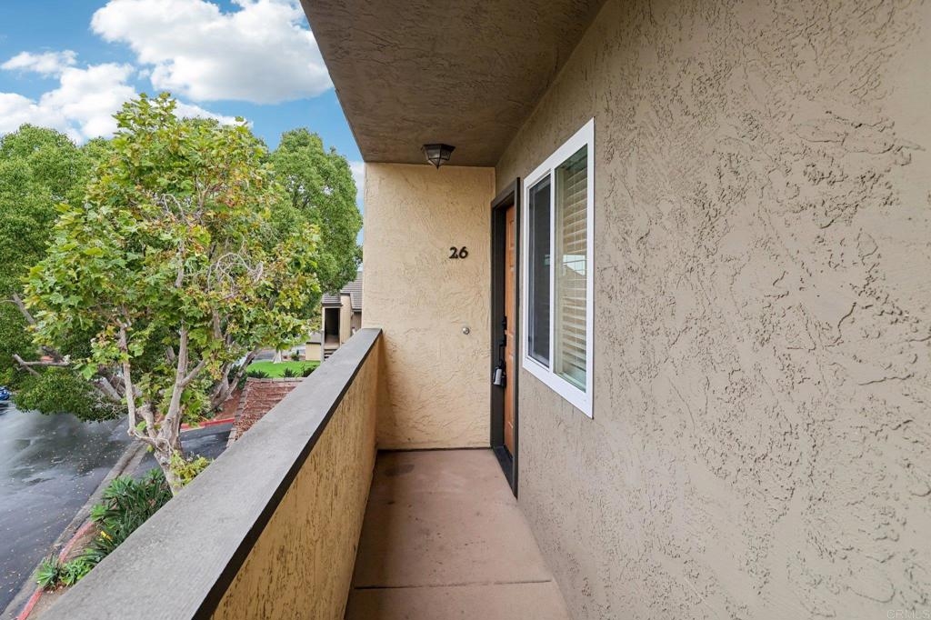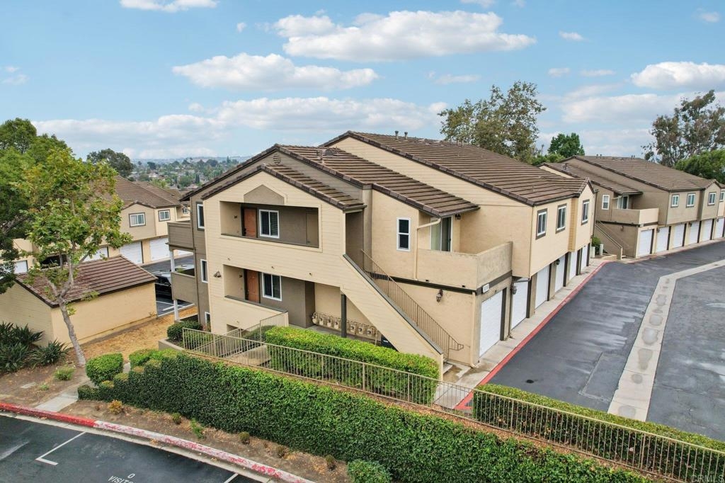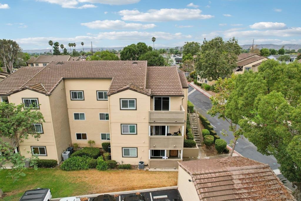 Welcome to this upper-level end-unit condo in the gated community of Stonemark at Los Morros, located in desirable North Oceanside. This beautiful 2-bedroom, 2-bath home offers vaulted ceilings and abundant natural light across its well-designed 900 square feet. The kitchen features granite countertops, stainless steel appliances, and a modern, open layout that flows seamlessly into the dining and living areas. Additional conveniences include in-unit laundry with washer and dryer, central A/C, and carpet throughout. Enjoy privacy and comfort with no neighbors above, plus a 1-car detached garage, an assigned parking space, and ample guest parking. Relax or entertain on the private balcony which has amazing views, or take advantage of the community’s resort-style amenities including a pool, spa, BBQ area, playground, and fitness center. Ideally situated just 8 miles from the beach, and close to shopping, restaurants, and Camp Pendleton. With low HOA dues covering water, trash, sewer, exterior maintenance, and roof, this property is perfect for first-time buyers, investors, or anyone seeking affordable coastal living in a well-kept, gated complex. Includes a 3 Year Home Warranty.