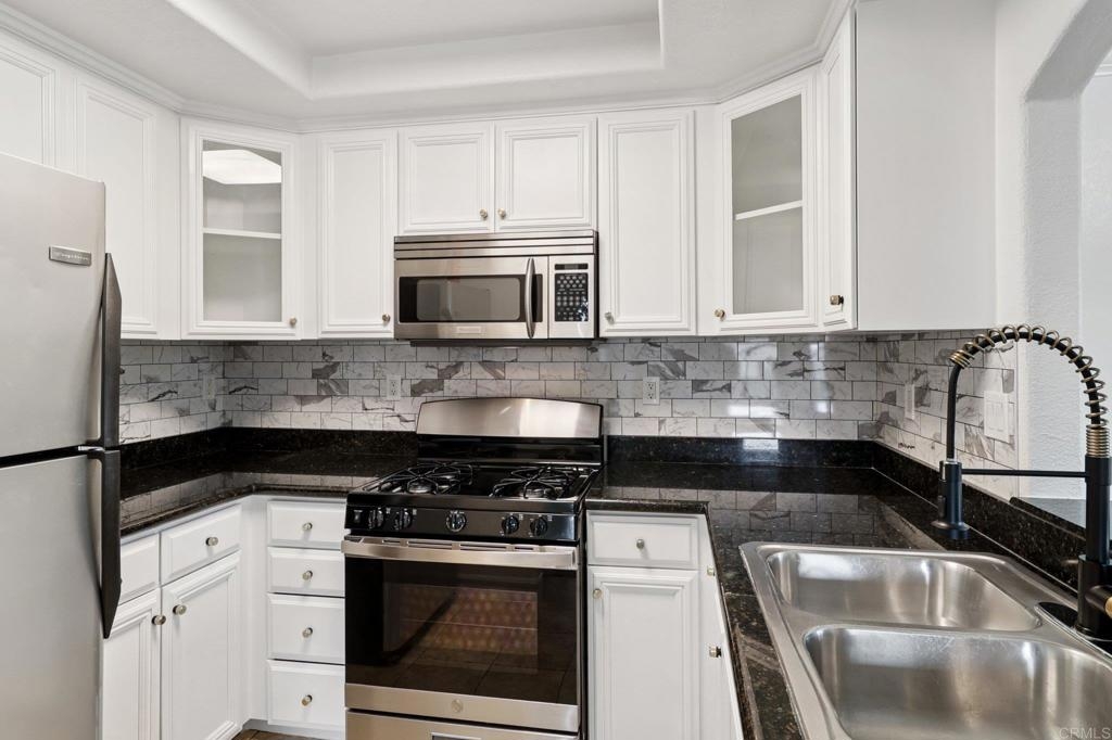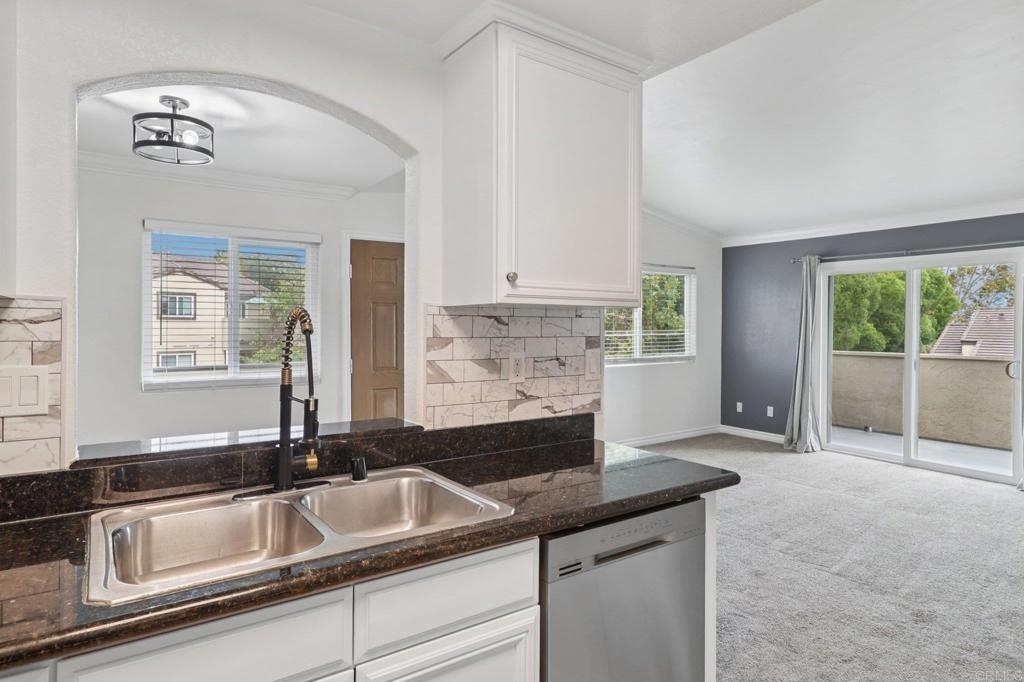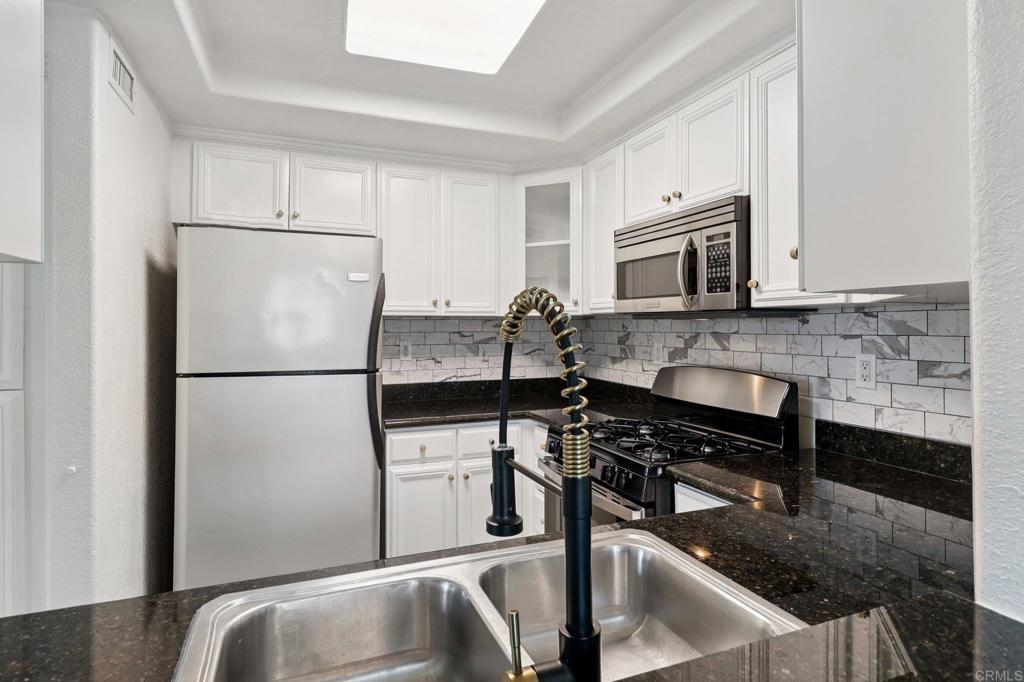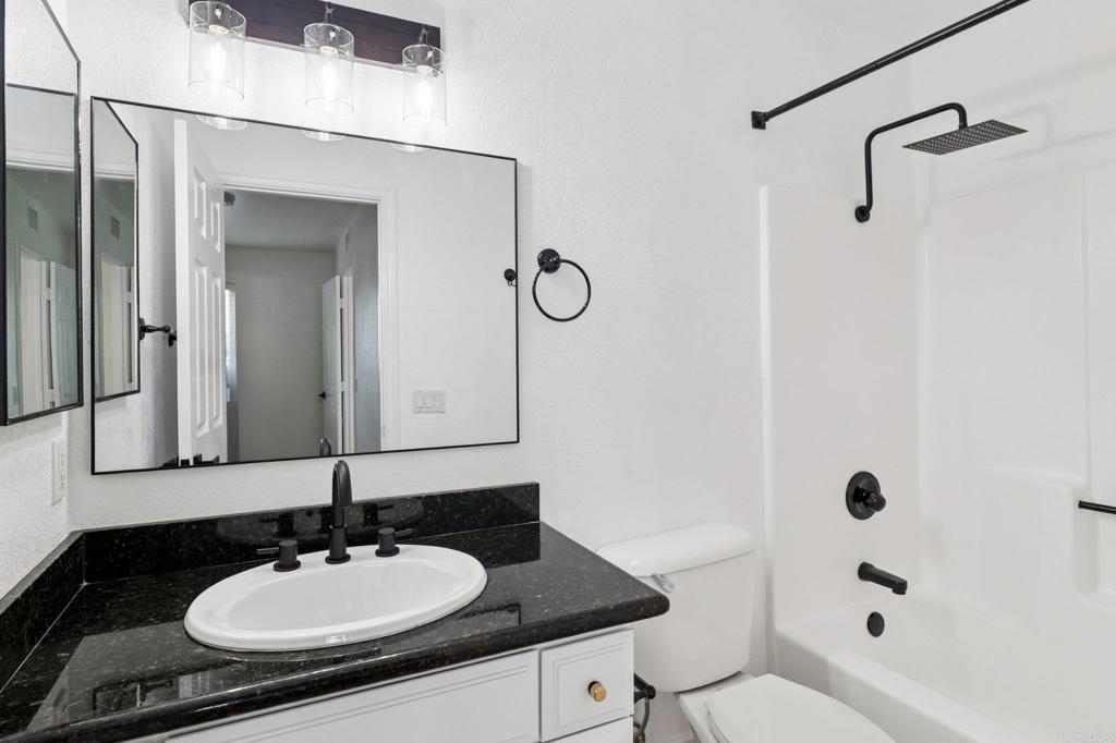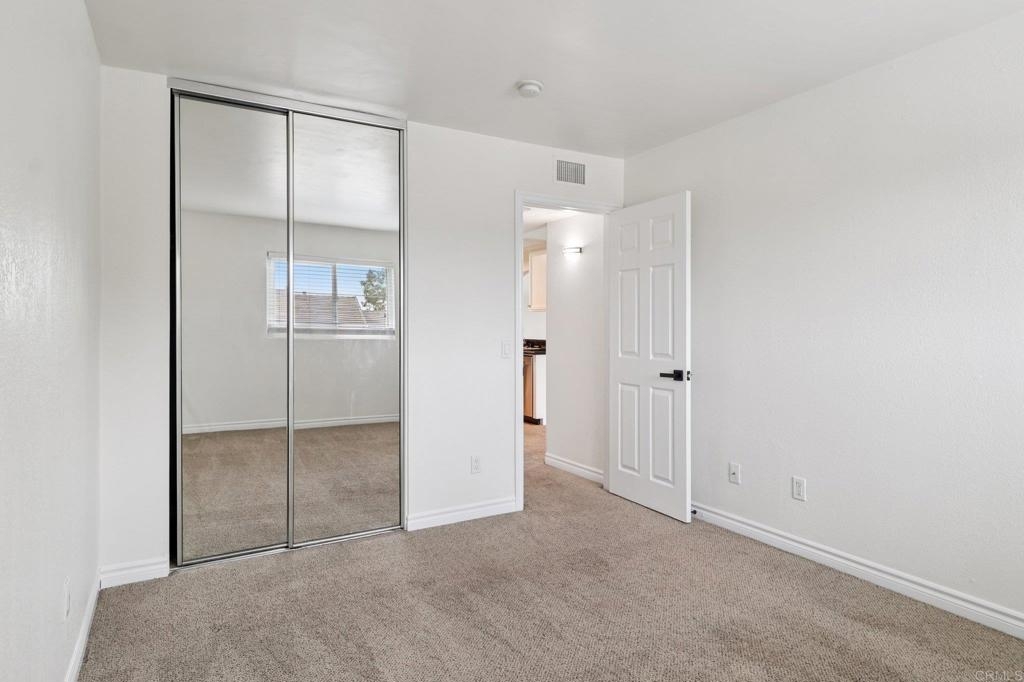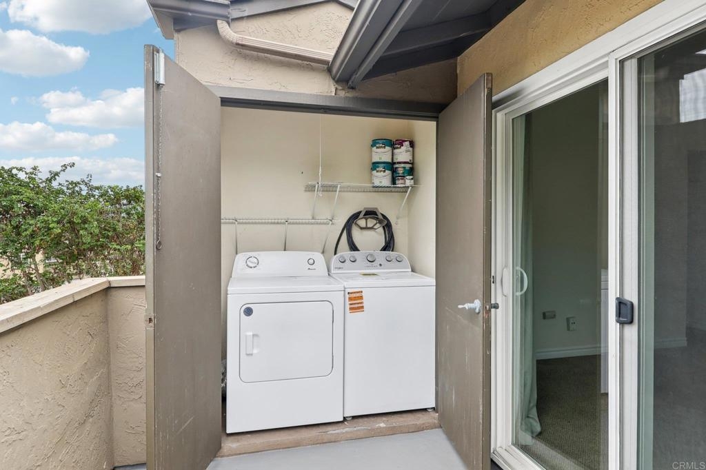 Welcome to this upper-level end-unit condo in the gated community of Stonemark at Los Morros, located in desirable North Oceanside. This beautiful 2-bedroom, 2-bath home offers vaulted ceilings and abundant natural light across its well-designed 900 square feet. The kitchen features granite countertops, stainless steel appliances, and a modern, open layout that flows seamlessly into the dining and living areas. Additional conveniences include in-unit laundry with washer and dryer, central A/C, and carpet throughout. Enjoy privacy and comfort with no neighbors above, plus a 1-car detached garage, an assigned parking space, and ample guest parking. Relax or entertain on the private balcony which has amazing views, or take advantage of the community’s resort-style amenities including a pool, spa, BBQ area, playground, and fitness center. Ideally situated just 8 miles from the beach, and close to shopping, restaurants, and Camp Pendleton. With low HOA dues covering water, trash, sewer, exterior maintenance, and roof, this property is perfect for first-time buyers, investors, or anyone seeking affordable coastal living in a well-kept, gated complex. Includes a 3 Year Home Warranty.