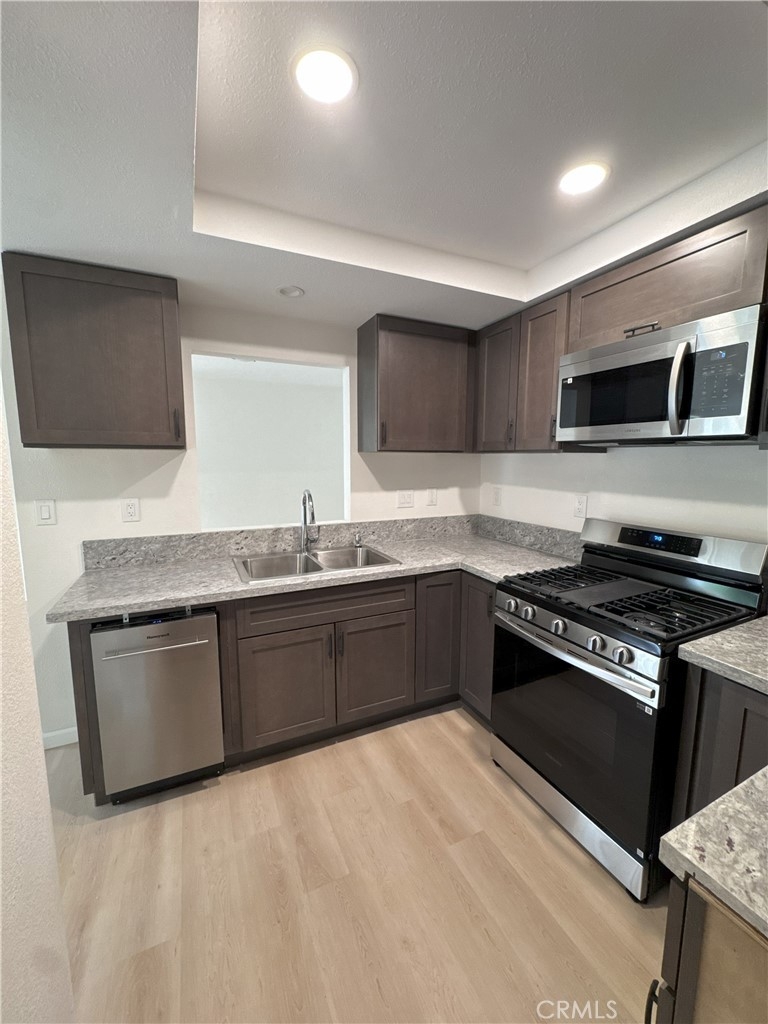 Discover this rare opportunity to purchase a beautiful, fully renovated 3-bedroom condo in the gated community of Stonemark at Los Morros. The 1,100 sq ft ground-level unit consists of 3-bedrooms/2-baths and is move-in ready! Renovations includes luxury vinyl floors, recessed lighting, new windows, and new doors. The kitchen features quartz countertops, SS sink, new dishwasher/oven/microwave, and soft close drawers & cabinets. The bathrooms have brand new tubs/showers, new sink vanities with quartz countertops, and modern light fixtures. The living room has sliding glass doors that lead to a private outdoor patio area perfect for relaxing in the sun or a morning cup of coffee. Additional features include a 1-car garage, an uncovered parking space, central AC and a laundry closet with washer/dryer hookups. Stonemark at Los Morros boasts a variety of amenities including a community pool, spa, gym, and playground. Just 10 miles from the beach and steps from shopping and dining, this turn-key condo offers convenience, comfort, and security - perfect for your first home.