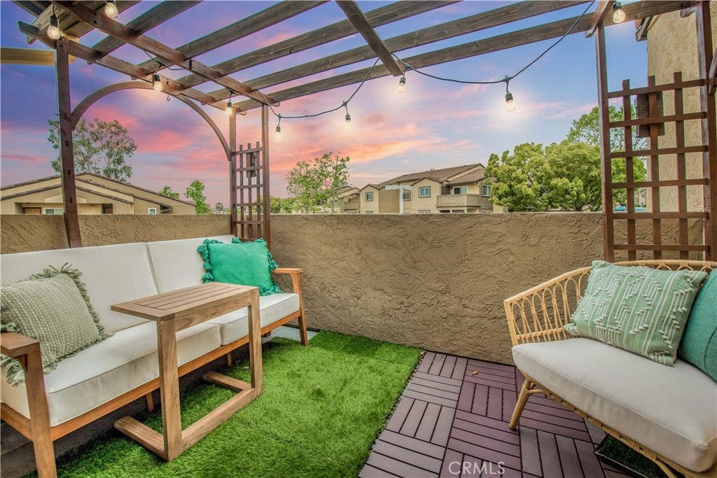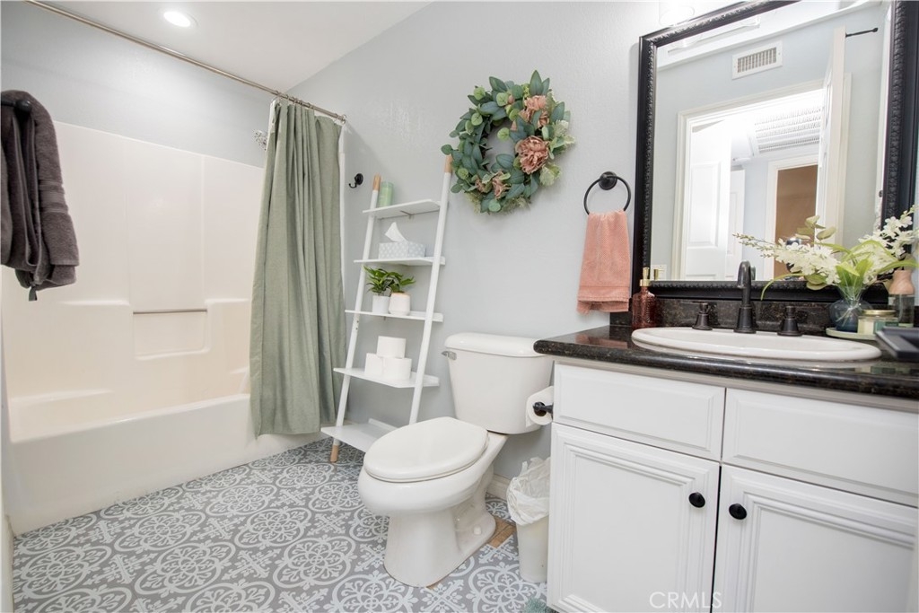 Beautiful 1 bedroom corner unit located privately on the second floor. This unit offers 1 bedroom and 1 bathroom with a private patio and a garage. Updated with modern paint and hardware. The bathroom was recently redone. The appliances are all stainless steel. This unit has great views from the patio and is situated in a gated community that includes: a pool and spa, gym with fitness equipment, BBQ area, and playground for kids! Next to great trails and public parks and easy to get to downtown Oceanside and the beach. A perfect unit to start out in or to downsize to. A must-see!