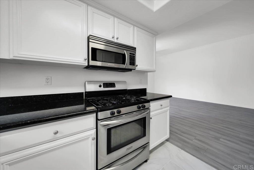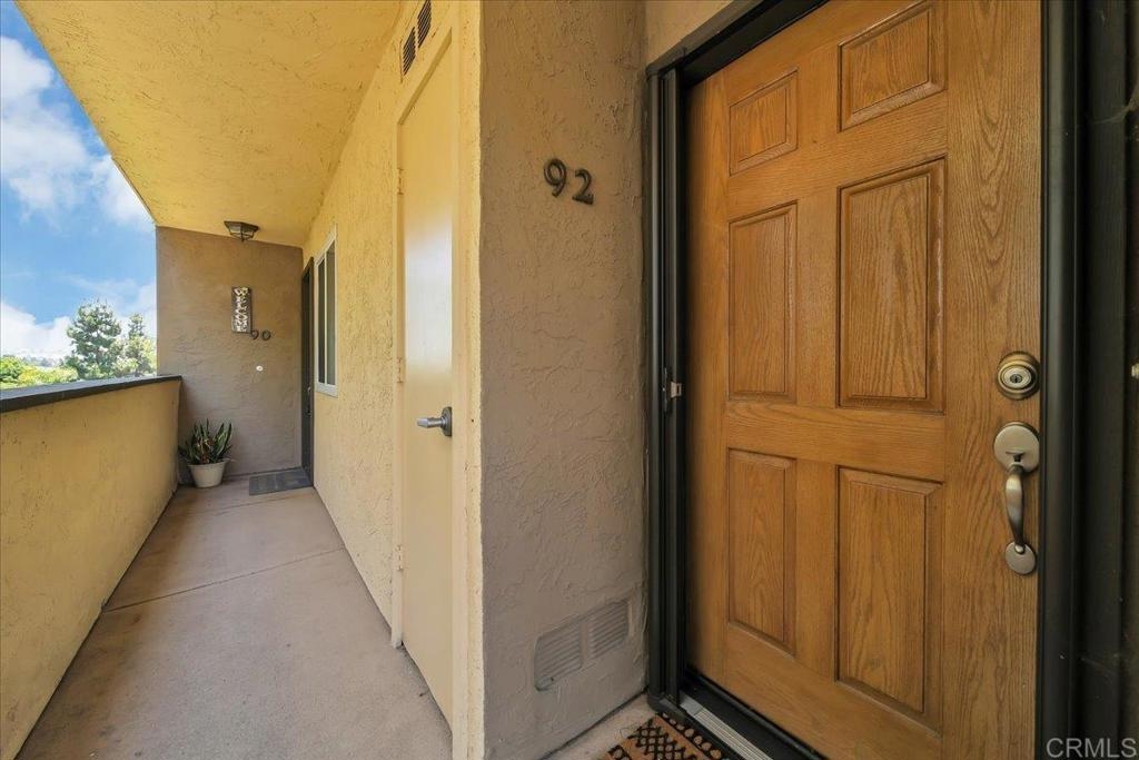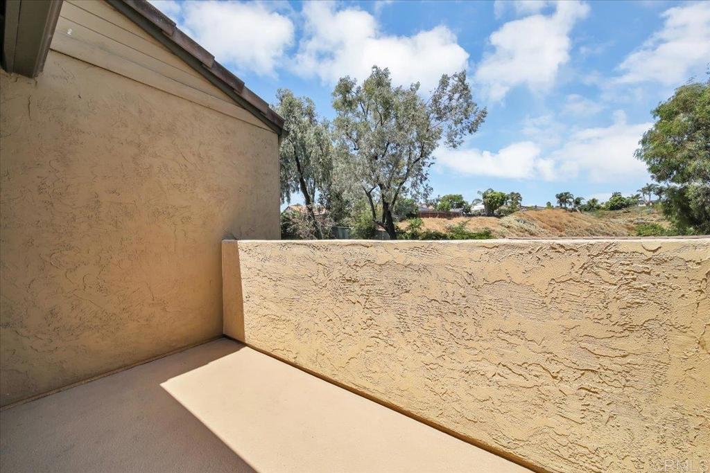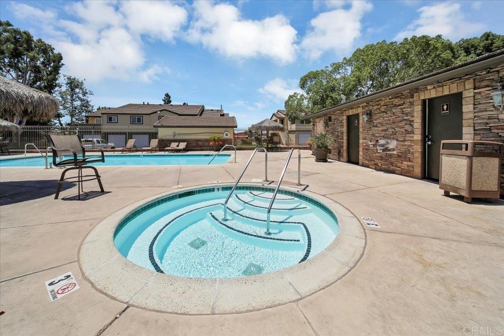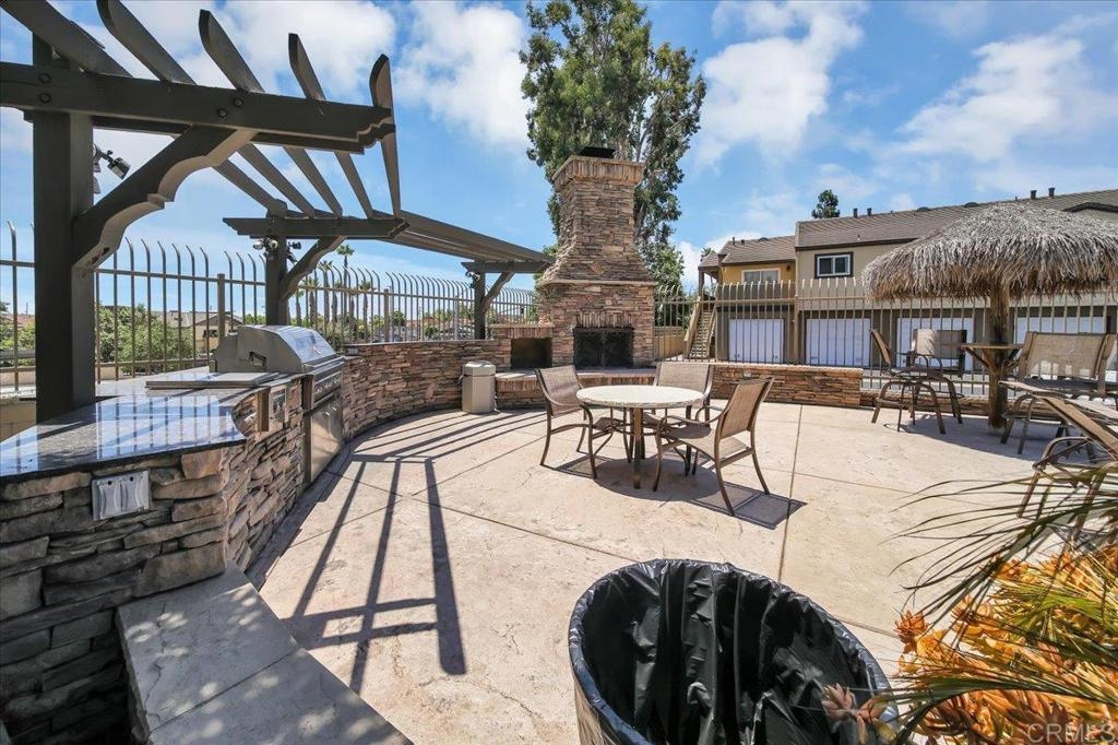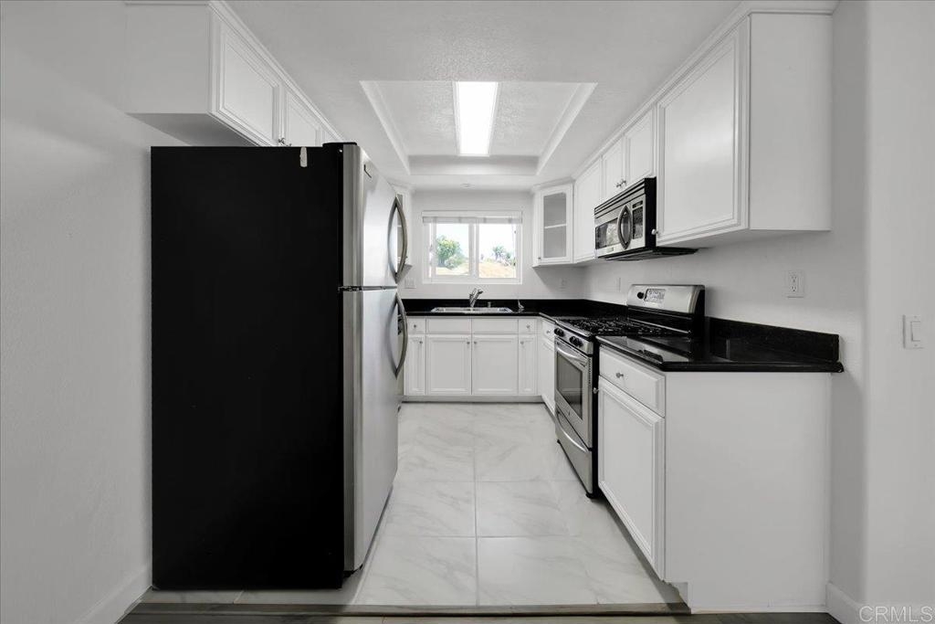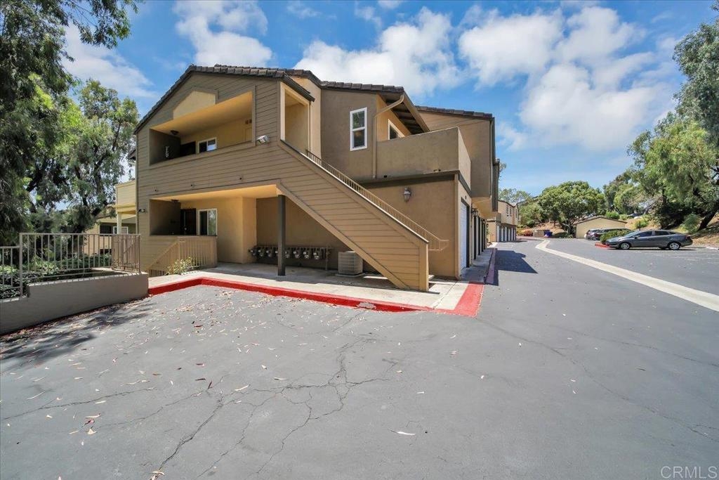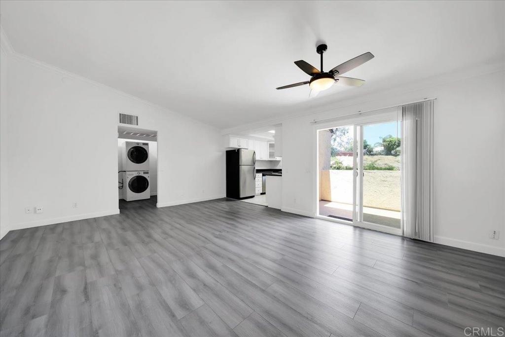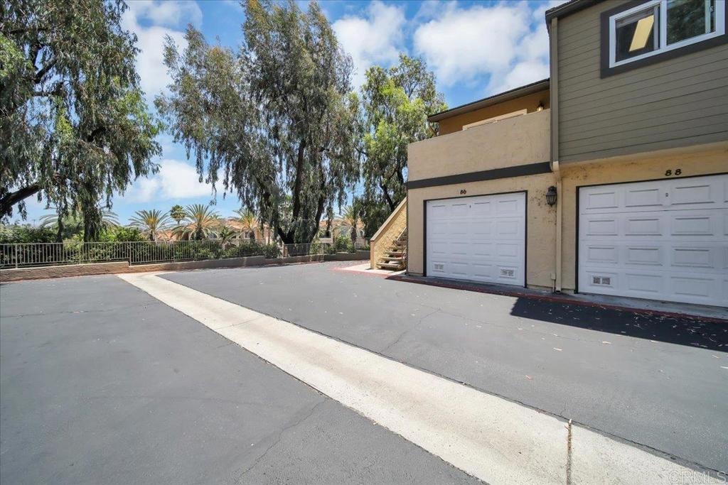 Gated community. Upper end unit with a view to the north. Well kept & quiet development. One bedroom, one bath. Newer Central AC & heat, dual pane windows, vaulted ceiling in great room with crown molding, one car detached garage and one assigned parking space. Kitchen upgraded with granite countertops and stainless steel appliances. New dishwasher installed July 2023. Bathroom remodeled with full size step-in shower. Ceiling fans in bedroom and living room. Stacked washer and dryer convey. Private patio off of living room with view. HOA includes water, sewer, trash, gated entrance, gym/exercise room, pool, jacuzzi, BBQ, outdoor fireplace, tot lot, building and grounds maintenance. Biking/jogging/walking path direct to the ocean, Camp Pendleton, beach, and parks close-by.