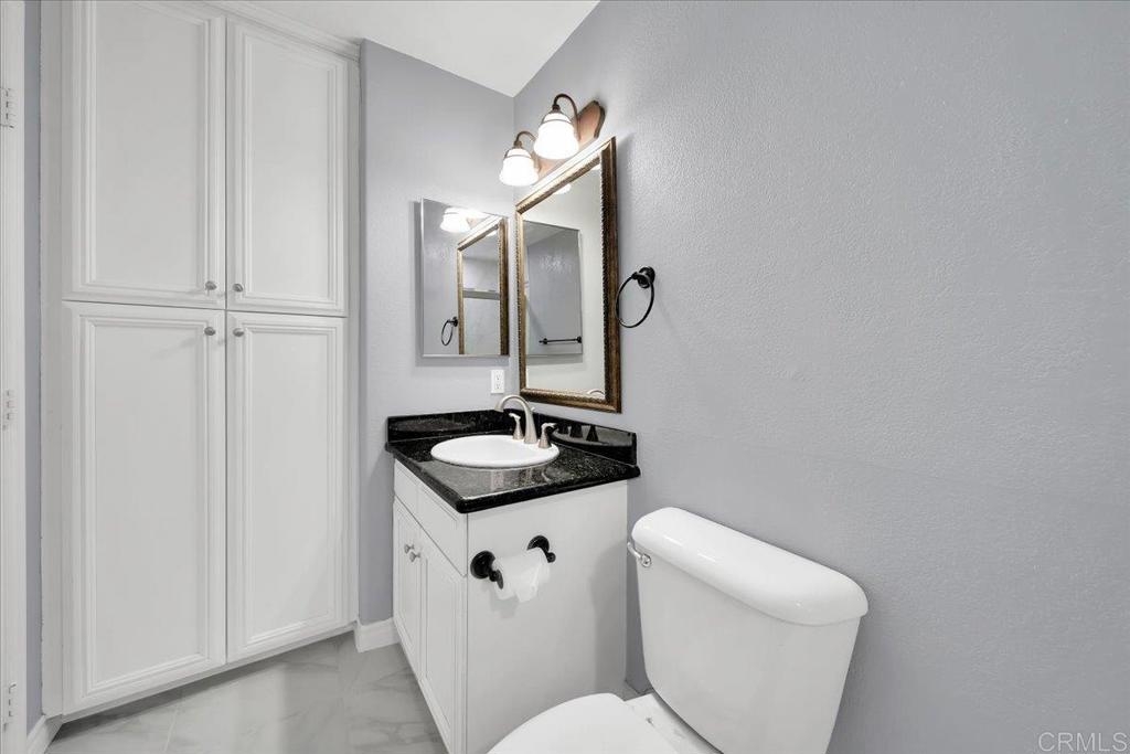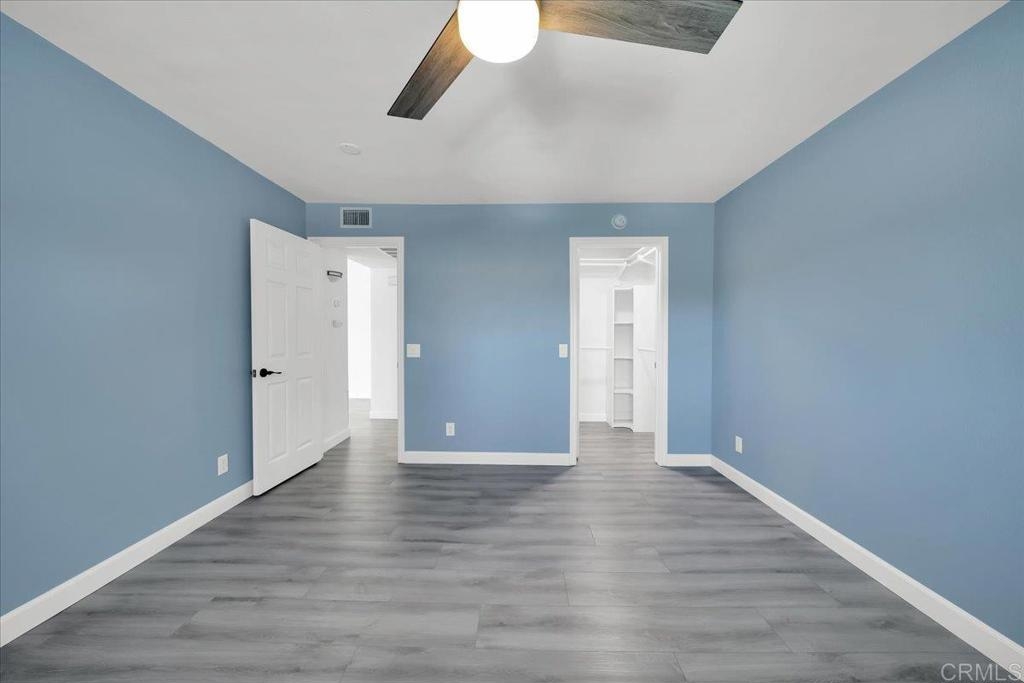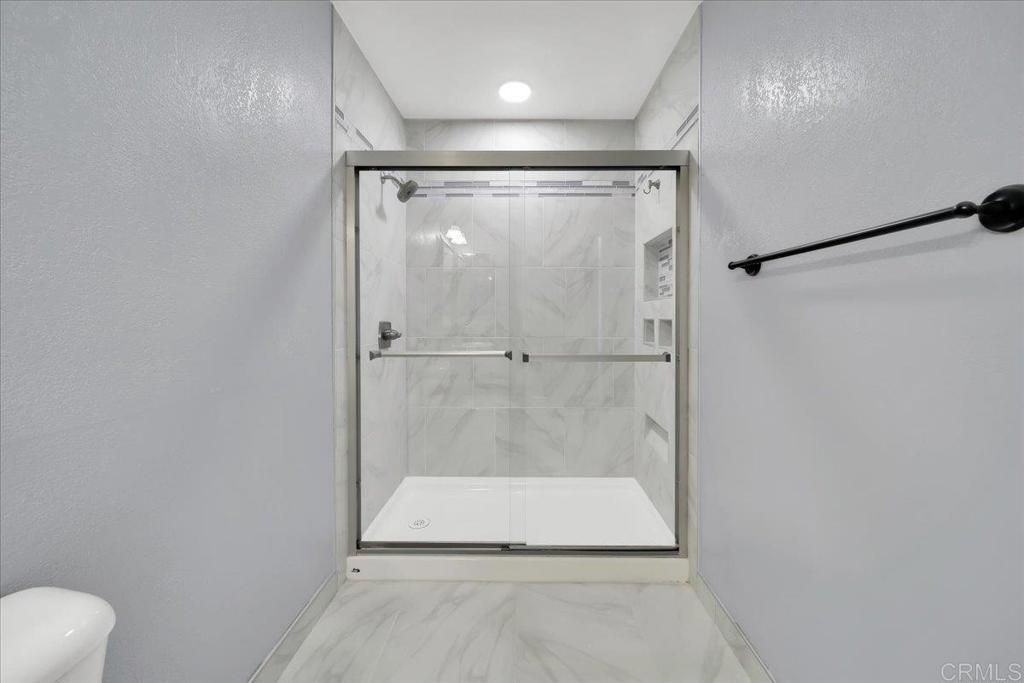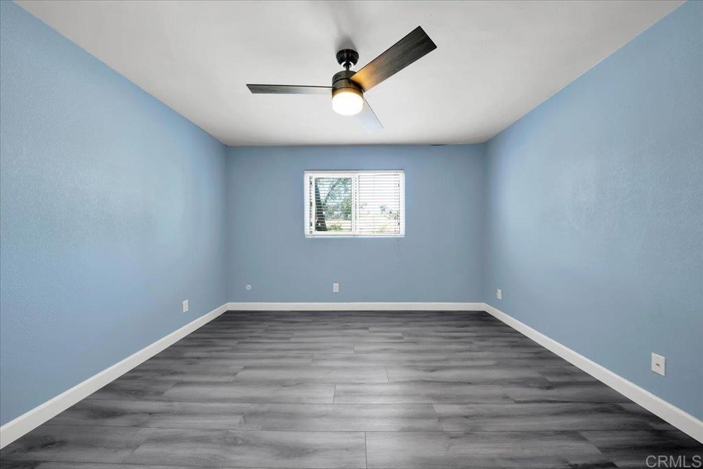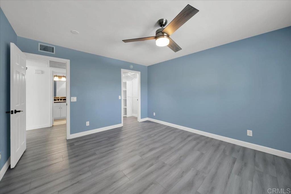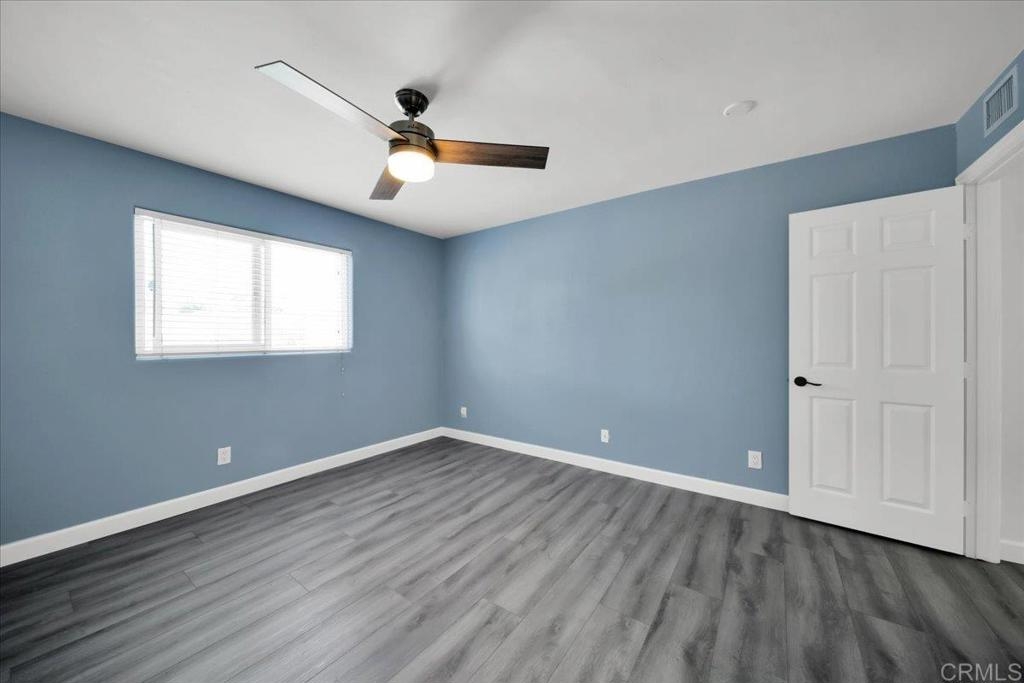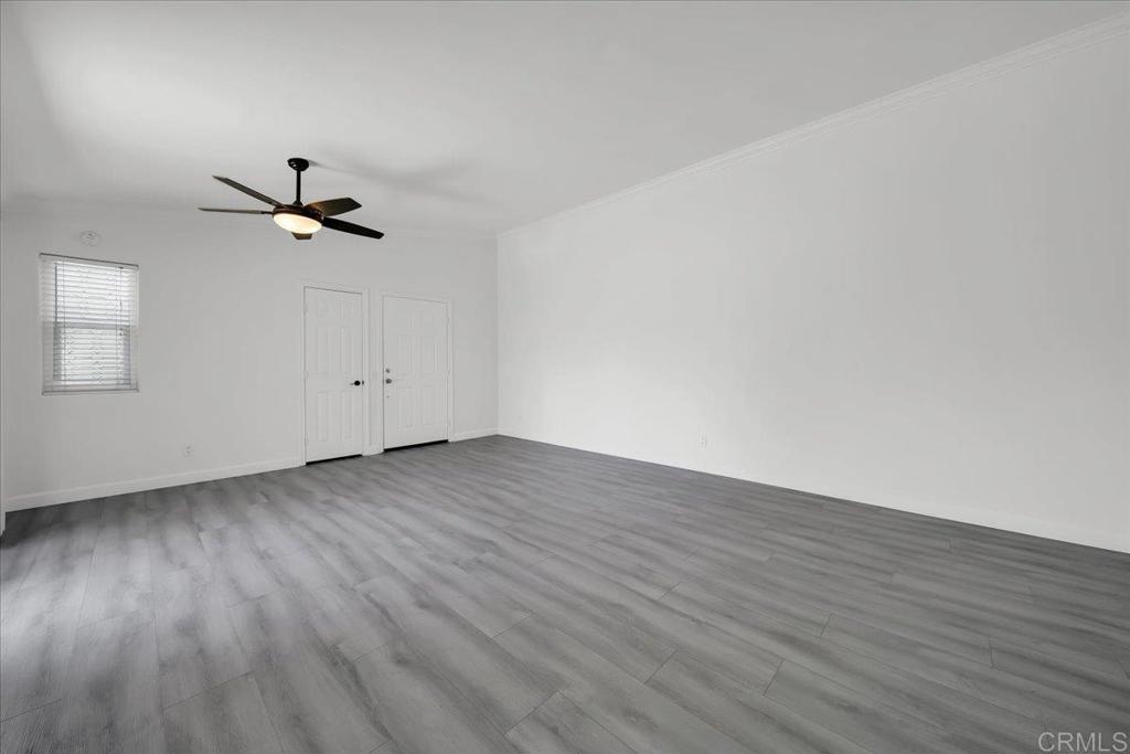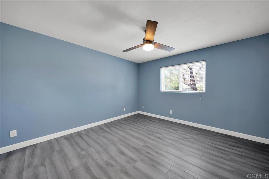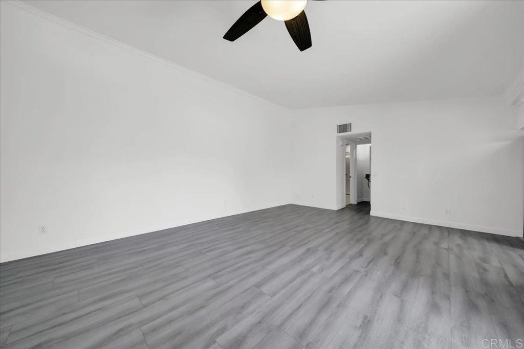 Gated community. Upper end unit with a view to the north. Well kept & quiet development. One bedroom, one bath. Newer Central AC & heat, dual pane windows, vaulted ceiling in great room with crown molding, one car detached garage and one assigned parking space. Kitchen upgraded with granite countertops and stainless steel appliances. New dishwasher installed July 2023. Bathroom remodeled with full size step-in shower. Ceiling fans in bedroom and living room. Stacked washer and dryer convey. Private patio off of living room with view. HOA includes water, sewer, trash, gated entrance, gym/exercise room, pool, jacuzzi, BBQ, outdoor fireplace, tot lot, building and grounds maintenance. Biking/jogging/walking path direct to the ocean, Camp Pendleton, beach, and parks close-by.