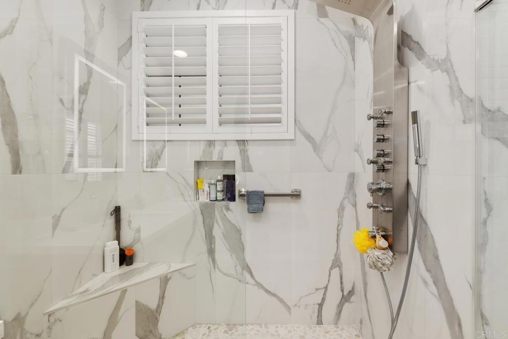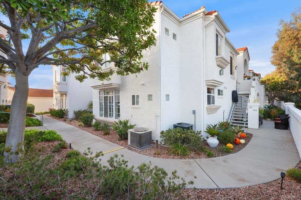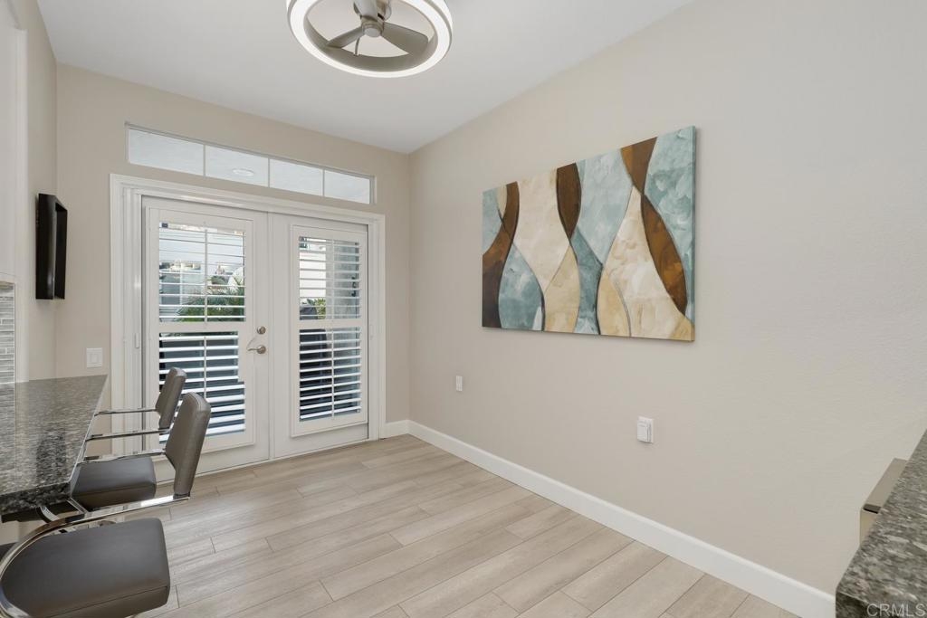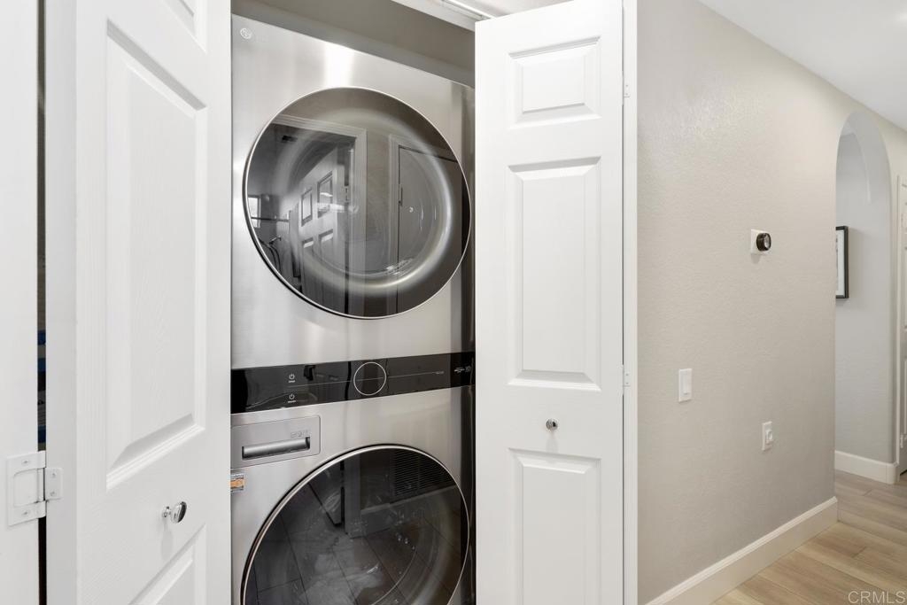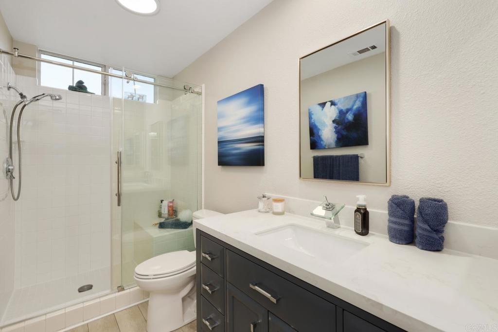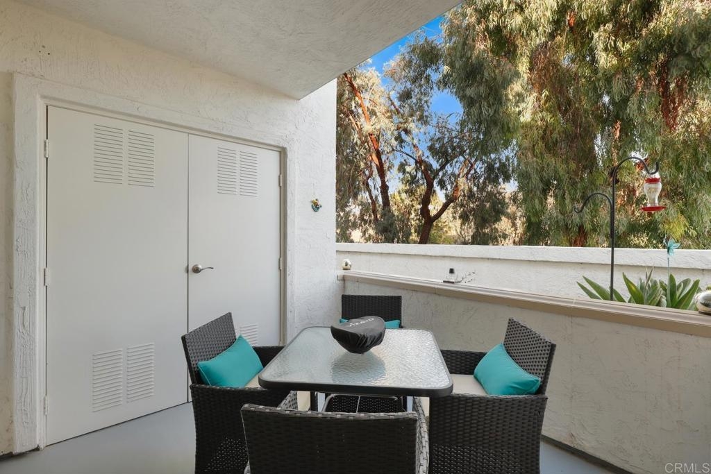 Welcome home to this highly upgraded 2 bedroom, 2 bathroom single story first floor condo in the gated 55+ community of Villa Trieste. This sought after floor plan is rarely available, it is the largest of the 2 bedroom models with soaring 9' ceilings, and the entire home has been renovated from top to bottom. Let’s start with the kitchen where we tend to spend so much time. Once everything was out, the owners started by putting in new high quality cabinetry with soft closing doors and drawers throughout. The generous cabinets were topped with custom selected Granite countertops and finished with a full glass tile backsplash. Dimmable, color programmable under cabinet lights were added and high quality Samsung stainless steel appliances were installed including a wine refrigerator. The original outdated overhead lighting was removed, both the kitchen and dining rooms ceilings were raised in a tray shape to make the rooms feel more open and spacious. Fresh water is supplied by the installed HALO water system and the home is lit by LED and Artika lighting. The living areas have been upgraded with durable LVP flooring, 6” baseboards, all new outlets and switches (all dimmable except primary closet), wood shutters throughout (including water proof shutters in the primary shower), retractable screen doors on the front door and patio along with custom paint throughout. Feel pampered in the bathrooms with executive height counters, comfort height Toto toilets, LED mirrored oversized medicine cabinets and custom shower with rainfall, waterfall, six jets, wand and bench seat in the primary bath. Additional upgrades include new AC with Nest thermostat (rarely used as the home enjoys ocean breezes), Google Nest smoke & CO detector, Schlage programmable entry lock, new full size LG stackable washer & dryer, retractable screens and French doors on both private patios along with an outdoor Kitchen Aid gas grill! The unit also includes a one car detached garage with keyless entry and a reserved parking spot. Residents LOVE Villa Trieste for many reasons including a super convenient location close to the freeway and just minutes away from Carlsbad and world class beaches and entertainment, a very reasonable HOA fee that includes a pool, jacuzzi, clubhouse, plentiful parking inside a safe, gated, age restricted community. This one of a kind home is sure to go quickly, interested parties are urged to take action before it is sold!