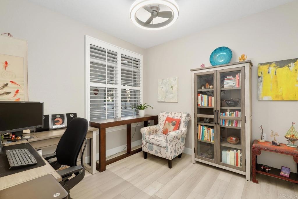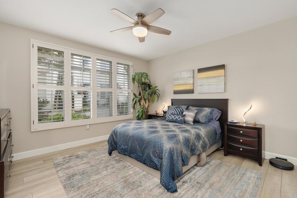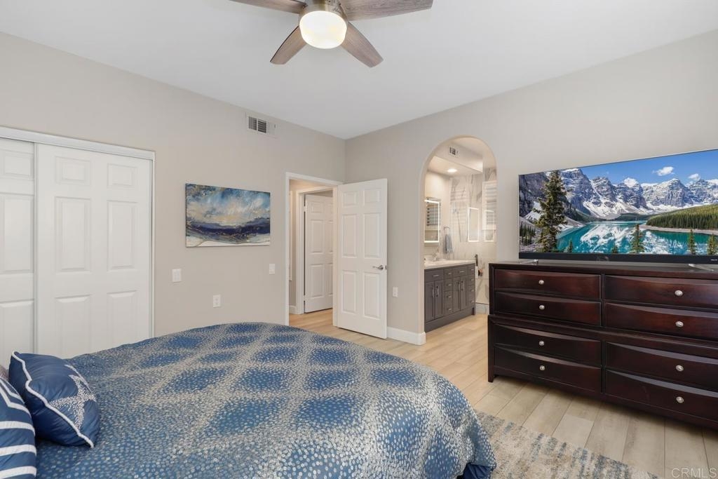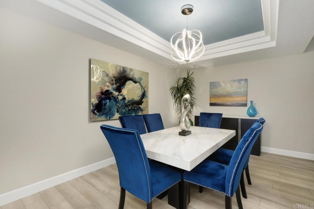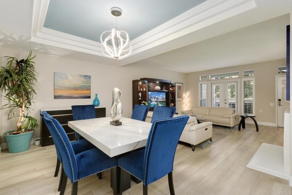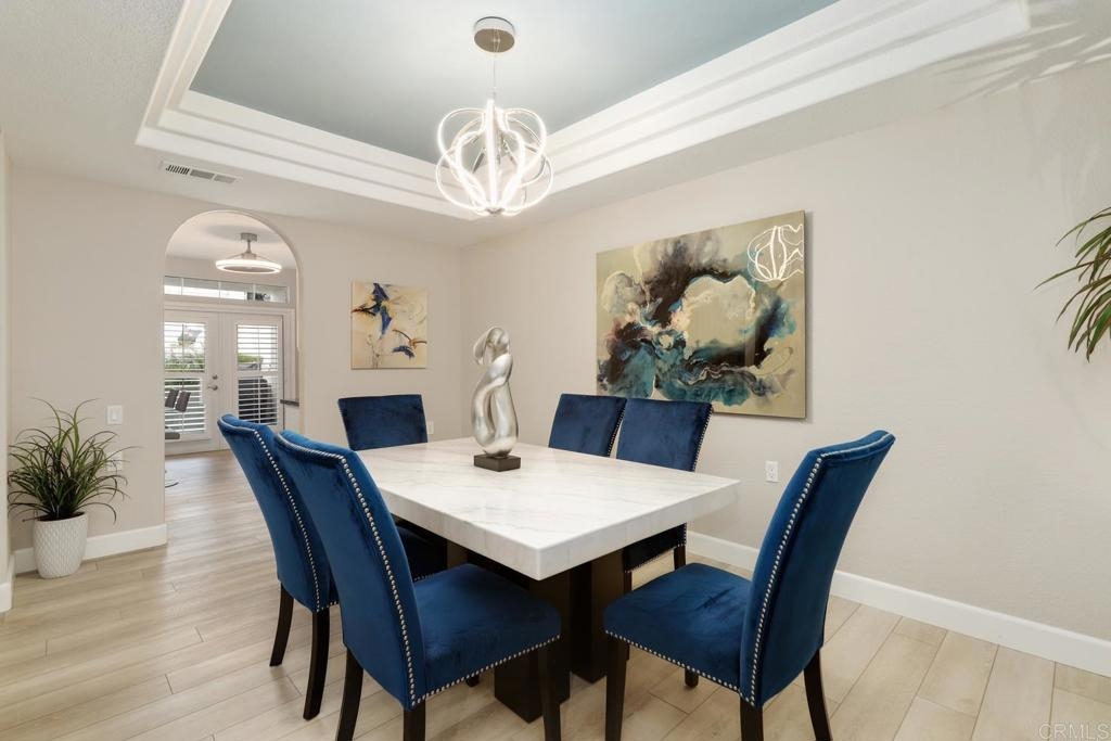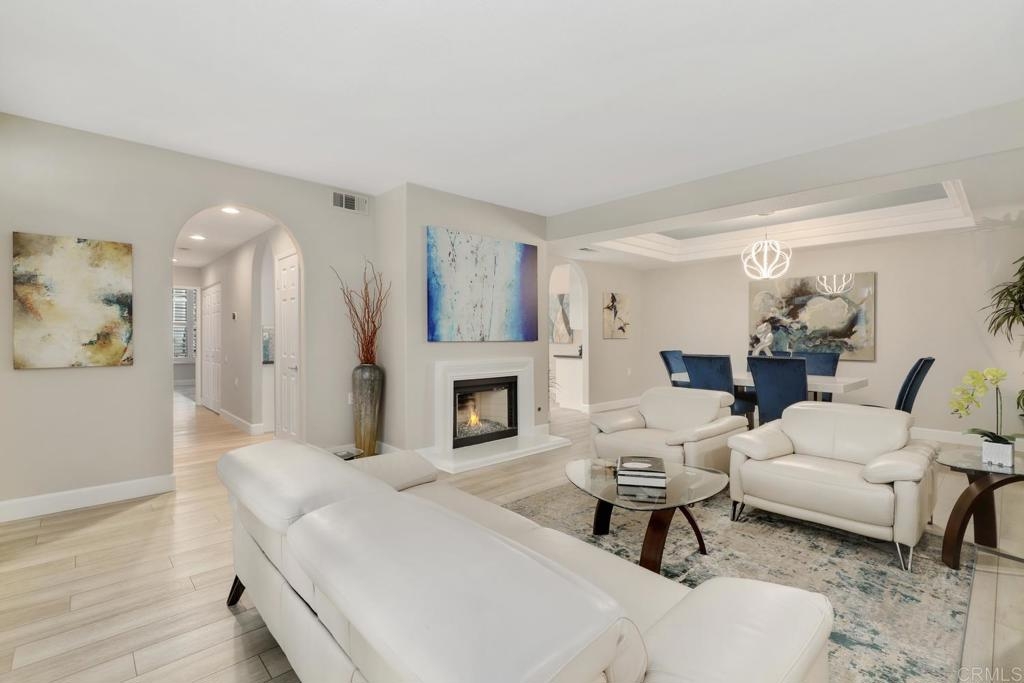 Welcome home to this highly upgraded 2 bedroom, 2 bathroom single story first floor condo in the gated 55+ community of Villa Trieste. This sought after floor plan is rarely available, it is the largest of the 2 bedroom models with soaring 9' ceilings, and the entire home has been renovated from top to bottom. Let’s start with the kitchen where we tend to spend so much time. Once everything was out, the owners started by putting in new high quality cabinetry with soft closing doors and drawers throughout. The generous cabinets were topped with custom selected Granite countertops and finished with a full glass tile backsplash. Dimmable, color programmable under cabinet lights were added and high quality Samsung stainless steel appliances were installed including a wine refrigerator. The original outdated overhead lighting was removed, both the kitchen and dining rooms ceilings were raised in a tray shape to make the rooms feel more open and spacious. Fresh water is supplied by the installed HALO water system and the home is lit by LED and Artika lighting. The living areas have been upgraded with durable LVP flooring, 6” baseboards, all new outlets and switches (all dimmable except primary closet), wood shutters throughout (including water proof shutters in the primary shower), retractable screen doors on the front door and patio along with custom paint throughout. Feel pampered in the bathrooms with executive height counters, comfort height Toto toilets, LED mirrored oversized medicine cabinets and custom shower with rainfall, waterfall, six jets, wand and bench seat in the primary bath. Additional upgrades include new AC with Nest thermostat (rarely used as the home enjoys ocean breezes), Google Nest smoke & CO detector, Schlage programmable entry lock, new full size LG stackable washer & dryer, retractable screens and French doors on both private patios along with an outdoor Kitchen Aid gas grill! The unit also includes a one car detached garage with keyless entry and a reserved parking spot. Residents LOVE Villa Trieste for many reasons including a super convenient location close to the freeway and just minutes away from Carlsbad and world class beaches and entertainment, a very reasonable HOA fee that includes a pool, jacuzzi, clubhouse, plentiful parking inside a safe, gated, age restricted community. This one of a kind home is sure to go quickly, interested parties are urged to take action before it is sold!
