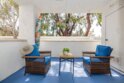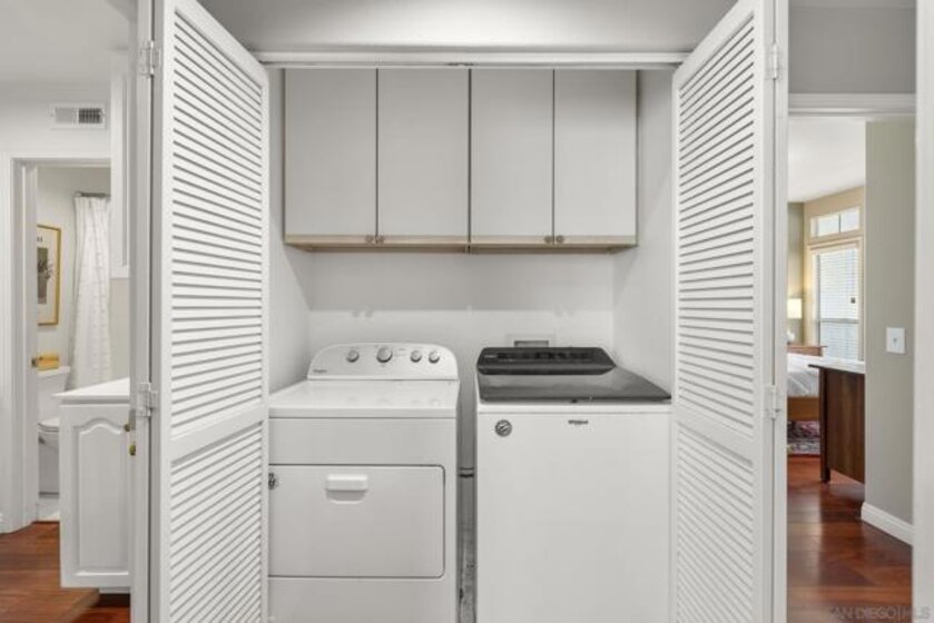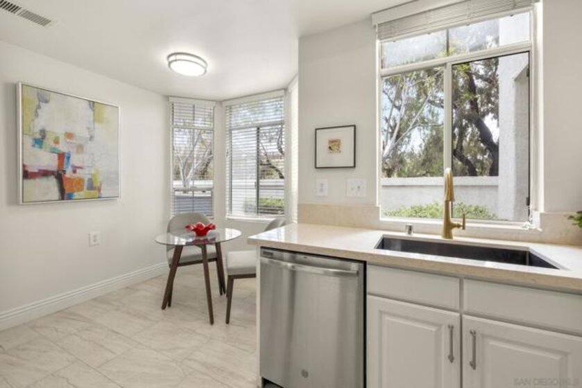 Welcome to resort-style living at the highly desirable 55+ gated community of Villa Trieste! Beautifully maintained 2 bedroom, 2 bath single-level home offers an open floor plan filled with natural light, updated finishes and classy designer-style painted interior. Upgraded kitchen with quartz countertops, stainless steel appliances, ample cabinetry, and cozy breakfast nook. NEWER AC system! Mahogany hardwood and tiled flooring. Main bedroom has a walk-in closet and en-suite bath with shower. This ground-level unit also provides a full in-unit laundry closet. TWO individual rear facing private patios off of living room and main bedroom. with views of trees. Separate deep detached garage and additional parking space not far from unit! Villa Trieste offers wonderful amenities including highly maintained grounds, community heated pool, spa, clubhouse, and walking paths, a gazebo, bocce ball court, picnic and park areas. Located minutes from shopping, dining, golf, and parks. Building roof was replaced by community in 2024!
