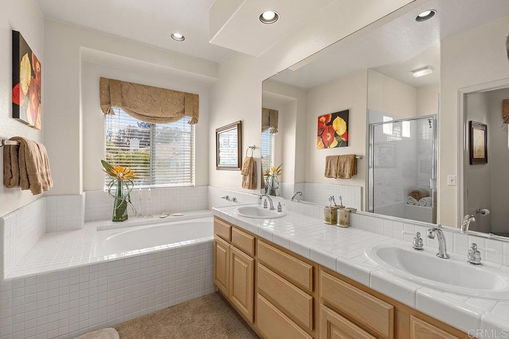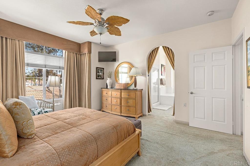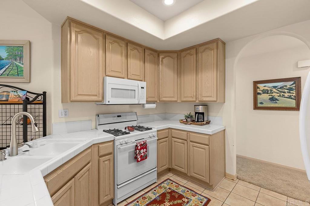 Beautifully styled home in Villa Trieste in Oceanside, a 55+ gated community. A desirable 2nd floor, larger condo with an ideal quiet location and close to the clubhouse. French doors open to the home's two outdoor living areas. A spacious living room with mantled and hearth gas fireplace and vaulted ceiling. The combo dining area can easily seat eight guests and has a tray ceiling. The kitchen has a gas range, plenty of storage and counter space, a breakfast eating area and a desk niche. Enjoy your light filled master en-suite with custom touches, a walk in California closet and master bathroom with separate shower, soaking tub, dual vanity and private water closet. The guest room was designed as an office and with the murphy bed in the closet, easily converts to a guest room. Included is a one car garage with additional storage space and an outdoor reserved parking space. Enjoy the gorgeous and meticulously maintained grounds with flowers, tropical plants and trees. A clubhouse provides room for gatherings, entertainment and parties. The heated pool and spa are available all year long. A gazebo, a bocce ball court, picnic and a park area add to the ambiance of the community. Shopping, Restaurants, Westfield Mall, Cineplex, Parks, Sports and the ocean are all nearby amenities.