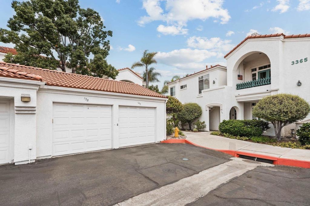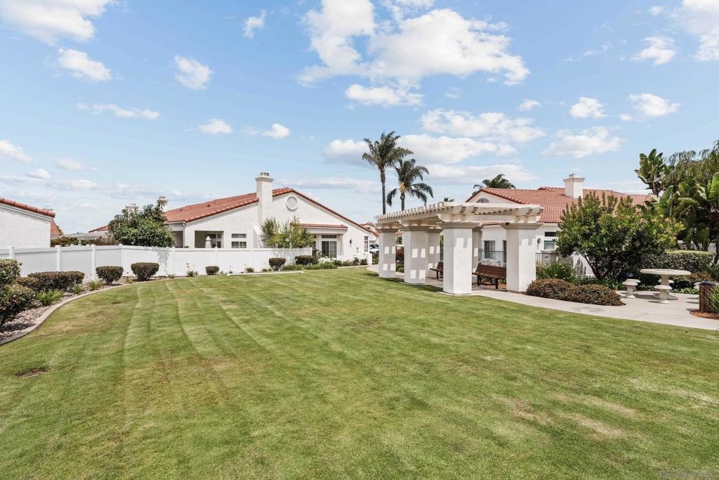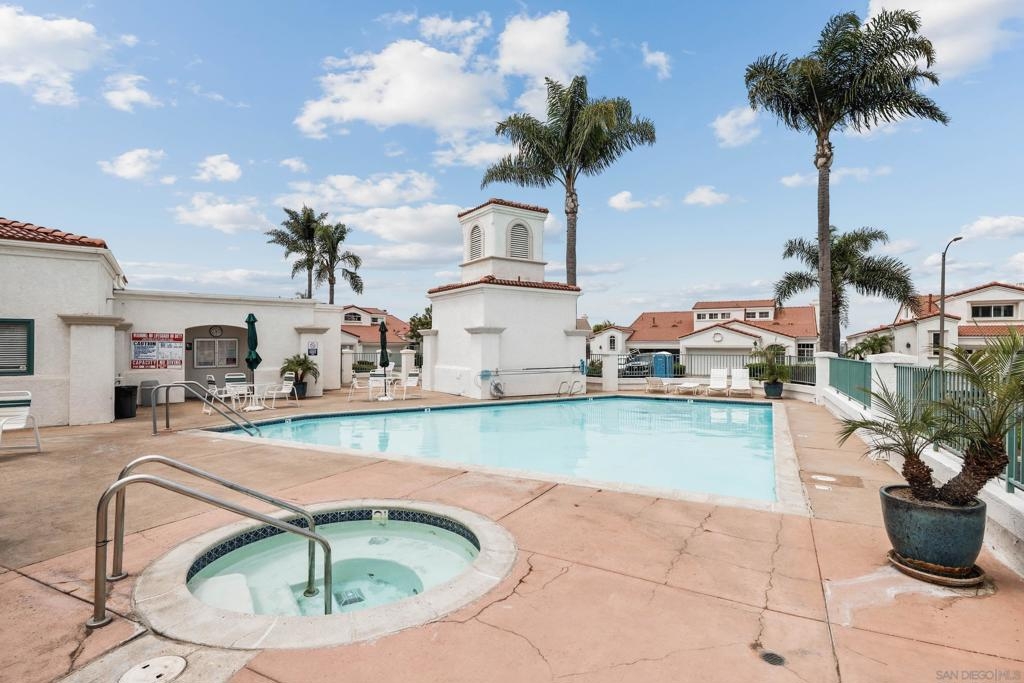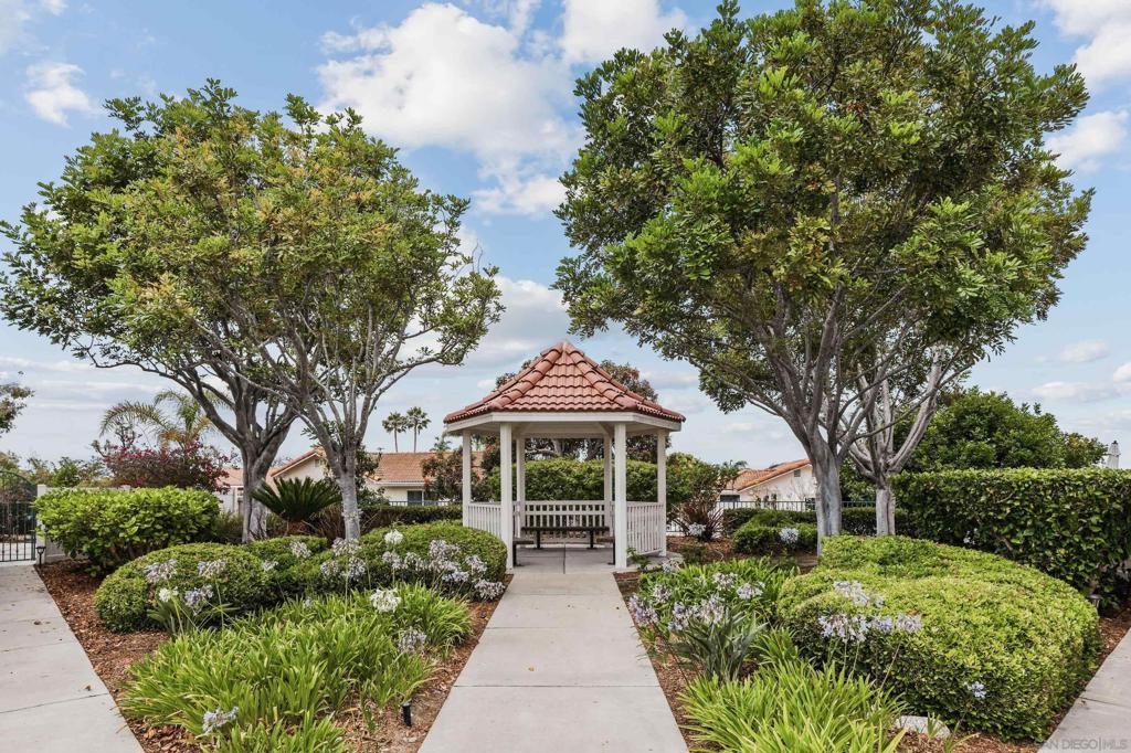 Welcome to 3365 Genoa Way, a serene ground-floor retreat in a gated 55+ community in Oceanside. This single-story former model home blends Mediterranean charm with modern upgrades, featuring 1,334 sq/ft, 9 ft ceilings, and arched walkways. Enjoy two spacious bedrooms, two beautifully renovated bathrooms, and a stylish kitchen with premium quartz counters and Kenmore stainless steel appliances. Relax in the primary suite with a soaking tub, walk-in shower, dual vanities, and natural light. Cozy up by the fireplace, or unwind on either the private back patio-ideal for summer BBQing- or the front porch, perfect for gardening with your morning coffee. Community amenities include a heated pool, hot tub, bocce ball court, clubhouse with special events, a lounge, and gazebo. Additional perks: central A/C, gas heat, washer/dryer, detached garage just steps away, and a gated entry for added peace of mind. This is coastal living at its best-luxury, comfort, and convenience in one vibrant community package.