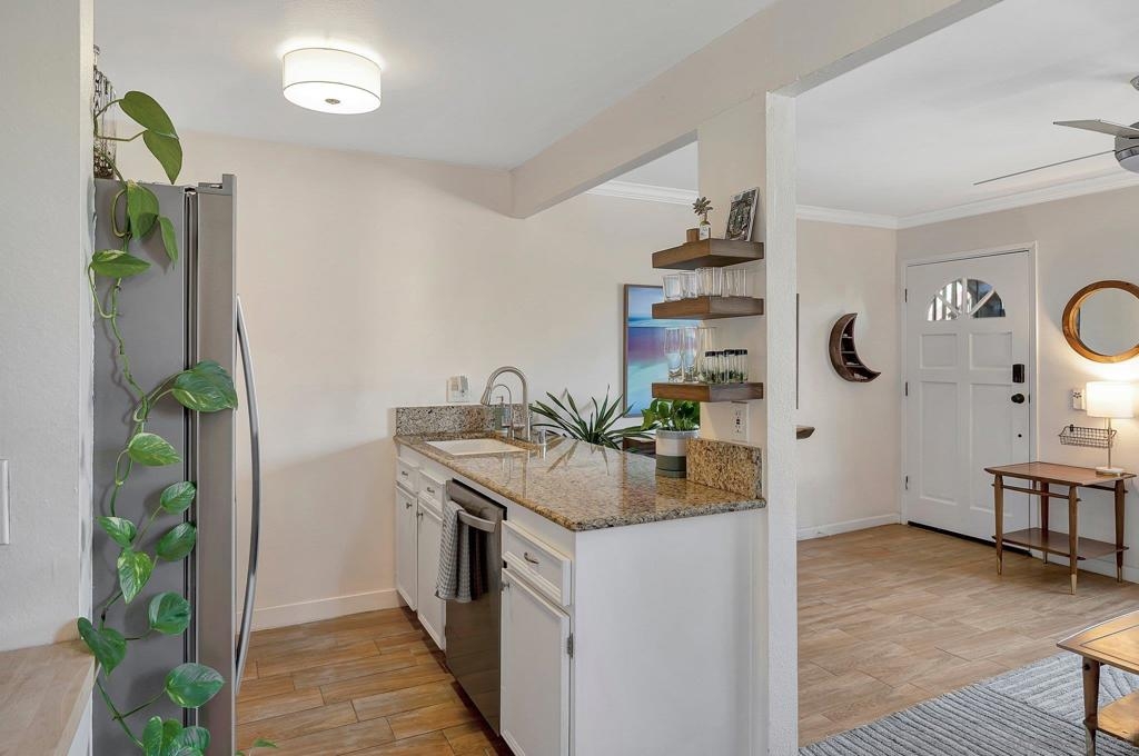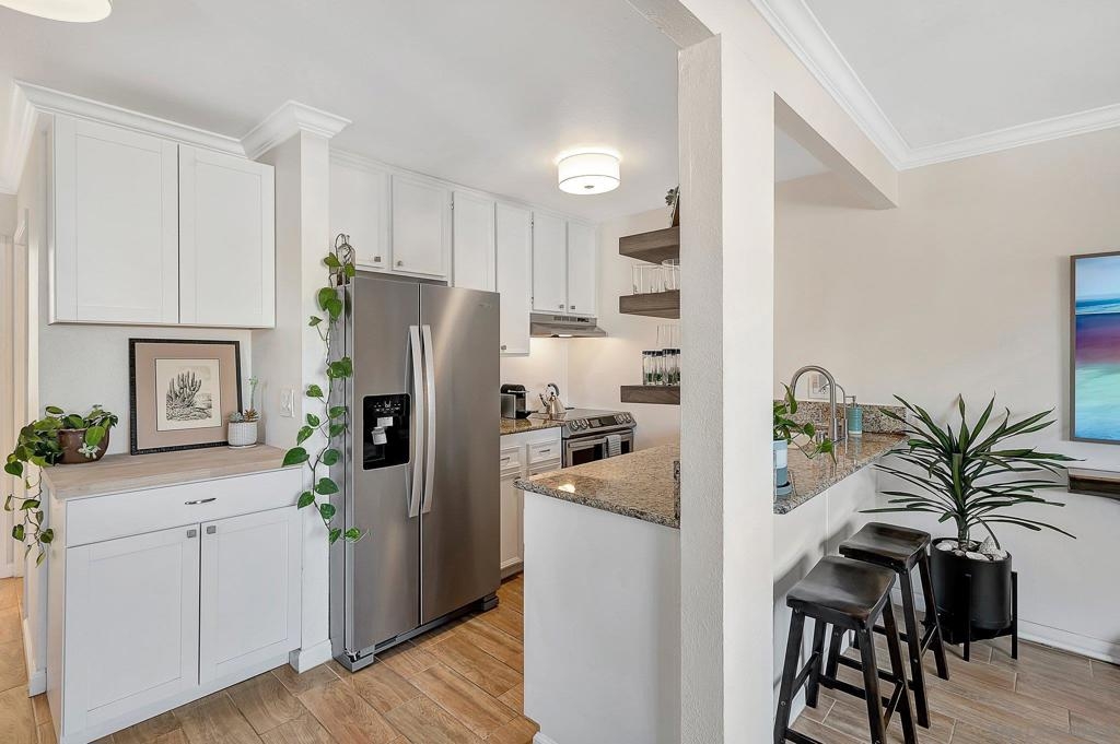 This delightful corner unit features 1BD & 1BA with newly upgraded stainless steel appliances and modern finishes, PLUS an expansive private patio perfect for outdoor dining, lounging, or enjoying your morning coffee in the sunshine. Whether you’re hosting friends or enjoying a quiet evening, this outdoor space is sure to impress. Located just one mile from the beach, you’ll have easy access to sun-soaked days, vibrant local shops, and delicious dining options. With convenient access to I5 and downtown Oceanside, you’ll be perfectly situated to explore all that North County has to offer. Includes detached private 1 car garage. Seller has also paid for an additional parking space that costs $360/year. See confidential remarks for more details on additional parking space or ask agent for more information.