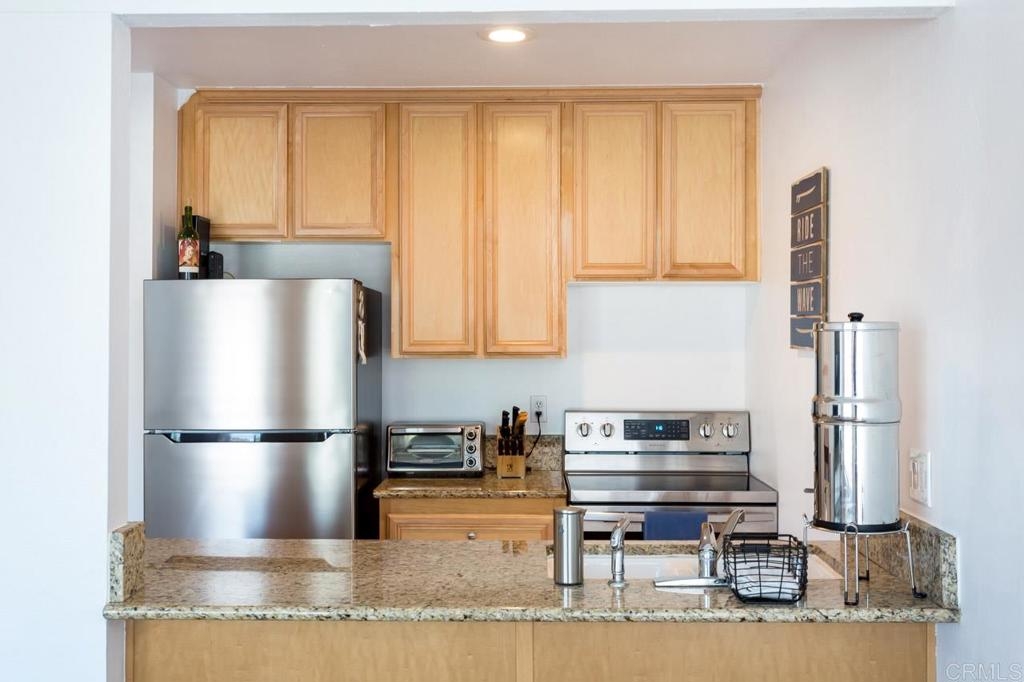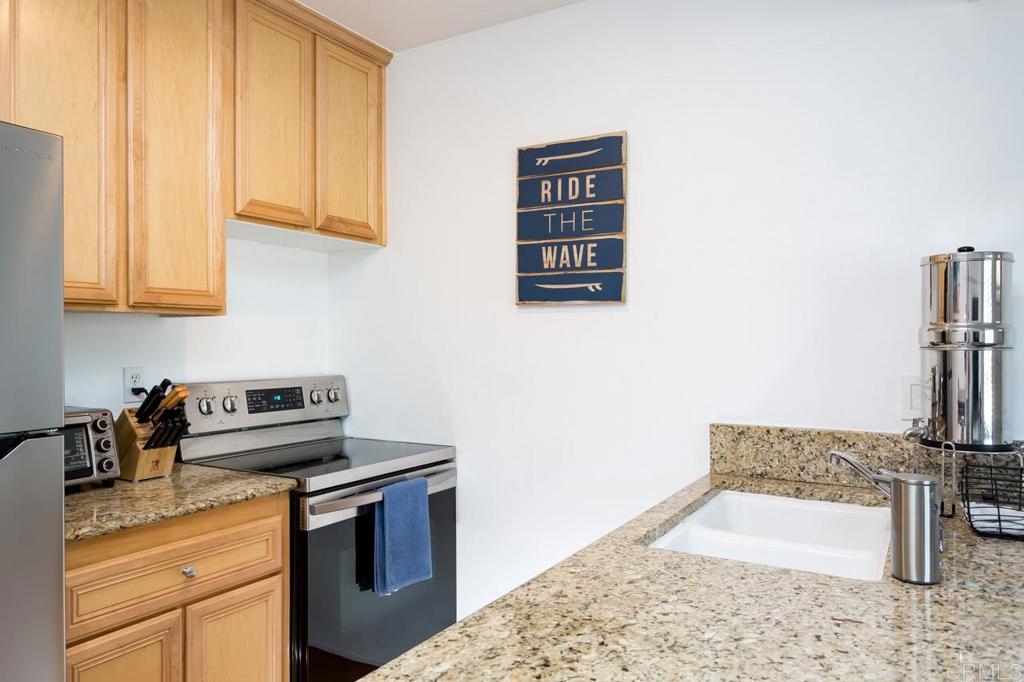 Ocean view and less than 1 mile to the beach! This charming, desirable upstairs unit is a fantastic opportunity for a first time buyer, investor, or for someone looking to downsize, simplify and live the beach life. Enjoy the ocean breeze and new touches throughout, featuring new dual pane sliders and windows, fresh carpet in bedroom, stainless steel appliances, updated electric panel, new water heater and more. It's time to jump on your beach cruiser and head to the beach, restaurants and shops of Oceanside!