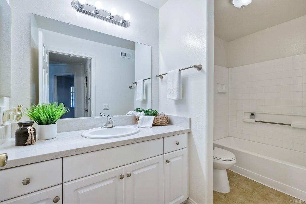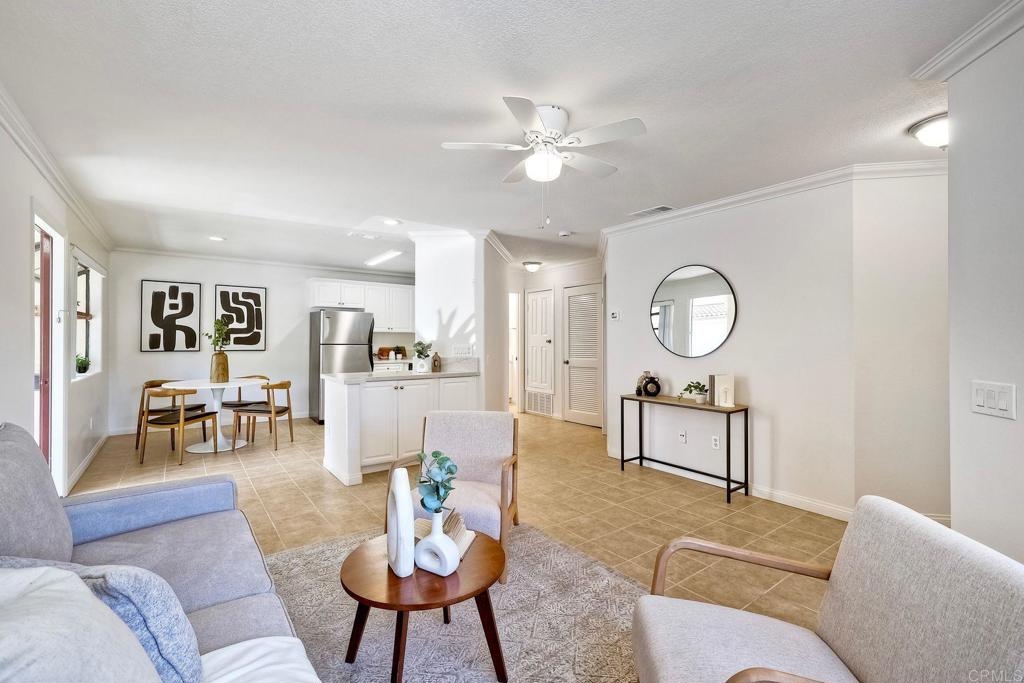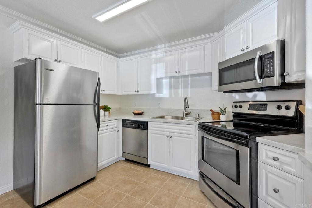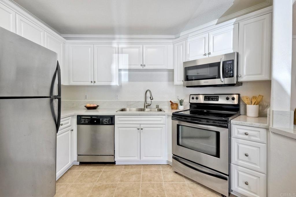 CHARMING GROUND-LEVEL UNIT in a Gated Community! Beautifully updated 1BR/1BA condo in desirable Vista Way Village. The kitchen features new quartz countertops, freshly painted white cabinets, and a new sink. The patio, complete with privacy shades, is conveniently located right off the kitchen--Perfect for entertaining! Interior has been freshly painted; tile flooring refreshed throughout. Bathroom includes matching quartz counters, new vanity mirror, and medicine cabinet. Detached 1-car garage w/ storage, plus an additional assigned parking spot in front of the building. Community amenities include 2 pools, spa, gym, tennis/basketball courts, tot lot, and gated entry. HOA covers water, roof, sewer, trash, and common area maintenance. PRIME LOCATION—close to shopping, Trader Joe’s, cafes, parks, hospital, MiraCosta College & both freeways. Move-in ready!
