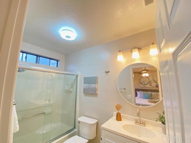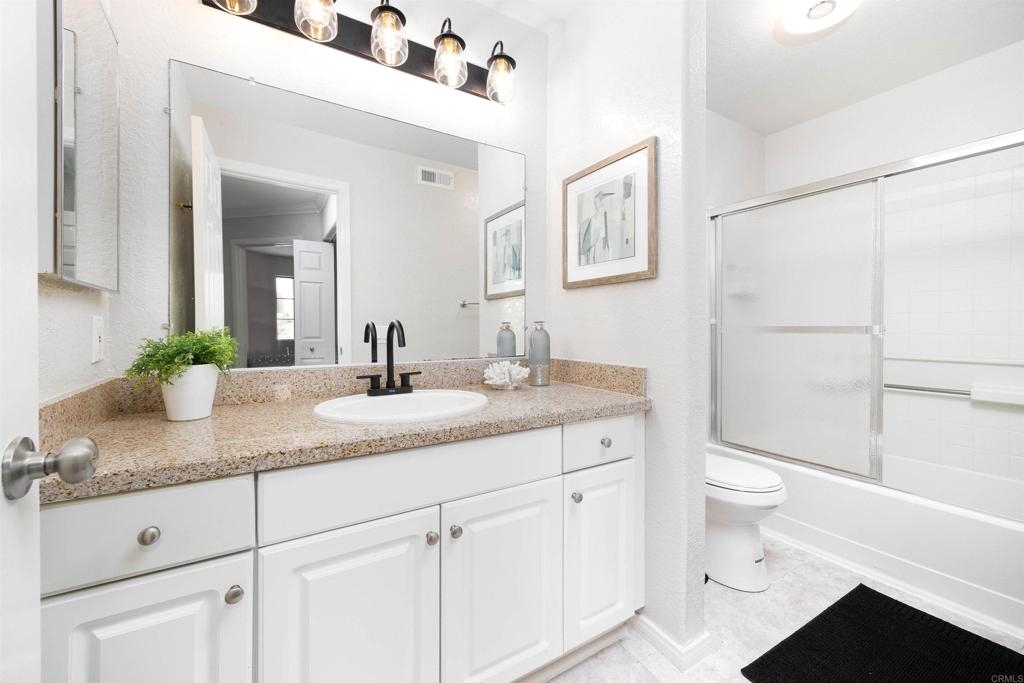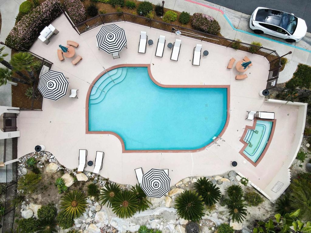 End unit like dual master floor plan, living room, dining area kitchen has granite counters tops, stainless steel appliances, refrigerator, washer and dryer included. Beautifully landscaped common areas, with peak a boo ocean views and peaceful ascetics, this gated community is a nice place to call home. Parking includes detached single garage and an assigned parking space. Vista Way Village amenities two swimming pools, spa/hot tub, playground, basketball court, fitness center, clubhouse.