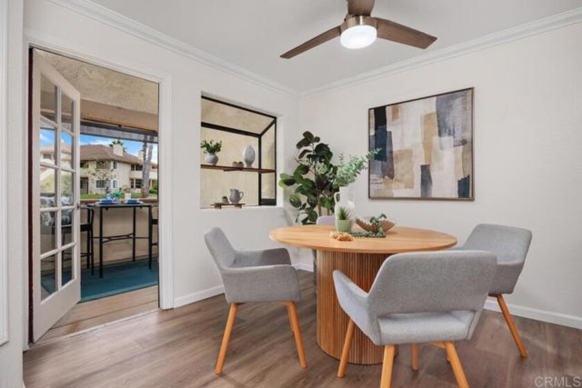 Welcome to Vista Way Village—a gated, peaceful, resort-style community offering comfort, convenience, and upscale coastal living. This 1,093 sq ft, 2-bedroom, 2-bathroom condo has been tastefully updated and is move-in ready! This TOP LEVEL UNIT enjoys a beautiful modern kitchen featuring rich cherry wood cabinetry, granite countertops, and stainless steel appliances. BRAND NEW LVP FLOORS. The open layout flows into a spacious living and dining area with luxury wood-style flooring, crown molding, and stylish lighting. A large peninsula counter is perfect for everyday dining or entertaining. Garden-style window nook—a peaceful spot ideal for indoor plants or relaxing with a view of the greenery outside. Interior Highlights: Updated kitchen with granite countertops & stainless steel appliances. Cherry wood cabinets with ample storage. Bright, open-concept living space. Crown molding and wood flooring. Cozy living room fireplace. Large bedrooms with walk in closet. 2 full bathrooms with modern fixtures. Large, private covered patio. In-unit laundry. 1 private garage + 1 assigned parking space. Vista Way Village Community Amenities: Gated community with controlled access. 2 sparkling pools & 2 relaxing spas. Large, fully equipped fitness center. Spacious event space with kitchen – perfect for hosting gatherings. Tennis court. Play area. Pet-friendly, lush landscaping, and walking paths. Prime location near shopping, dining, freeways, and just minutes to the beach. Community is FHA and VA approved!