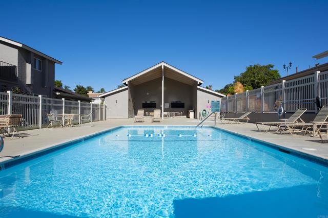 RARE, NON-55+, SINGLE-LEVEL Condo w/ ATTACHED GARAGE & Adjacent Parking Pad in front, in a Convenient HILLTOP LOCATION with LOW HOA dues!!! 1120 sq. ft. in the highly coveted, quaint, 40-unit complex of Vista de Oceana. Located in the heart of Oceanside, the condo is just a couple minutes to main access routes and 12 minutes to the beach. Gorgeous “peacock ore” granite countertops, with breakfast bar, electric range w/ convection oven, built-in microwave, dishwasher, disposal, and refrigerator. Floors boast neutral, earth-toned TILE and laminate. There is a full-sized, front-loading washer & dryer included. Washer/Dryer are INSIDE of the condo, NOT in the garage! Condo has Air Conditioning and Forced air gas furnace with “Smart” programmable thermostat. The HVAC is equipped with a FreshAire UV purifier for improved air quality (esp. great for those with allergies). Dual Pane Vinyl, energy efficient windows help keep sound out, but heat & A/C in! Additionally, there is lots of natural light in the baths via 2 Solatubes. There are south-facing VIEWS of trees & Emerald Isle executive GOLF COURSE driving range. Mirrored closet doors in bedrooms, and lots of closet space. Baths offer a deep soaker tub w/ shower, and a standing shower. Custom trim door handles & hardware have been thoughtfully installed. There are small exclusive-use patios in front (covered) & in back (open) where the birds love to sing. There is also a community pool, spa & cabana. Garage offers spacious storage racks (included) for all your gear. Very convenient to shopping, restaurants & public transportation. Golf Course serves food!