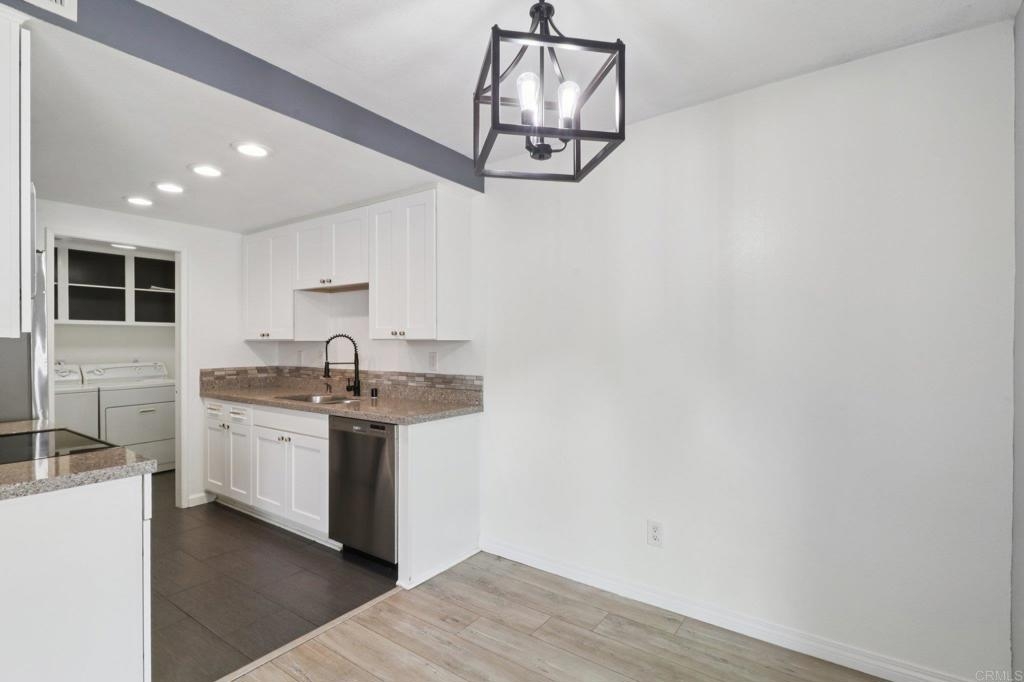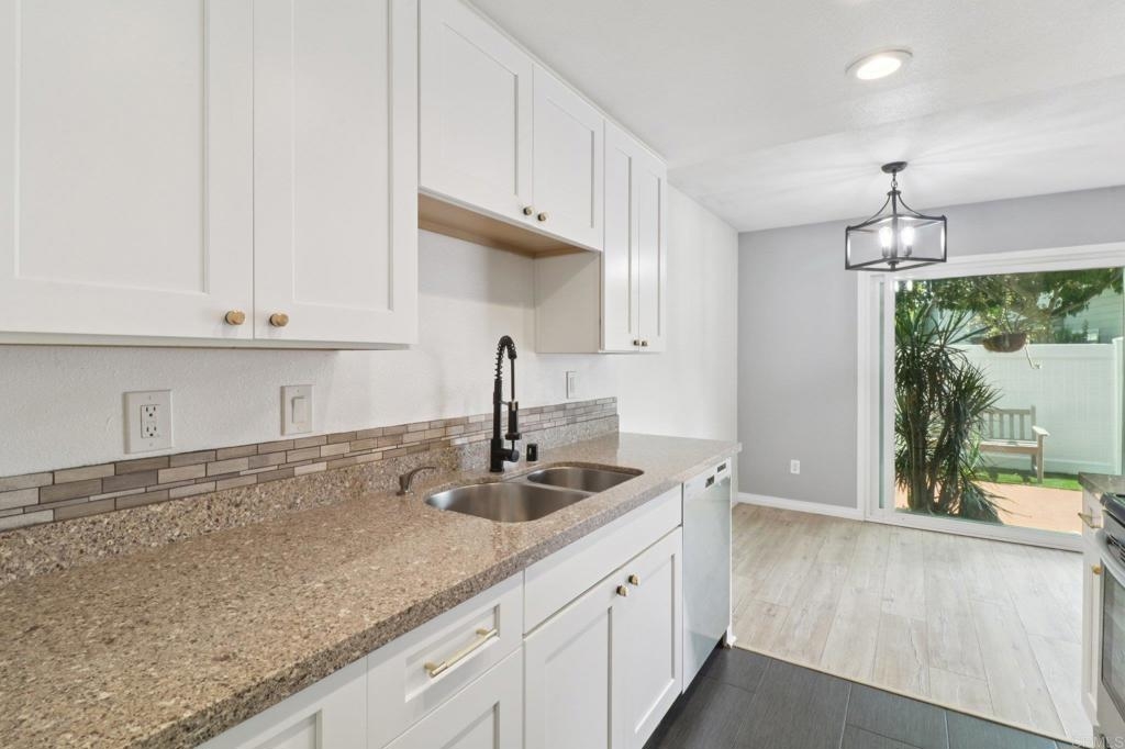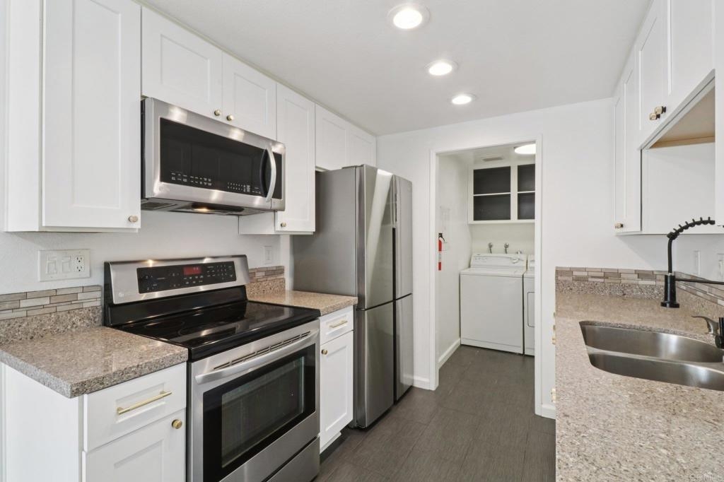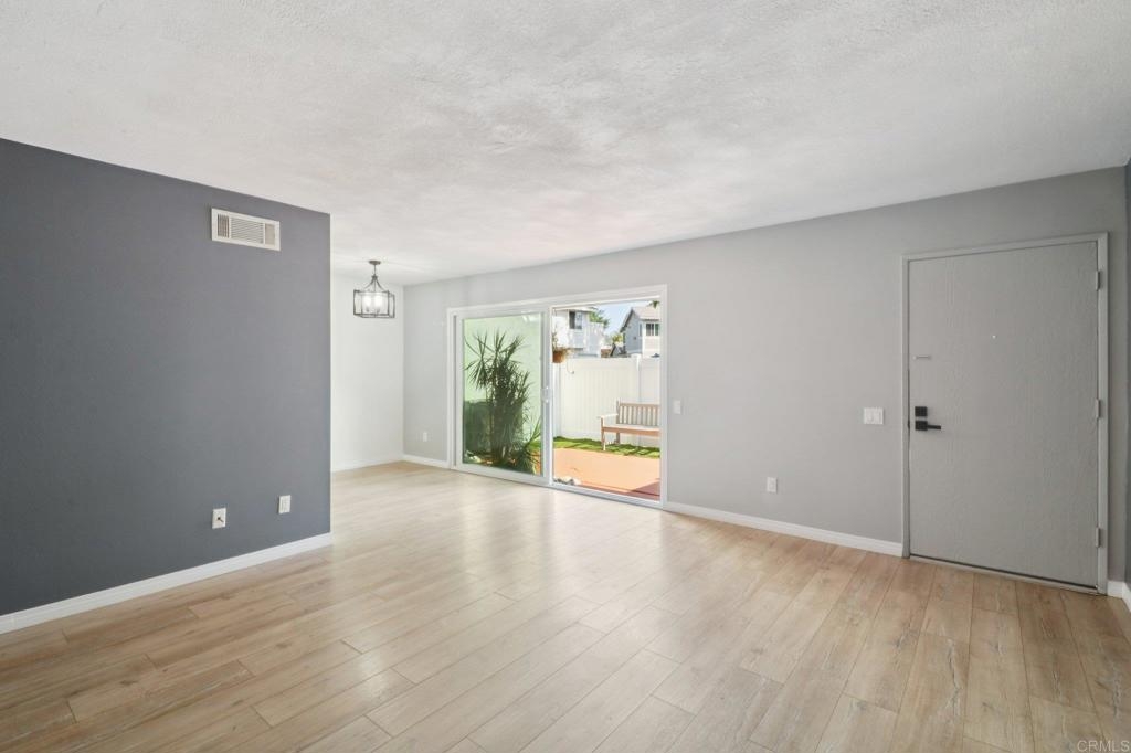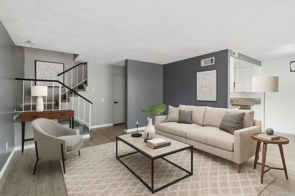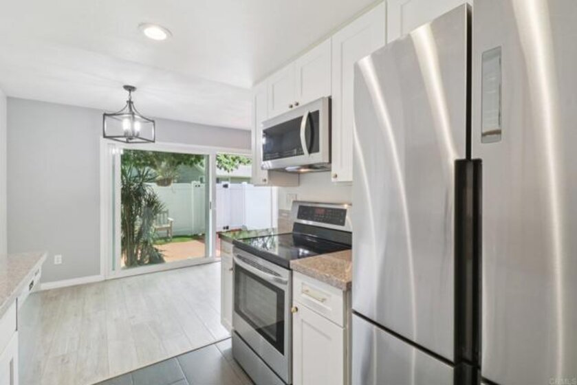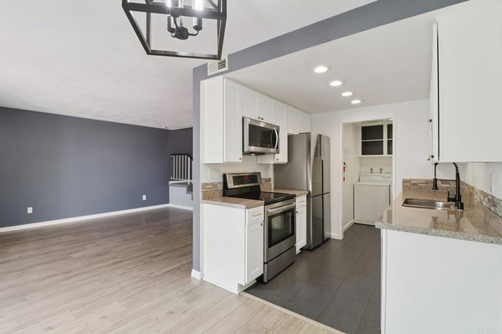 Turnkey condo that feels like a townhome. Greenbelt views in the desirable Whelan Ranch community. This beautifully newer upgraded 2-bedroom, 1.5-bath home offers 1,104 sq ft of light-filled living space and a peaceful, park-like setting with no neighbors above or below. The newer remodeled kitchen features modern countertops, stainless steel appliances, updated fixtures, and stylish flooring. Additional improvements include a new water heater, efficient A/C unit, and laminate wood flooring throughout. The open-concept layout includes a spacious living area, in-unit laundry with extra storage, and a large private patio—ideal for outdoor dining, relaxing, or entertaining. Enjoy the convenience of a one-car attached garage with direct access, plus an additional assigned parking space. The community features a sparkling pool, spa, playground, and plenty of guest parking nearby. Located just minutes from beaches, Camp Pendleton, shopping, dining, and commuter routes, this home offers the perfect combination of comfort, value, and location. Move-in ready condition make this a standout opportunity in Oceanside. Don’t miss your chance to own in one of North County’s most sought-after neighborhoods. Includes a 3 Year Home Warranty.