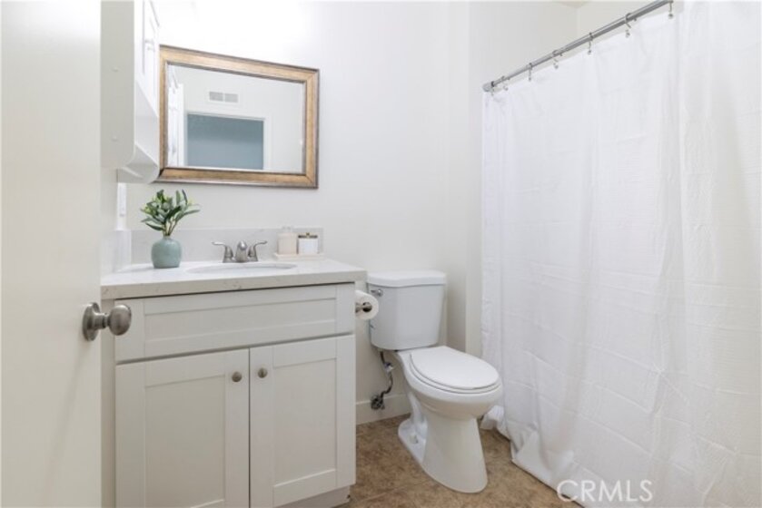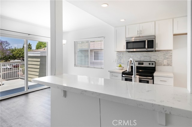 VA Approved! This highly desirable upper level Whelan Ranch, Oceanside home is tastefully upgraded, all single level with no one above or below, and is an end unit with quick access to the community pool. As you step up to this beautiful condo, the patio/deck invites you into a home filled with abundant natural light that has been recently painted throughout, is updated with LVP flooring, vinyl windows, and has an open floor plan that seamlessly flows from the living room, to the dining area, to the kitchen. The kitchen boasts quartz countertops, upgraded white shaker cabinets, recessed lighting, and stainless steel appliances including a brand new dishwasher. The primary bedroom features an en-suite bathroom with quartz countertops and a spacious walk-in closet. The hallway bathroom is equally stunning with quartz countertops and a full bathtub with a shower. Convenience is key with the laundry room located inside the unit! Additionally, this home comes with a spacious single car garage directly below the unit complete with dedicated parking. The HOA fee covers common area landscaping, water, and trash! Embrace the indulgent lifestyle that Whelan Ranch has to offer with the beach just 7 miles away! Relax and grill on your deck, take a dip in the community pool, or explore the nearby trails for hiking or biking the San Luis Rey Trail. The community exudes a secluded feel with mature landscaping and trees, yet is just a stone's throw away from Camp Pendleton, Oceanside pier and harbor, golf courses, fishing spots, restaurants, shopping centers, and schools. Don't miss the opportunity to make this stunning Whelan Ranch condo your own! This is truly a rare find in beautiful Oceanside in a sought-after location, so schedule a viewing today before it's gone!
