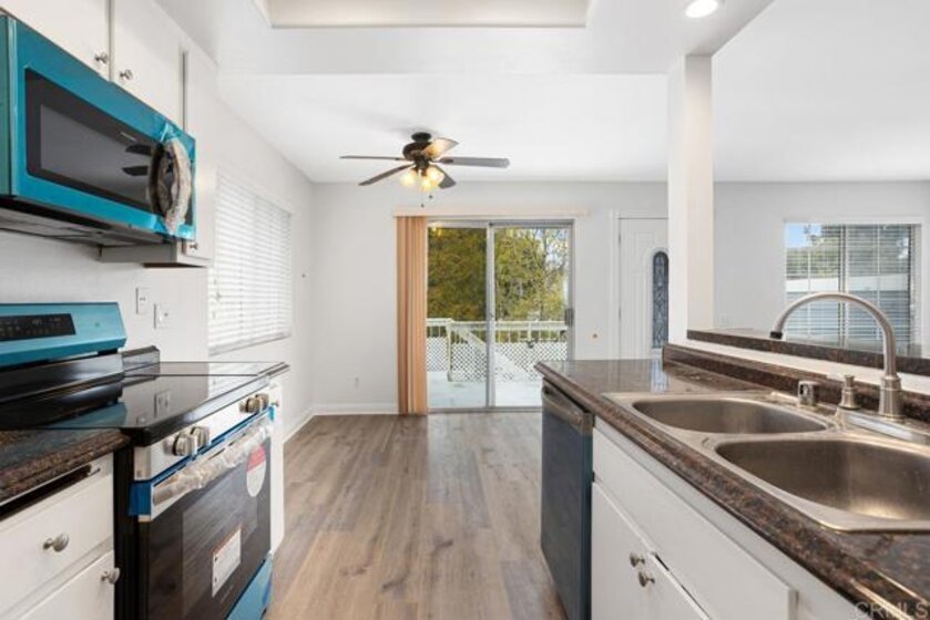Enchanting townhome in the heart of Whelan Ranch, a community known for its friendly neighbors and ample amenities. This upper-level end unit exudes the essence of single-story living, complemented by an attached garage for added convenience. Comes with an additional reserved space. Upon entry, fall in love with the open-concept design, seamlessly blending the kitchen and living areas adorned with Brand new high end Flooring and Paint. The kitchen, a culinary haven, boasts a pass-through window, recessed lighting, and generous cabinet space, inviting you to explore your culinary prowess. Be relieved to know you will have Brand new - Never-been-used Frigidaire appliances; including, Microwave, Oven, Refrigerator and Dishwasher. Flowing effortlessly from the kitchen is the light-filled living room and adjacent dining area, providing a relaxed setting for lounging and gatherings. Step through sliding glass doors onto the expansive front deck, an excellent space for entertaining our just sitting outside enjoying our southern California weather. Retreat to the spacious primary bedroom, featuring a walk-in closet and ensuite bath. Two additional guest bedrooms, a full bath, and a convenient laundry room complete the thoughtfully designed floor plan. Outside, discover the allure of Whelan Ranch's community amenities, including a refreshing pool and spa, playground, park, and covered picnic areas, promising endless opportunities for recreation and enjoyment. Conveniently situated near Camp Pendleton, esteemed schools, downtown Oceanside, shopping destinations, and the pristine beaches of North County, this townhome offers easy access to all that coastal living has to offer. Come experience a lifestyle of comfort, convenience, and community in this idyllic retreat.