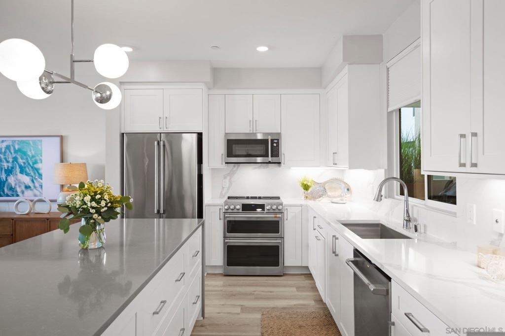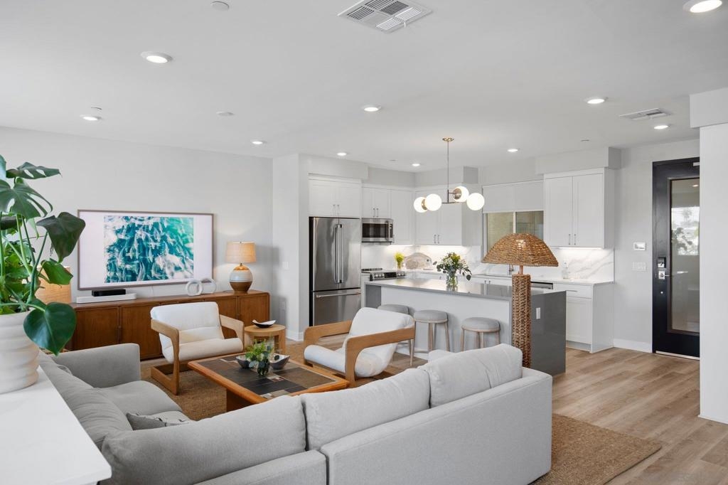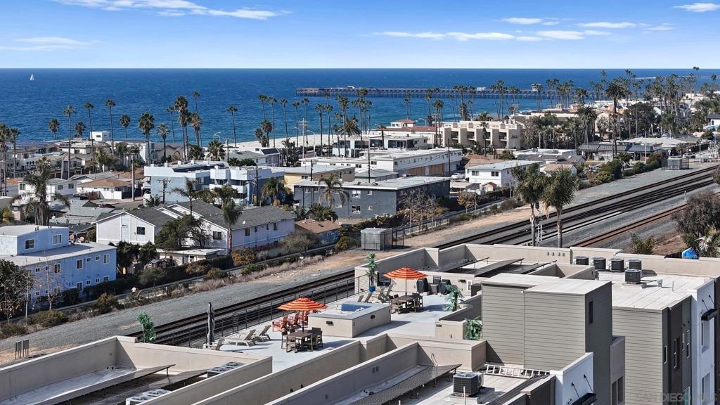Newly constructed coastal retreat in the heart of Oceanside. As you step inside this corner unit, you'll be greeted by an open-concept floor plan that’s filled with natural light. The spacious living room flows seamlessly into the dining area & kitchen, creating a welcoming space for entertaining or relaxing. This 3-bedroom, 2-bathroom home features 1 bonus room that can be uses as an office or workout room and the updated kitchen features sleek quartz countertops, stainless steel appliances and plenty of cabinet space. The primary suite has a spacious walk-in closet and a large, private ensuite bathroom. The two additional bedrooms are generously sized, offering plenty of space for family or guests. On the 4th floor of the building you will find a massive rooftop deck with unobstructed sweeping ocean views, multiple seating areas, as well as BBQ’s, lounge chairs & umbrellas. Additional features include two assigned parking spaces with EV charging in reach, 1 large storage unit located next to the elevator (the only interior private storage unit in the whole building!). You can enter from the street through your own private front door or via coded access through the main door of the building. Whether you're looking for a full-time residence, vacation home, or an investment property, this home offers endless possibilities. Easy access to the 5, 78 & 76 freeways as well as the train station and just 3 blocks from the beach, it’s also walking distance to the best coffee shops, dining and shopping Oceanside has to offer!