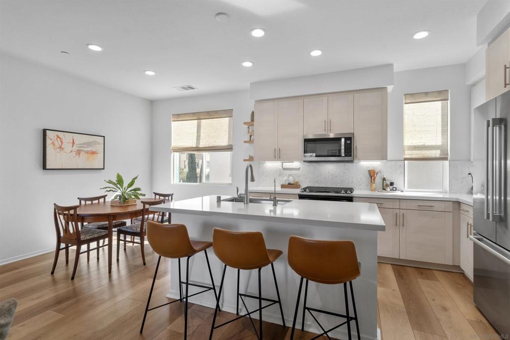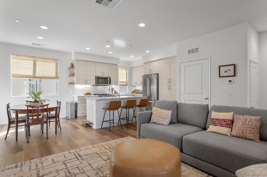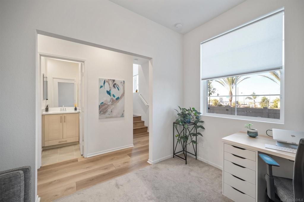 Welcome home to the highly desired community of Pacific Ridge in Rancho Del Oro. This townhome features an open floorplan designed for entertaining. Enjoy the westerly ocean view from your balcony and primary bedroom and open the windows for a consistent ocean breeze. On the first level you will find an office or optional bedroom with a full bathroom. As you walk up to the 2nd level the spacious kitchen and living room greet you with warmth and a modern design. As you continue up to the third level you will find three bedrooms and two full bathrooms. This family friendly neighborhood includes multiple playgrounds, a pool and a large grassy area. Like-new this home is a MUST SEE!