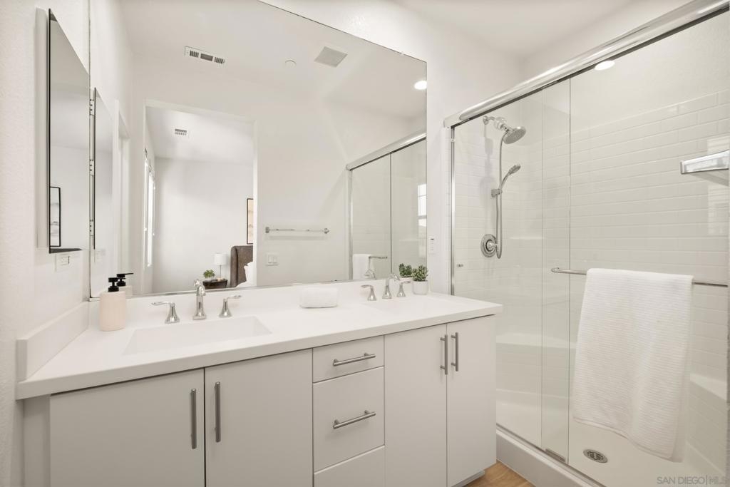 Welcome to this beautifully upgraded 4 bed/ 3.5 bath town home in the coveted gated community of Pacific Ridge in Oceanside! Built in 2017, this modern three-story townhouse combines designer finishes, premium upgrades, and a bright, open layout for the ultimate coastal lifestyle. The entry level features a private bedroom with a full bath, perfect for guests, a home office, or renting the room out. The main living area has an inviting open floor plan with a gourmet kitchen that includes quartz countertops, premium stainless-steel appliances, and abundant cabinetry, flowing seamlessly into the spacious dining and living areas. Upstairs, the primary suite offers a walk-in closet and spa-inspired bath with dual vanities, while two additional bedrooms provide plenty of space for family, guests, or a flex setup. Throughout the home, enjoy premium engineered hardwood floors, custom accent walls, in-ceiling speakers, and a Kinetico whole house water filtration system with reverse osmosis filter. An attached two-car garage and pet-friendly policy add everyday convenience. Residents of Pacific Ridge enjoy resort-style amenities, a sparkling pool, relaxing spa, BBQ areas, parks, and playgrounds. Ideally located just minutes from the beach, shopping, dining, and major freeways. This property is VA approved and is eligible for down payment grants. Reach out for more info.