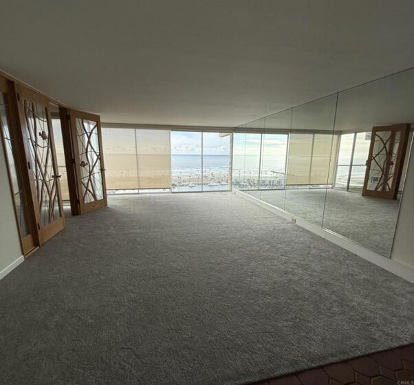 Breathtaking whitewater ocean and harbor views! On a clear day you can see Catalina and San Clemente Islands, and watch the kayakers and sailboats drift in and out of the harbor from your living room. From your private balcony, you can watch the surfers, or grab your board and join them! This unique highrise building is a rare find along the coast. This unit is a true 2 bedroom with artisan glass door panels separating the second bedroom and living area. Freshly carpeted and ready for your decorating touches. Note the many amenities in the building – pool, spa, barbecue area, exercise room, and well-appointed recreation room. Wifi, basic cable, and water included in your HOA dues. Secure building, and gated parking add to your comfort, and there is an additional storage closet for your surfboards, bicycles, beach chairs. Professional interior photos coming soon.