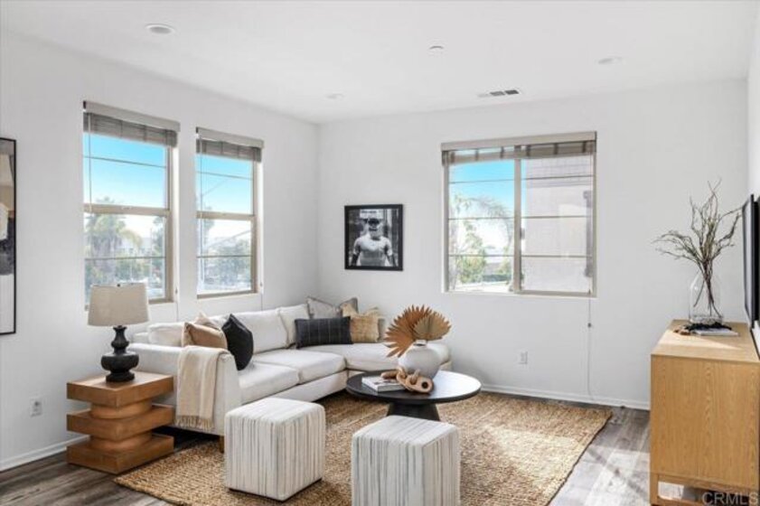 This beautiful end-unit home in a gated, Oceanside community offers the perfect mix of comfort, style, and convenience. Just minutes from the beach, shopping, and dining, you’ll love the easy access to everything North County has to offer. Inside, you’ll find a bright, south-facing open floor plan with panoramic views and plenty of natural light. The kitchen features modern appliances, lots of counter space, and a large island that’s great for cooking or entertaining. A first-floor bedroom and bathroom provide added flexibility for guests, multigenerational living, or a private home office. Upstairs, the spacious primary suite comes with a walk-in closet and private bathroom. Additional bedrooms are versatile - perfect for kids, guests, or work-from-home space. Step outside to an oversized, professionally designed patio yard, complete with a fountain, built-in BBQ, sink, and propane fire pit great for entertaining or relaxing. Additional features include a tankless water heater with quick hot water, an epoxy garage floor in the two-car garage and dual-zone A/C with a smart thermostat for comfort and efficiency. The community offers fantastic amenities, including a pool, BBQ and picnic area, and three playgrounds, along with well-kept common areas. VA approved!