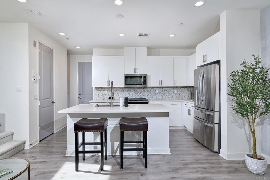 Hurry, because this home won't last long at this price. Welcome to 1278 Via Fanal. Built in 2017, this 2-Story home offers a flowing, open floor plan, low-maintenance LVP flooring throughout the downstairs, quartz counters in the kitchen and bathrooms, custom blinds and designer fixtures. Glass doors and large windows bring abundant light into the dining area/family room, which features a distinctive venetian plaster accent wall. Separated by a center island with counter seating, the kitchen has a stylish custom backsplash, cheerful white cabinets and high-end SS appliances, including a gas range. Versatile and refined, the home offers a spacious upstairs loft that could serve as a fourth bedroom and generous secondary bedrooms. With a private view deck, a spa-like bath with barn door for privacy complete with a large walk-in shower and dual sinks, the primary suite is an inviting place to start or finish the day. Beautifully extending the living space outside, the large backyard includes a covered patio, a tall privacy fence and low-maintenance stone flooring. Also a Whirlpool front loading washer/dryer that conveys with purchase, recessed lighting and an attached two car garage. Set only seven miles away from local beaches, in a highly sought-after gated community with a pool/spa and several playgrounds, this sophisticated 2-story, end unit townhome offers a lifestyle that many can only dream about. Located nearby the 78 freeway, Front Wave Arena as well as a variety of shops, parks and restaurants, the residence includes a secure, peaceful setting with no neighbors behind the home. Situated in close proximity to several local schools, hiking/biking trails and everything Oceanside has to offer, an easy day trip from San Diego, San Onofre, San Clemente and Trestles, this inviting, completely turnkey home is a great opportunity.