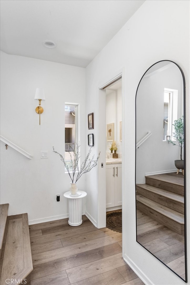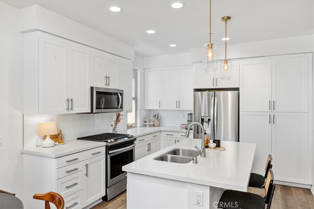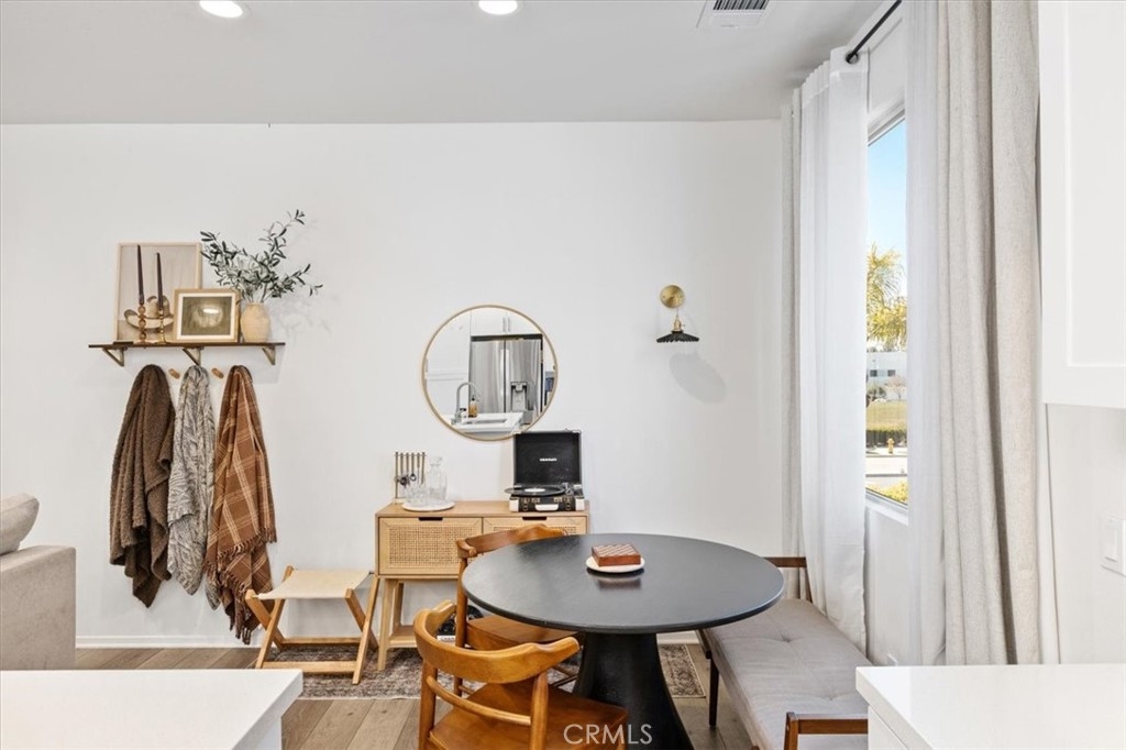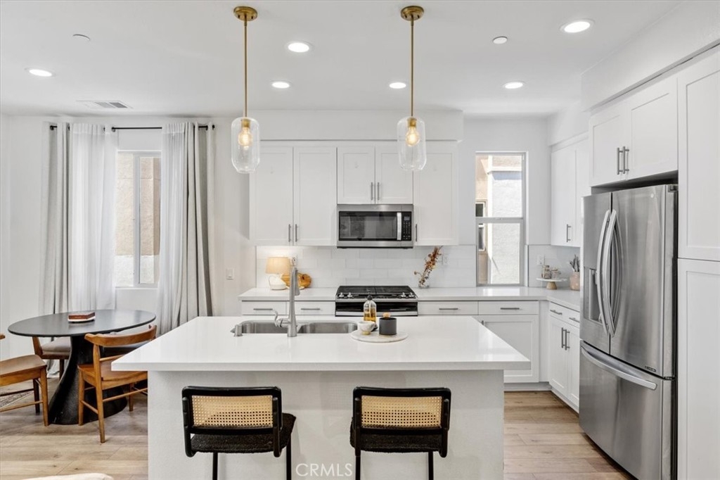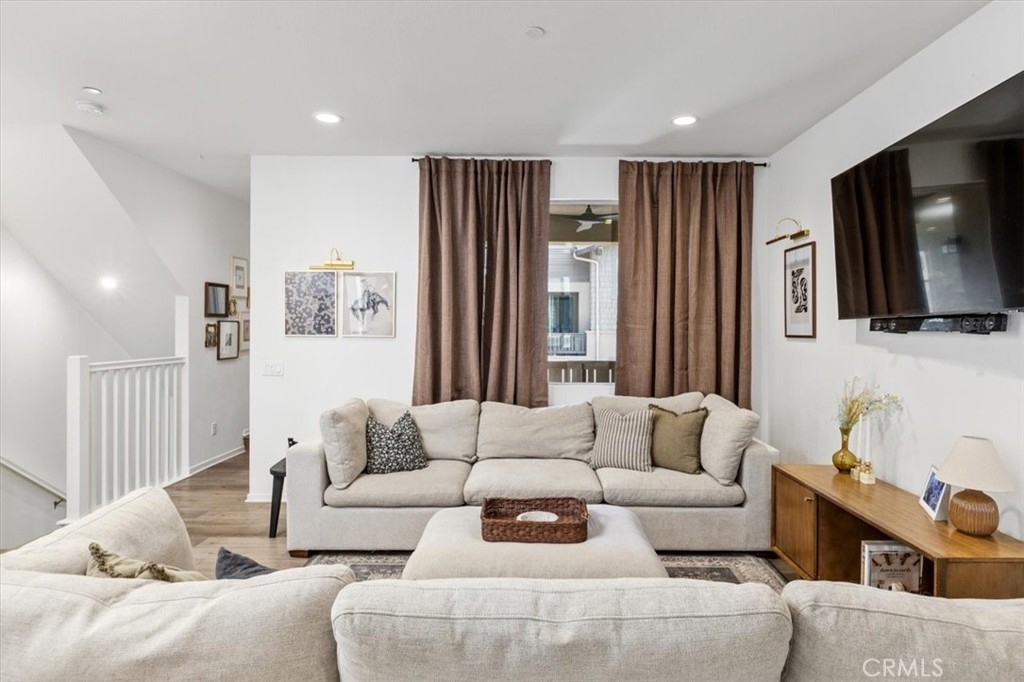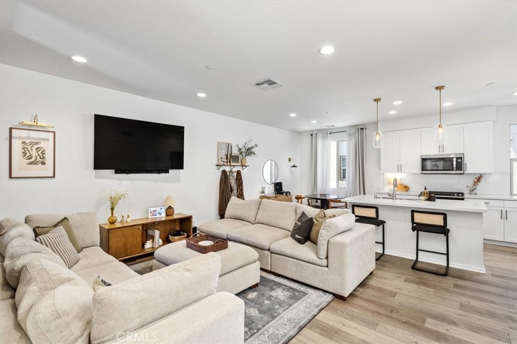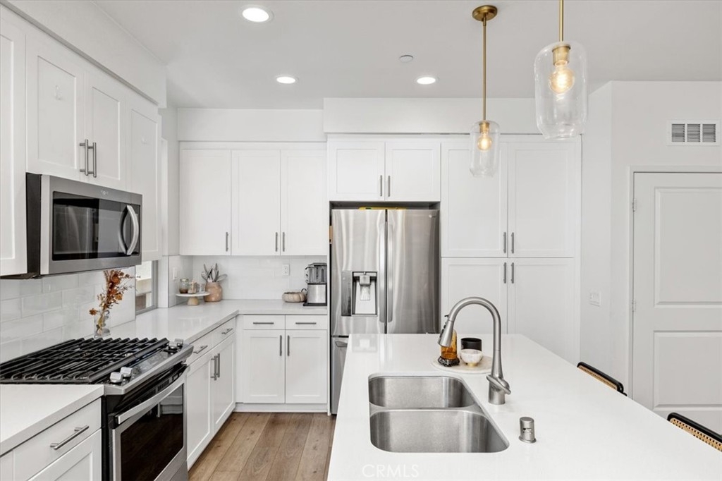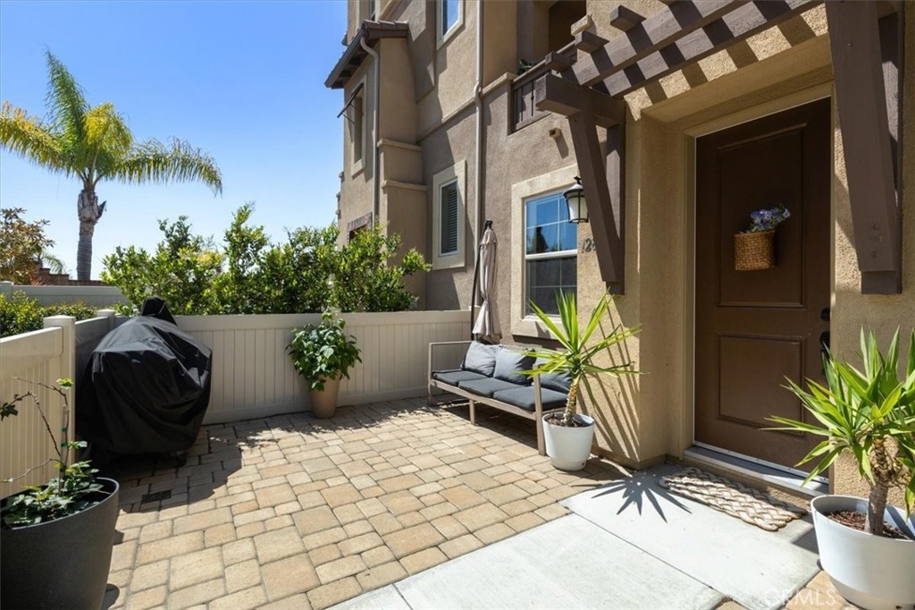 Welcome to Lucero at Pacific Ridge in Rancho del Oro! This beautifully upgraded 4-bedroom, 3.5-bath townhome with a 2-car garage offers a bright, open floor plan and is move-in ready. On the entry level, you'll find a spacious bedroom with a custom barn door and a full bath—ideal for guests or a home office. The second floor features a light-filled kitchen with quartz countertops, an island with bar seating, stainless steel appliances, and a daily dining area. The adjacent family room opens to a large, covered deck—perfect for relaxing or entertaining. A laundry room completes this level. Upstairs, the serene primary suite includes a walk-in closet and a spa-inspired bathroom with a large walk-in shower and dual-sink vanity. Two additional bedrooms and a full bath round out the top floor. Outdoor living is just as inviting, with a paver patio ideal for gatherings and dining al fresco. Additional highlights include luxury vinyl plank flooring throughout, upgraded vanities in all bathrooms, A/C, tankless water heater, and instant hot water buttons in the kitchen and primary bath. Located in the gated Pacific Ridge community, residents enjoy top-tier amenities including a resort-style pool, spa, BBQ areas, multiple parks, and playgrounds. All this, just minutes from shopping, dining, coffee shops, and the beach!