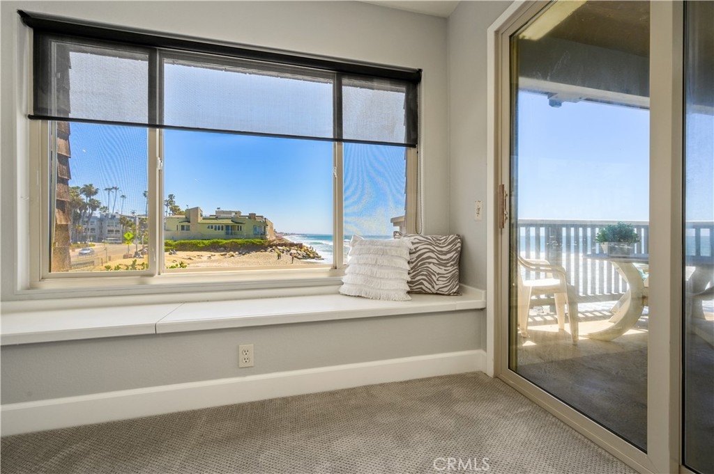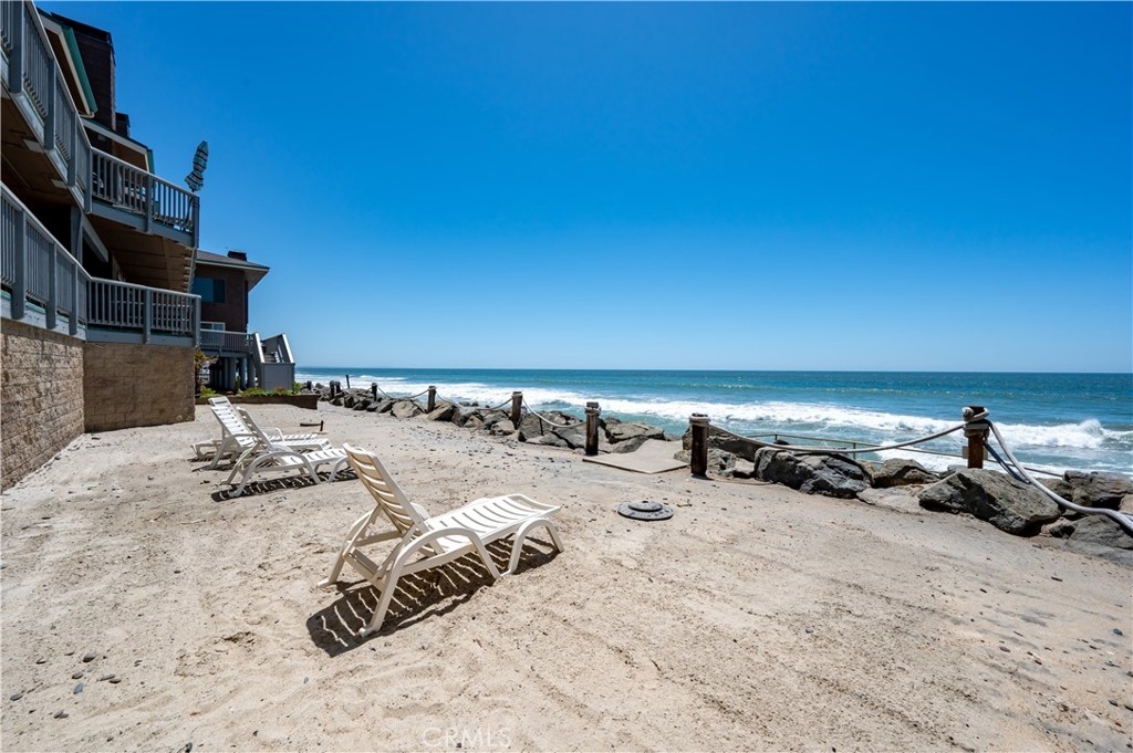 Welcome to 1445 S Pacific Street in the premium location of South Oceanside. This beachfront, end unit, single-level condo, boasts unobstructed views of the ocean from each room of the house. From the moment you enter the living space your eyes are drawn to the brightness of the home and the breathtaking views of the soothing ocean. This unit is one of the BEST situated in the White Water Village and these condos are RARELY on the market. Special features of this condo are not limited to: Updated kitchen with newly installed white shaker soft-close cabinetry, specialty hardware, rubbed bronze faucet, newly installed matching stainless appliances (microwave, oven/range/dishwasher/disposal), smoked grey full glass subway tile backsplash, white quartz countertops with peppered veins, newly installed Luxury vinyl plank flooring, wider baseboards, newly installed carpeting in the bedrooms, new bath vanities which echo the kitchen, custom built-in shelving and freshly painted in neutral grey creating a soothing palate to relax and enjoy. The private patio is a perfect size - large enough to spread out, BBQ, entertain or relax and it can be entered through the living room or the secondary bedroom. Outside this unit's door is the entrance to the community private beach and expansive sun patio. This unit has 2 assigned parking spots in the subterrean garage and the building entrance is privacy secured with an elevator. Conveniently situated near the hustle and bustle of the strand, pier and restaurants as well as easy access to freeways, stores and more. Come live the beach life in this truly outstanding hidden gem.