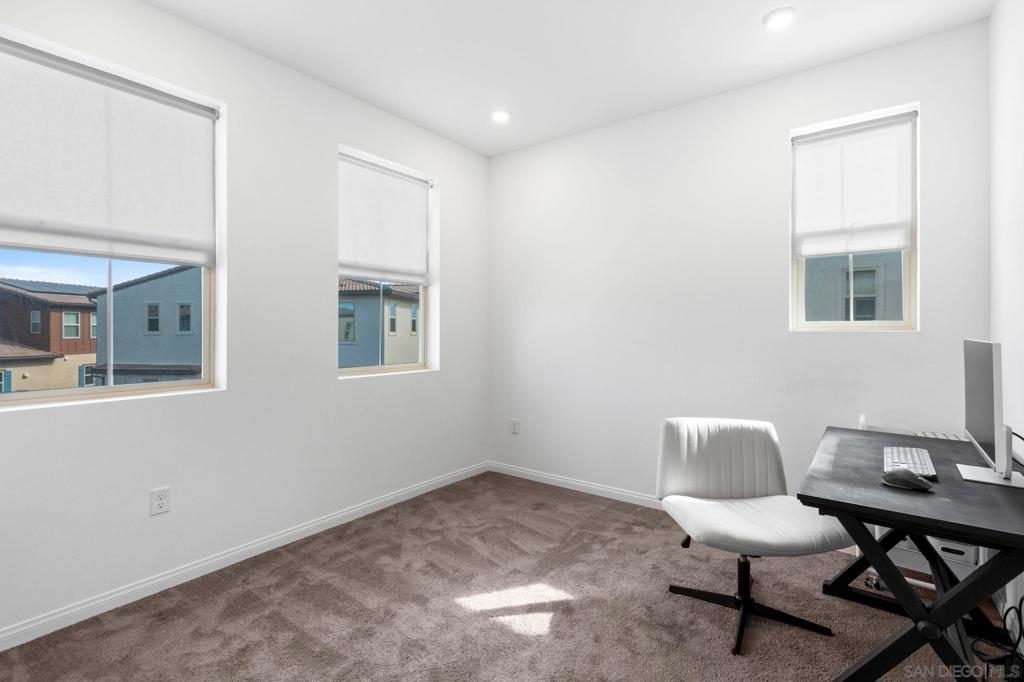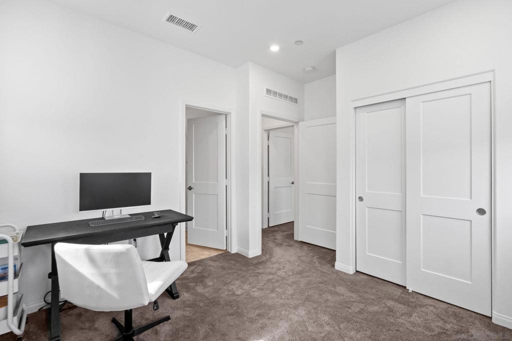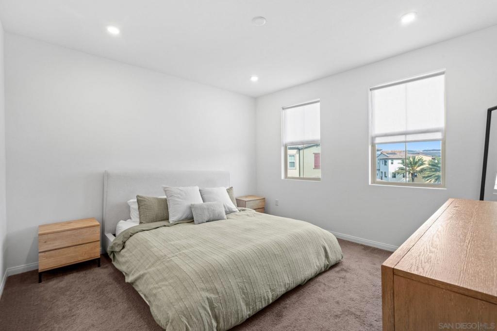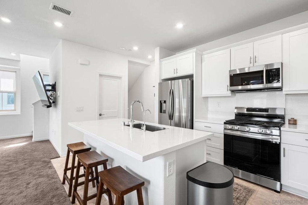 Built in 2022, this three-story townhome offers the aesthetic and efficiency of near-new construction. The home is equipped with a fully integrated solar system, significantly reducing energy costs while providing a sustainable footprint. Situated in a growing Oceanside community, this home balances a quiet residential feel with great modern amenities plus a community pool and is situated in a great location. The interior features a bright, functional kitchen with streamlined cabinetry and modern appliances that open directly into the main living area. Two spacious bedrooms and two and a half bathrooms are distributed across the three-level floor plan, creating a natural separation between the private sleeping quarters and the social heart of the home. On the ground level, an oversized two-car garage provides secure parking and substantial extra storage space. This turn-key property is a rare find for buyers looking for quality and value in a prime location. Whether you are looking for a low-maintenance primary residence or a smart investment in North County, this home delivers on both quality and location.