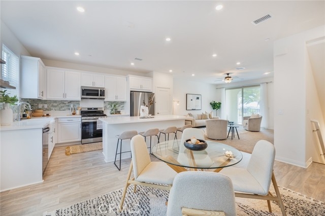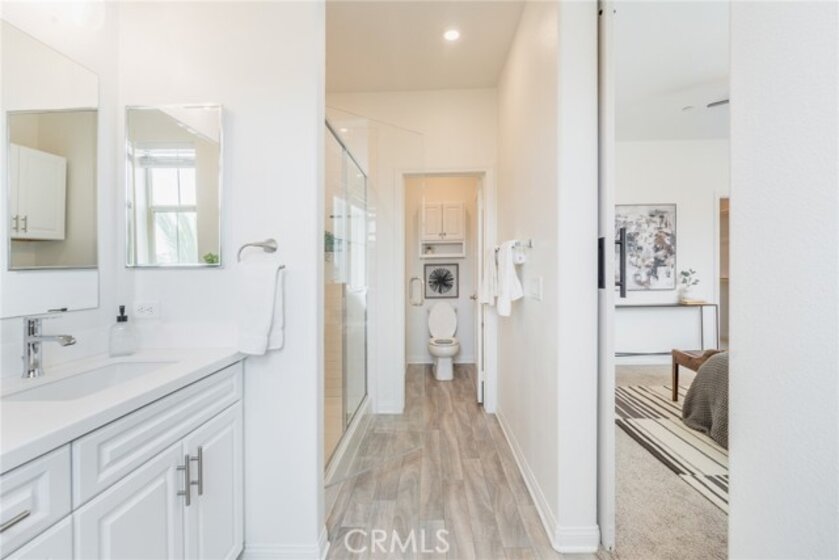 Welcome to your modern oasis in the highly desirable Sunset at Melrose community! This beautifully upgraded 3-bedroom, 2.5-bath townhome also features a versatile bonus office which provides the ability to work from home, for creative projects, or a quiet retreat. The open-concept floorplan is filled with natural light and showcases luxury quartz countertops, a newly installed designer backsplash, and sleek laminate flooring. The kitchen flows seamlessly into the spacious living area, which opens up to an expansive balcony which is ideal for morning coffee, evening sunsets, or entertaining guests. Designed with both convenience and sustainability in mind, the home includes fully paid-off solar panels and installed EV charging plug in the attached two-car garage. Upstairs, the primary suite offers a peaceful escape, while two additional bedrooms provide plenty of space for family or guests. The additional office adds valuable flexibility for today’s evolving lifestyle needs. Located just minutes from beaches, shopping, dining, and freeway access, and with access to community amenities like a pool, spa, playground, and picnic areas, this home truly blends comfort, efficiency, and coastal charm. Move-in ready and thoughtfully designed, this is contemporary living at its best.