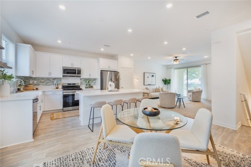 Welcome to your modern oasis in the highly desirable Sunset at Melrose community! This beautifully upgraded 3-bedroom, 2.5-bath townhome also features a versatile bonus office which provides the ability to work from home, for creative projects, or a quiet retreat. The open-concept floorplan is filled with natural light and showcases luxury quartz countertops, a newly installed designer backsplash, and sleek laminate flooring. The kitchen flows seamlessly into the spacious living area, which opens up to an expansive balcony which is ideal for morning coffee, evening sunsets, or entertaining guests. Designed with both convenience and sustainability in mind, the home includes fully paid-off solar panels and installed EV charging plug in the attached two-car garage. Upstairs, the primary suite offers a peaceful escape, while two additional bedrooms provide plenty of space for family or guests. The additional office adds valuable flexibility for today’s evolving lifestyle needs. Located just minutes from beaches, shopping, dining, and freeway access, and with access to community amenities like a pool, spa, playground, and picnic areas, this home truly blends comfort, efficiency, and coastal charm. Move-in ready and thoughtfully designed, this is contemporary living at its best.