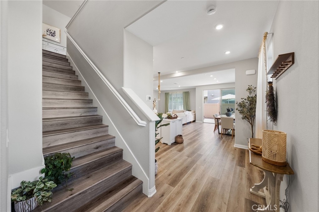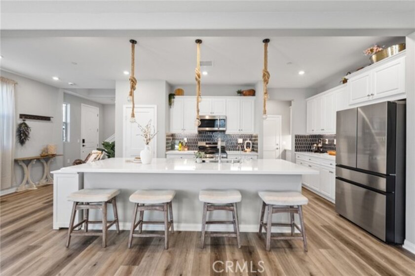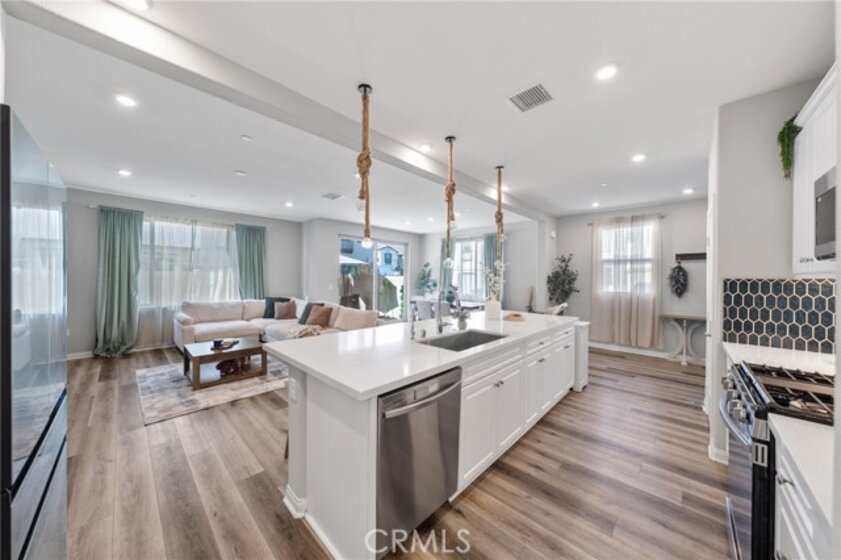 Welcome to Melrose Heights, a beautifully designed newer townhome community in Oceanside. Built in 2023, this 3 bedroom, 2.5 bath home combines modern style, energy efficient features, and a functional floorplan in a highly desirable coastal location. Natural light fills the main living areas, where the open concept layout connects the living, dining, and kitchen spaces for seamless everyday living. The upgraded kitchen stands out with quartz counters, a large center island, custom backsplash, pendant lighting, and stainless steel Samsung appliances. Thoughtful improvements include paid solar, EERO wifi boosters, a smart thermostat, reverse osmosis system and a two car attached garage prepped for EV charging. On the second floor, a spacious loft offers flexibility for a variety of uses, while the primary suite features a bright, peaceful setting with an ensuite bath that includes dual vanities, cultured marble counters, a soaking tub, walk in shower, and generous walk in closet. Two additional bedrooms, a full bath, bonus walk in closet and a separate laundry room complete the upper level. Melrose Heights offers well maintained amenities including a community pool, outdoor gathering areas, landscaped grounds, and play area. Located just minutes from the beach, Oceanside Pier, shops, restaurants, farmers markets, and local events, this home presents an excellent opportunity to enjoy modern coastal living.
