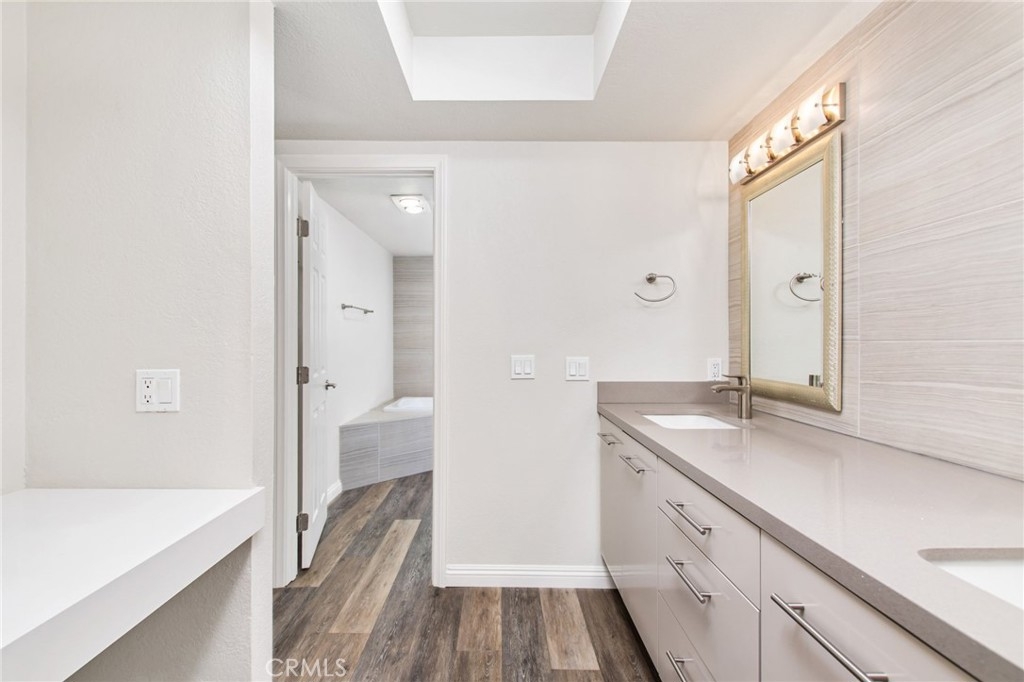 MASSIVE PRICE DROP!!! Coastal Condo with Modern Upgrades! Discover this charming coastal condo in a fairly small complex with only 39 units. This home offers privacy and modern living. Features include a tile fireplace, window shutters, LVP flooring, recessed lighting, and a safe neighborhood. The updated kitchen has modern appliances and a clean look, while the dining area boasts bay-style windows. Enjoy the convenience of a separate laundry room, central air and heat, and two patios. The condo has two spacious bedrooms, each with its own bathroom. The primary bedroom includes dual sinks, a separate vanity area, a walk-in closet, and a beautiful bathroom with a gorgeous tub and separate shower. Additional amenities include a detached single-car garage, community pool and spa, and proximity to Buena Vista Lagoon and Carlsbad. Don't miss out on this incredible opportunity!