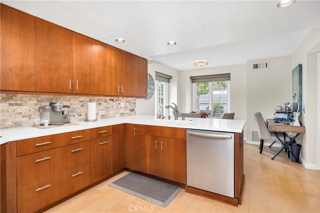 Discover the elegance of this coastal condo with its stunning, unobstructed views of the Buena Vista Lagoon. Nestled in a serene community of just 39 units, this upgraded second-story home is only minutes away from downtown Carlsbad and the beach. As you step through the private entry, you're greeted by a welcoming foyer that opens into a spacious living room featuring vaulted ceilings, a custom fireplace, wood flooring, and sliding doors that lead to a balcony overlooking the lagoon and its surrounding natural beauty. The fully upgraded kitchen boasts sleek countertops, modern cabinetry, stainless steel appliances, a walk-in pantry, and a convenient breakfast bar or nook. The separate dining room is bathed in beautiful natural light, while ceiling fans throughout the home ensure year-round comfort. The generously sized main suite includes vaulted ceilings, a ceiling fan, and a private balcony—perfect for enjoying your morning coffee or an evening beverage. The luxurious bathroom features double sinks, a jacuzzi soaking tub with exquisite tile, a separate shower, and a large walk-in closet. The private and spacious guest bedroom offers direct access to the guest bathroom, which includes an upgraded shower. Additional highlights include newer central heating and air conditioning, an oversized utility room with washer/dryer connections, a detached garage with assigned parking space #40, and close proximity to the community pool/spa and other association amenities. You won't want to miss out on this great opportunity, so call now for your private showing