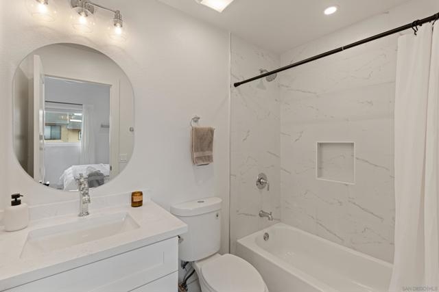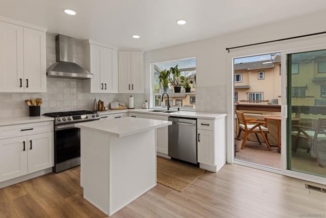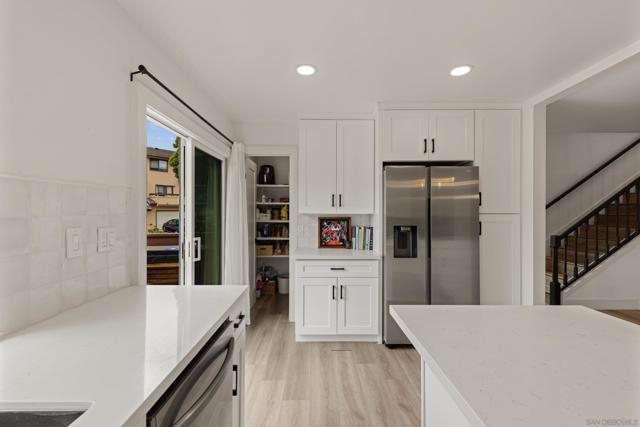 Tucked into the hillside of Oceanside’s coveted Fire Mountain neighborhood, this updated *end-unit* townhome feels like a hidden gem with the perfect balance of style, functionality, and laid-back California charm. A spacious, private front patio welcomes you with room to relax, dine, or entertain—creating effortless indoor-outdoor flow that extends into the open living area. Inside, natural light fills the home thanks to high ceilings, new Milgard windows, and the end-unit location. The updated kitchen features stainless steel appliances, quartz countertops, a walk-in pantry, and access to a balcony—ideal for sipping morning coffee or unwinding after a long day. Just off the kitchen, the dining space connects seamlessly to the rest of the home, perfect for gathering with friends or quiet dinners in. Upstairs, you’ll find two generously sized bedrooms, each with its own en-suite bathroom. The layout offers privacy, flexibility, and room to grow. Additional highlights include a brand-new HVAC system with central AC and access to a quiet community with pool and spa amenities. Ideally located near shopping, dining, and major freeways, this turnkey home offers comfort, convenience, and a strong sense of place in one of Fire Mountain’s most desirable pockets.