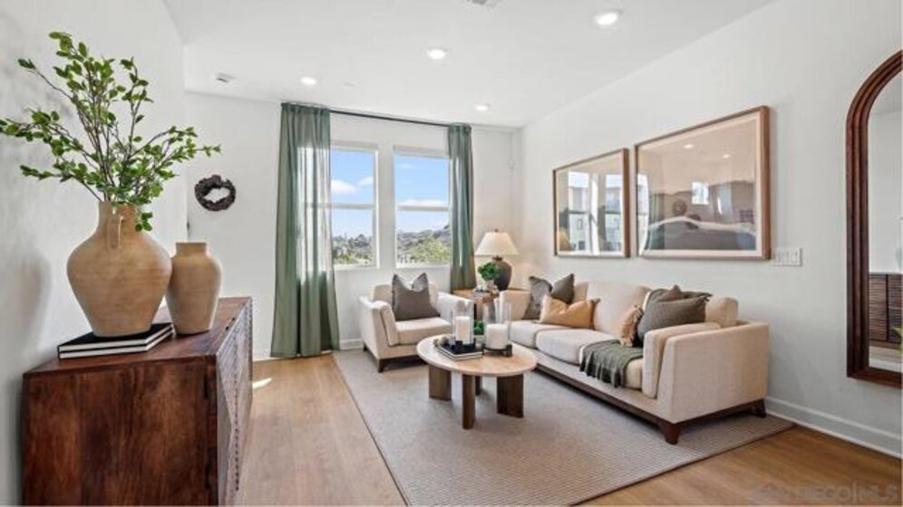 This new three-story townhome is designed for modern lifestyles. The main living area can be found on the second level among an open-concept floorplan shared between a kitchen and inviting Great Room. The luxurious owner’s suite makes up the third floor, complete with a spa-inspired bathroom and generous walk-in closet. A single-bay garage on the first level is ready for any parking or storage needs. OceanPointe is a new community offering brand-new, townhome-style condominium homes, now selling in Oceanside, CA. The community features a prime location just a short drive from the beach, has no Mello-Roos and features the only newly constructed homes in this area of Oceanside. Residents will enjoy access to onsite amenities, including a recreation area with a pool, tot lot and dog parks. The local area offers ample outdoor recreation with nearby sport fields, hiking trails and pristine local beaches. Proximity to local freeways offers simple commutes and travel, and there are several local shopping centers nearby. Photos or renderings may be of the Model Home and not the actual home.