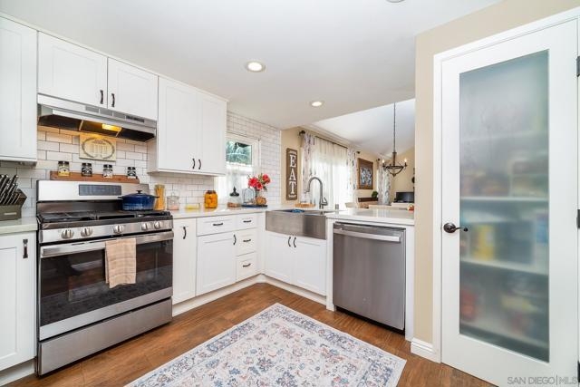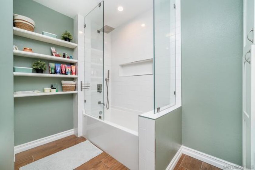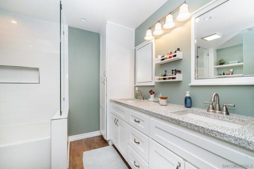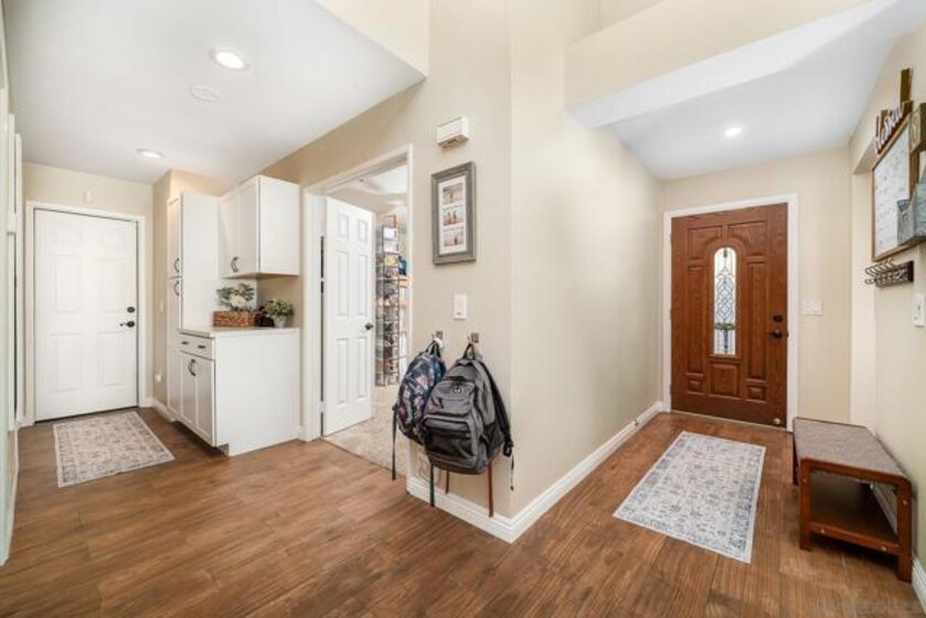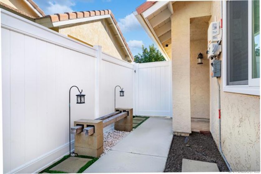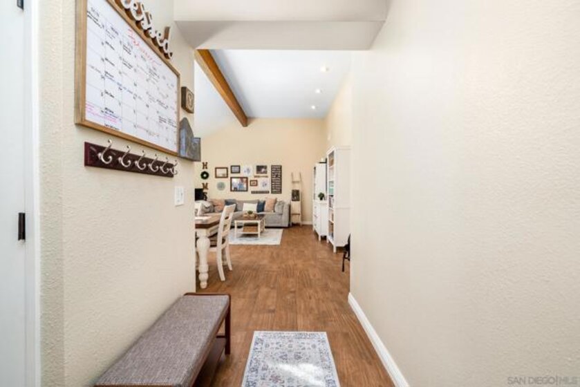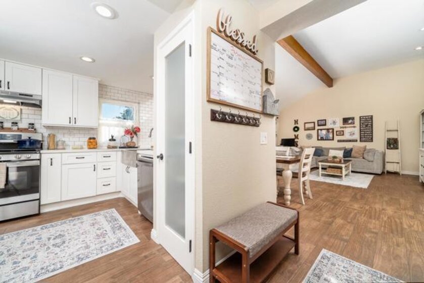 Welcome to your dream home in Oceanside, CA! Step into this beautifully upgraded home, where modern elegance meets comfort. The heart of the residence is its kitchen, a culinary dream with newer cabinets, countertops, appliances, and a chic farmhouse sink. The layout has been thoughtfully redesigned to include an additional pantry, maximizing both style and functionality. In the living and dining areas, you'll find refined touches such as an upgraded chandelier and added storage space, enhancing both the ambiance and convenience. The master suite is a serene retreat, boasting a fully remodeled bathroom with upgraded cabinetry, a stylish tile shower, and a functional closet system. The second bedroom has been refreshed with newer carpet, offering a cozy and inviting space. The hallway and hall bathroom feature new cabinetry and countertops, with the bathroom further enhanced by a designer stand-up shower and modern USB outlets for convenience. Matching wood plank tile adds a touch of sophistication throughout the home, unified by a dual-zone climate control air conditioning system with wireless thermostats and solar panels for energy efficiency. The house also boasts upgraded copper plumbing and an upgraded electrical system with ethernet wiring, ensuring a connected and comfortable living experience. Concluding the list of impressive upgrades is the garage, equipped with a tankless water heater, water softener, and enhanced electrical fixtures.