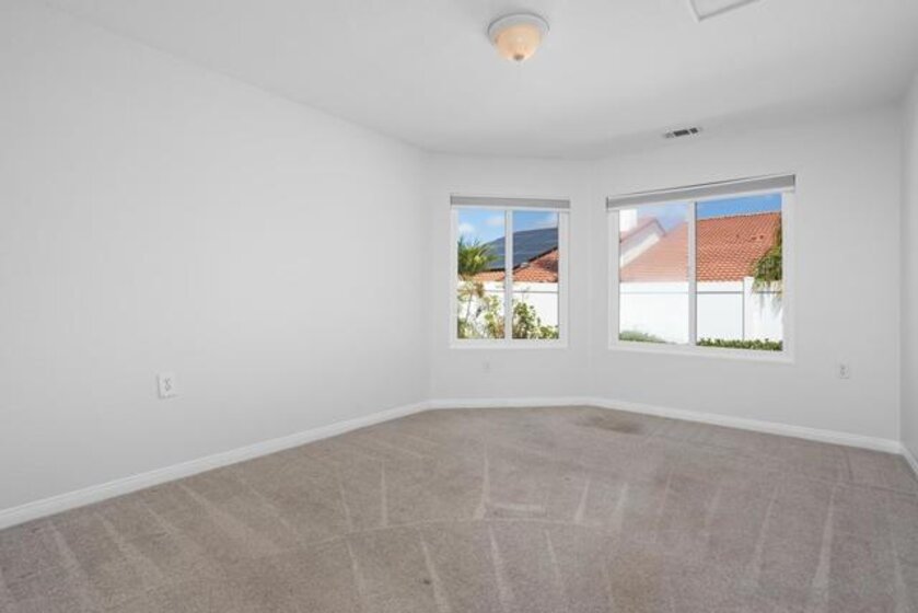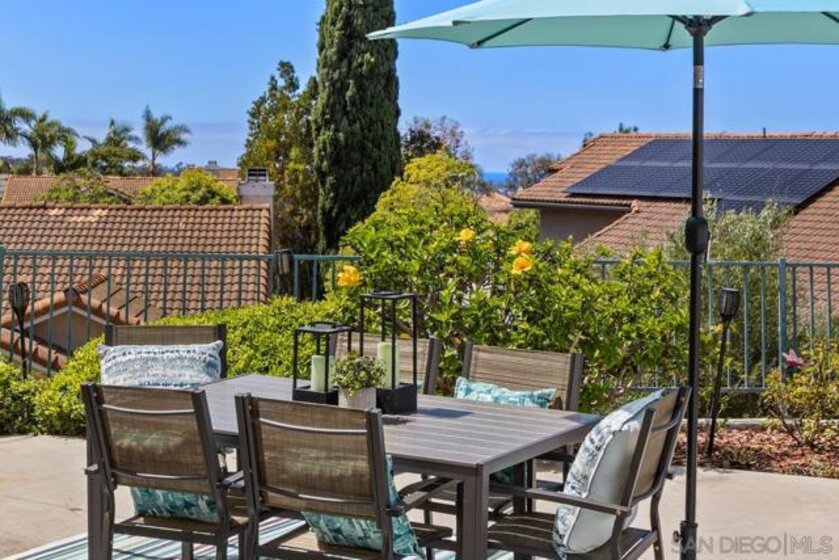 Enjoy relaxed indoor–outdoor living in this light-filled home, where a covered pergola patio, open living spaces, and a thoughtfully designed layout come together for comfortable, easy everyday living. Located in Villa Trieste, a desirable gated 55+ community in Oceanside, this 1,860 sqft single-story townhouse with a versatile loft (optional third bedroom) offers 2 bedrooms, 2 bathrooms, and a bright, open floor plan designed for both comfort and flexibility. Natural light fills the home through soaring ceilings and three sets of French doors—two opening from the family and dining areas and another from the kitchen—creating a seamless connection between indoor and outdoor spaces and inviting in gentle coastal breezes. The kitchen blends function and charm with granite countertops, stainless steel appliances, and a cheerful breakfast nook framed by windows. The spacious primary suite features vaulted ceilings, dual sinks, a large walk-in closet, and a beautifully tiled shower. A comfortable guest bedroom and full bathroom complete the main level, while the loft provides flexible space ideal for a home office, hobby room, or visiting family. Step outside to your private backyard retreat with a pergola-covered patio, lush landscaping, and distant ocean views peeking over the rooftops—an inviting setting for quiet mornings or relaxed gatherings with friends. Additional highlights include central A/C, indoor laundry, and an attached two-car garage. Villa Trieste offers resort-style amenities including a clubhouse, pool, and spa, all just minutes from shopping and dining.