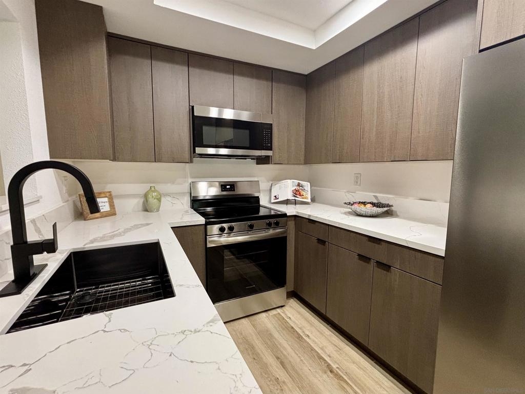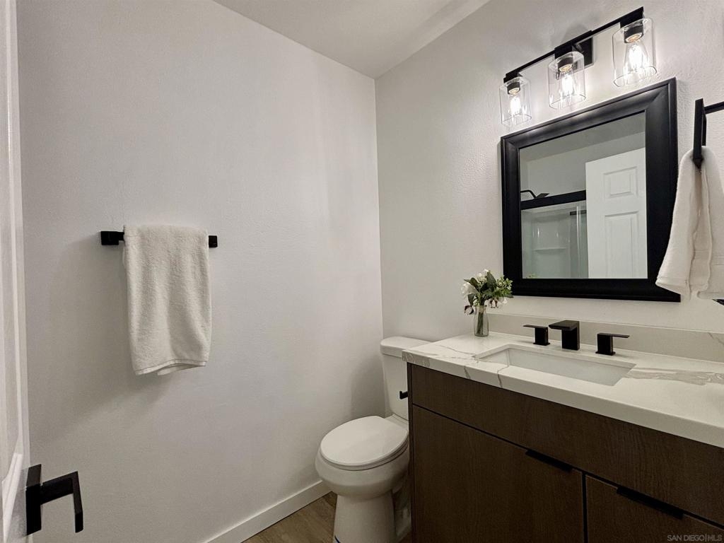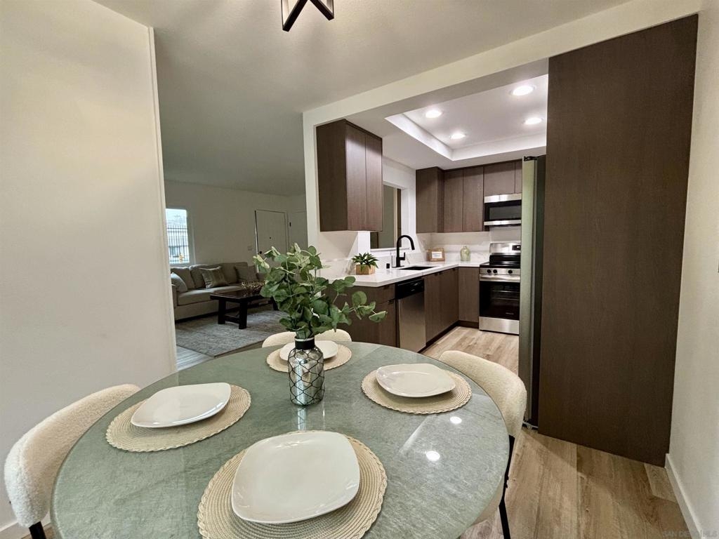 Rare Single Story 3 Bed 2 Bath Condo. On a Cul-de-Sac. Completely Updated! New LVP flooring Throughout, New Kitchen & Bathroom Cabinets, Quartz Countertops, New S/S Appliances, Modern Electric Fireplace, New Windows, Nice Fenced In Patio With Turf. End Unit, Close To The Pool, 1 Car Garage. Walking Distance To Shops & Dining . Welcome to 3401 Del Este Way, a rare gem in the heart of Oceanside! This beautifully updated, single-story condo offers the perfect blend of modern elegance and everyday convenience. With 3 bedrooms, 2 bathrooms, and nestled at the end of a peaceful cul-de-sac, this home is a true find. Step inside to discover stunning new luxury vinyl plank flooring throughout, setting the stage for a fresh and inviting atmosphere. The completely remodeled kitchen boasts sleek quartz countertops, brand-new stainless steel appliances, and stylish cabinetry—perfect for both casual meals and entertaining. The bathrooms have been thoughtfully updated with the same attention to detail, offering a spa-like experience to start and end your day. Relax in the cozy living area featuring a chic, modern electric fireplace, or step outside to your private patio with low-maintenance turf—ideal for outdoor lounging and unwinding. As an end unit, this home offers added privacy and is just steps from the community pool for those warm California days. Additional perks include new windows that fill the space with natural light, a 1-car garage, and a location that can’t be beat—walking distance to shops, dining, and all the conveniences you need. Don’t miss this rare opportunity to own a single-story condo that’s move-in ready and waiting to welcome you home!