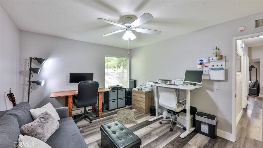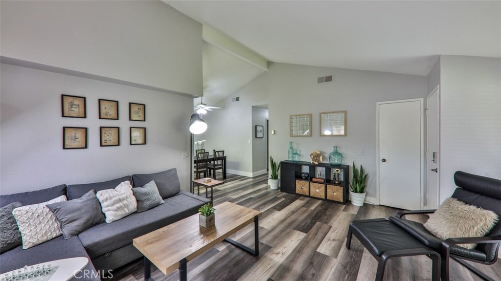 Enter into this serene spacious condo a short distance from the beach! Featuring 2 bedrooms, 2 baths’ single story detached PUD with a separate two car garage a short hop from the unit. As you enter into the newly redone luxury vinyl flooring you will be impressed by the lovely vaulted ceiling living area. Enjoy the vibes while the cozy fireplace is on or sit in the beautiful private fenced yard & hear the birds hum. The semi open concept kitchen and dining is a perfect area for entertaining. As you walk the halls you will see the separate interior spacious laundry room. The master with its own master bath is currently used; a dual office has a walk-in closet with loads of closet space, a fashionista's dream. The community has lush green landscape throughout and a community pool & spa. This home is move in ready and won’t last!