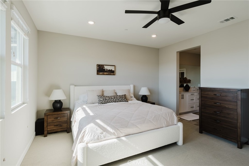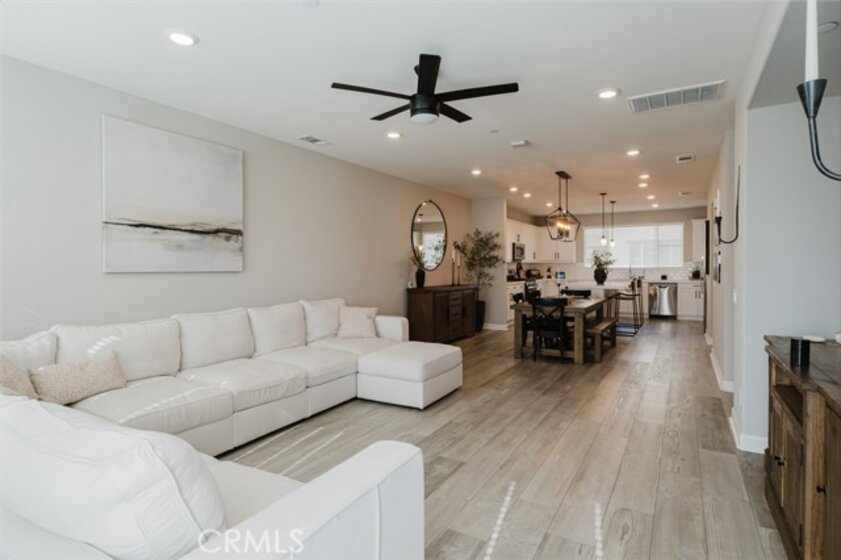Welcome to the highly sought-after Ventana at El Corazon, one of Oceanside’s premier neighborhoods. Ideally located approximately 15 minutes from Oceanside City Beach and Camp Pendleton, this solar-powered, smart home offers modern living with thoughtful design across three levels. This turnkey residence features 4 bedrooms and 3.5 bathrooms. The first level includes a 2-car garage, a private bedroom with an en-suite full bathroom—ideal for guests or multigenerational living, and direct access to a front patio. The second level is an entertainer’s dream, showcasing a chef’s kitchen with stainless steel appliances, white shaker cabinets, a designer backsplash, soft-close cabinetry and drawers, and a large center island with ample storage. This level also includes a half bathroom, laundry room, dining area, spacious great room, and a private balcony. The third level is your private retreat, featuring a generous owner’s suite with dual sinks, a walk-in closet, and an en-suite bathroom. Two additional secondary bedrooms and a full bathroom with dual sinks complete the top floor. Residents of Ventana at El Corazon will enjoy the close proximity to future parks, trails, open space, and with the recently opened Aquatic Center and Frontwave Arena, home of the San Diego Clippers. Notable upgrades and smart-home features include: Luxury vinyl plank flooring on the 1st and 2nd levels, Upgraded carpet in all bedrooms, Custom blinds on all windows, Ring alarm system/doorbell Pro, Schlage Encode Wi-Fi deadbolt, Rinnai tankless water heater with dual remotes, Puronics Defender iGEN C whole-house water filtration system & reverse osmosis at kitchen sink, EV-ready conduit, Ruckus ICX 12-port ethernet switch with (2) wireless access points, (2) Honeywell ProSeries Wi-Fi thermostats, Solar is on a PPA. Lastly, all MAJOR APPLIANCES INCLUDED!
