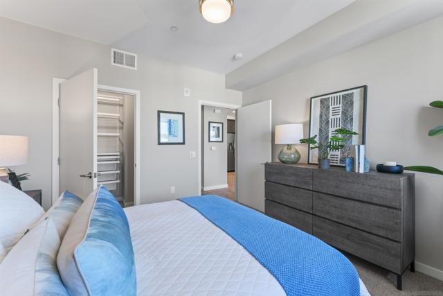 Welcome To SALT. This distinctive condominium, just two blocks from the beach, has a light and airy open floor plan. Enjoy Ocean breezes and views from your private deck. European-style kitchen cabinets with quartz countertops and GE GAS appliances await you. The 5-year-old home has new window treatments, a new Samsung Full-Size Washer/Dryer, new carpet and pad, and new Closet Organizers in the walk-in closet. SALT is in the heart of Downtown Oceanside just 2 blocks from the pier and beach. Walkable to shopping, culinary venues, gastropubs, entertainment, and local events. The Amtrak Station is 3 blocks south. We have a 94% walkability rate! The amenities include a rooftop lounge, clubhouse, game area, fire-pit for gathering, BBQ grills, bike storage & repair shop, surfboard, beach gear storage & shower, sunset lanai, resident lounge, conference room, EV & bike charging stations. The parking structure is double-gated for security.
