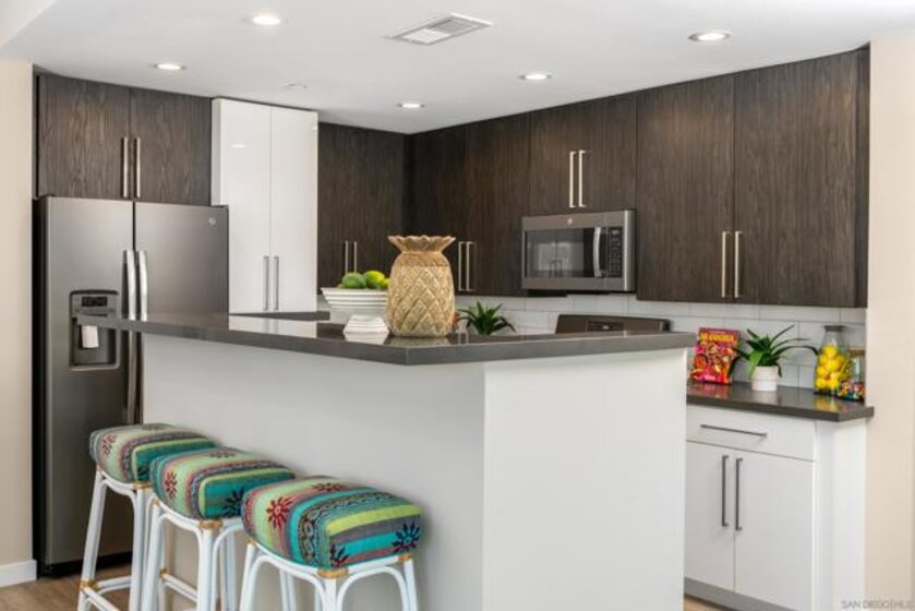 Distinctive condominium just two blocks from the iconic Oceanside pier. This home is light and airy, with floor-to-ceiling windows in the family room. Enjoy Ocean breezes and views from your private deck. European-style cabinets with quartz countertops and GE Gas appliances await you. This 4-year-old home has new window treatments, a new Samsung Full-Size Washer/Dryer, new carpet and pad, and new closet organizers in the primary walk-in closet. SALT Beach Condos is in the heart of Downtown Oceanside. Walkable to abundant shopping, culinary venues, gastropubs, entertainment, and the Amtrak Train Station.