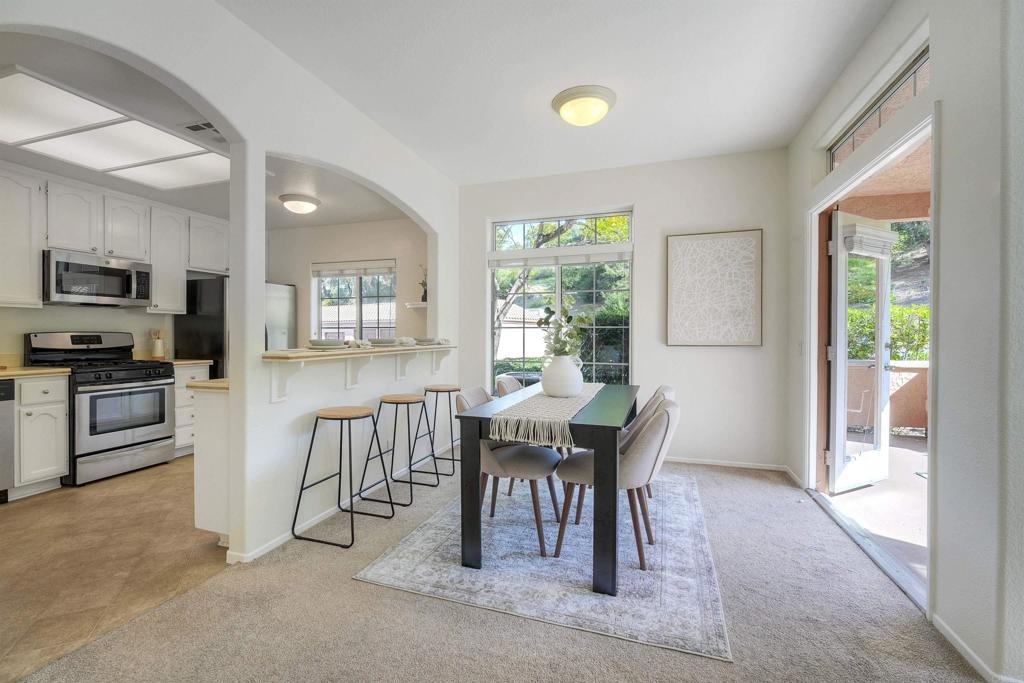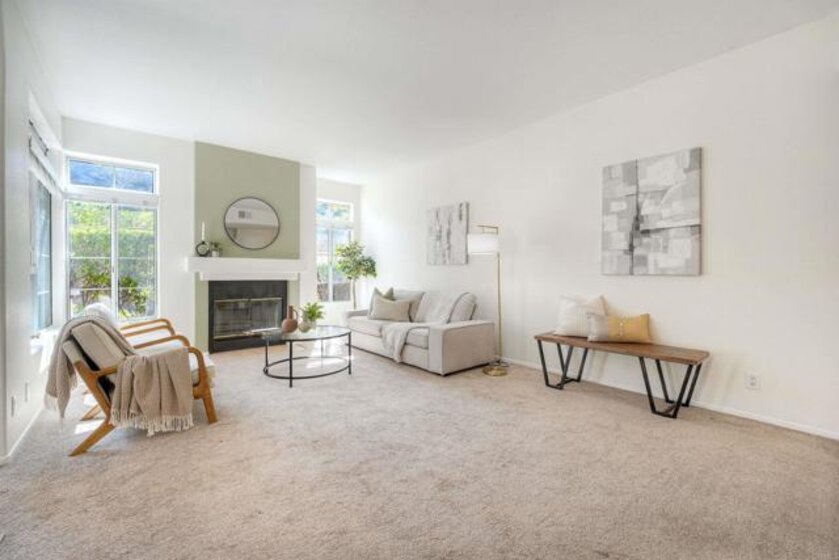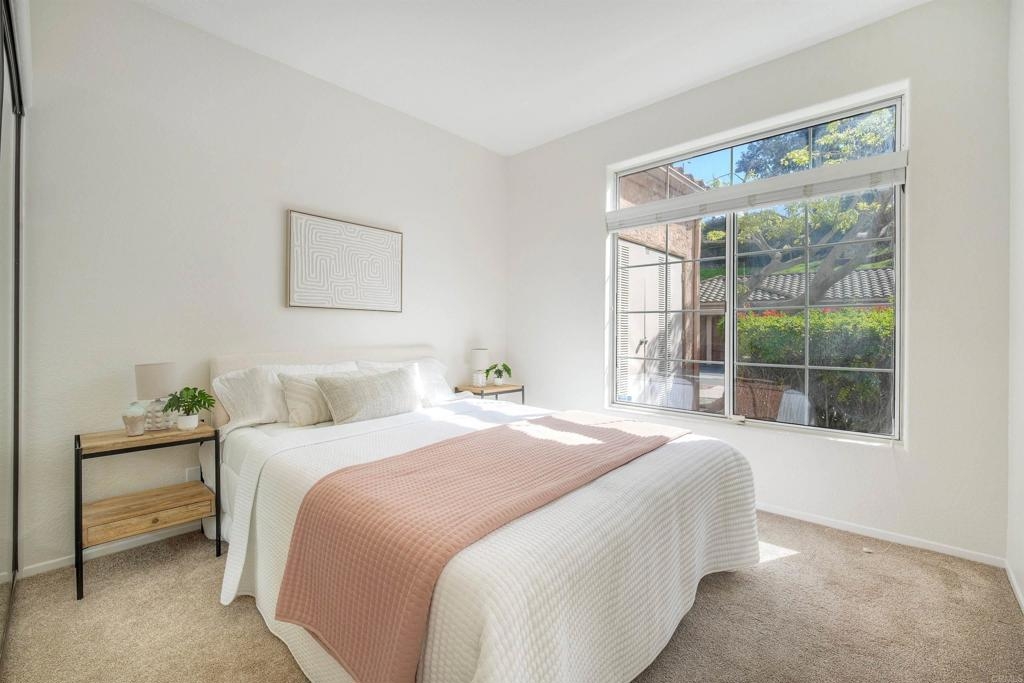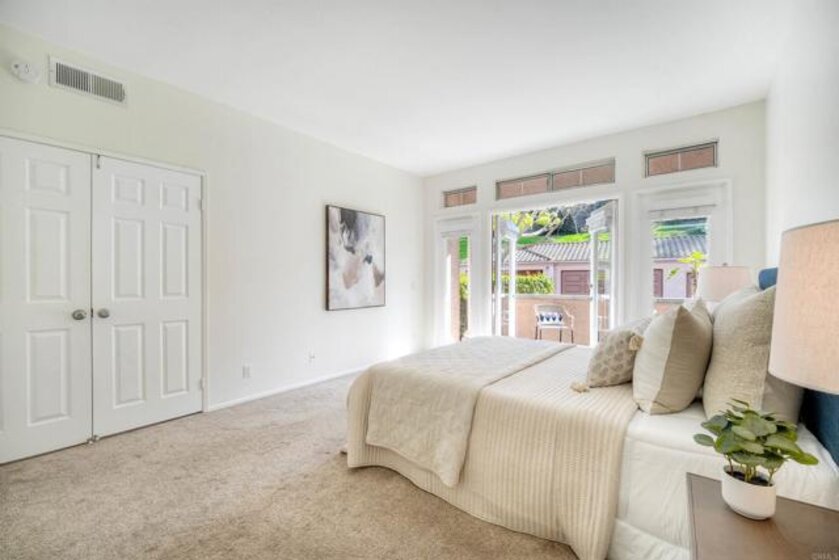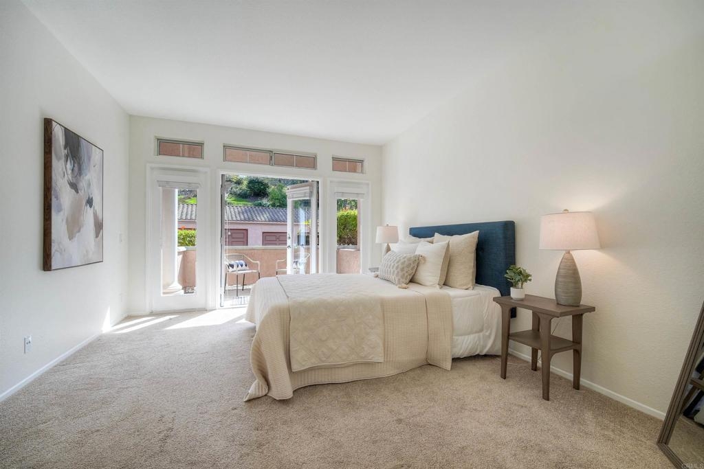 Nestled in a beautifully maintained gated community; welcome to Palmilla Del Oro. This home features a move-in-ready, ground-level end unit with two patios, and a sunny kitchen, a gas stove and refrigerator. There is a patio just outside of the Dining area for relaxation. The spacious master suite has direct access to another patio with views of trees adjacent to Mira Costa College. Two additional bedrooms add versatility for a home office or a guest room. With easy access to I-5 and Highways 78 & 76 this home is located just minutes from the best beaches in North County as well as scenic trails, dining and shopping.