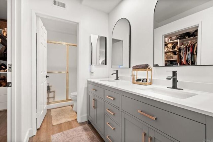 Welcome to this gorgeous upper-end unit in the desirable gated community of Palmilla in Oceanside! This home offers an open floor plan filled with lots of natural light and new vinyl flooring throughout. Step into the spacious family room featuring vaulted ceilings and a cozy fireplace. The updated kitchen opens to the dining area and family room, creating an inviting space for everyday living. Enjoy the large balcony overlooking the sparkling community pool and take in the cool breezes that Oceanside has to offer. The primary bedroom offers French doors that open to a private balcony, a beautifully updated en-suite bath, and a spacious walk-in closet designed by Closet World. Two additional bedrooms plus an updated guest bathroom provide plenty of space for family, guests, or a home office. You’ll also love the convenience of a full-size laundry closet, air conditioning, a detached one-car garage, and an extra assigned parking space. The Palmilla community features great amenities including a pool, spa, playground, and picnic area. Conveniently located near shopping, restaurants, and schools—this home truly has it all!!