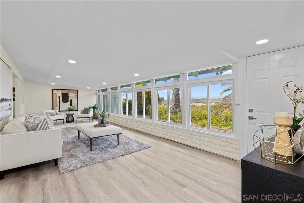 Welcome to the comfort of this beautifully remodeled home in the popular Oceana 55+ Community. Don't miss this exclusive opportunity to get a rarely available end unit perched on the bluff overlooking the valley to the north and the community garden below. The home features new luxury vinyl flooring throughout, new stainless steel appliances, fully remodeled kitchen and bathrooms, and a spacious enclosed lanai flooded with natural light overlooking the serene and dynamic view. This home is a peaceful retreat where you will love to host friends in this vibrant community loaded with amenities including a large community garden, two swimming pools and a spa, clubhouse, billiards room, pickleball court, dog park, walking and biking trails, and so much more. Adjacent to the the beautiful Emerald Isle Golf course where owners receive discounted green fees. Get involved in countless activities including book clubs, wood shop, lapidary, golf, trivia nights, and more. This community is close to nearby shopping and public transportation and just 4 from the beach and a 10 minute drive to downtown Oceanside and the pier.