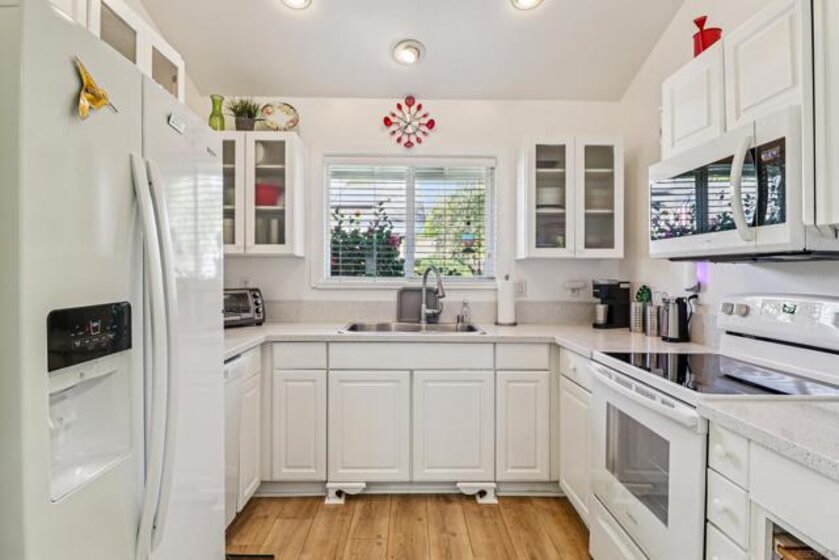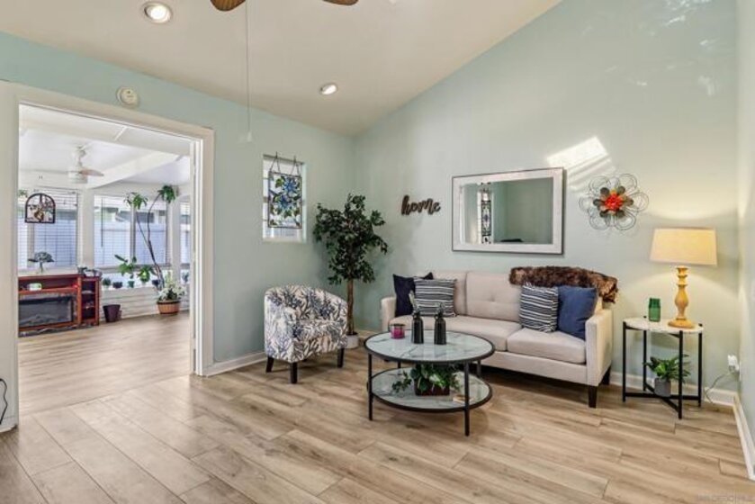 Oceana community - 55+ age restricted. This is a corner home with only one attached neighbor. The home is 940 sq. ft. but an additional fully enclosed sunroom adds more sunny living space. Enclosed laundry room has full size washer and dryer + counter top. Kitchen has been updated with white quartz counters, painted cabinets and updated appliances. Remodeled bathroom! Windows have been updated to dual panes for better energy efficiency. Air conditioning mini split units are present in the living area and sun room. HVAC furnace was also replaced by current owner. This is a great turn-key home offering low maintenance & great community amenities! Oceana Community Center Complex includes the clubhouse which has an auditorium and stage, a fully equipped kitchen, a card room, a computer center, a library, and a pickleball court. In addition, there is a beautiful patio with two pools (both solar-heated year-round) and a jacuzzi. There is also a wood shop, a lapidary shop, a billiards room, an arts and ceramics building, and easy access to Emerald Isle Golf Course which is adjacent and offers discounted rates for Oceana residents.