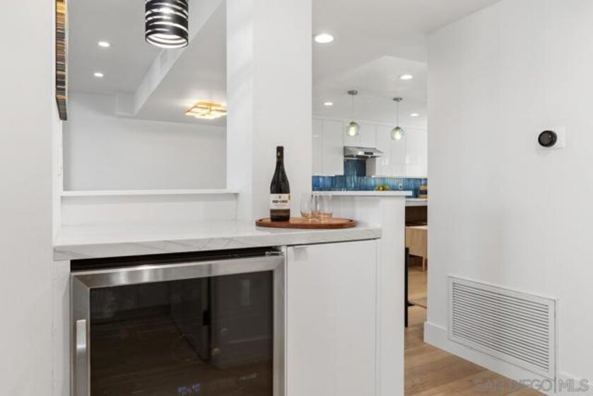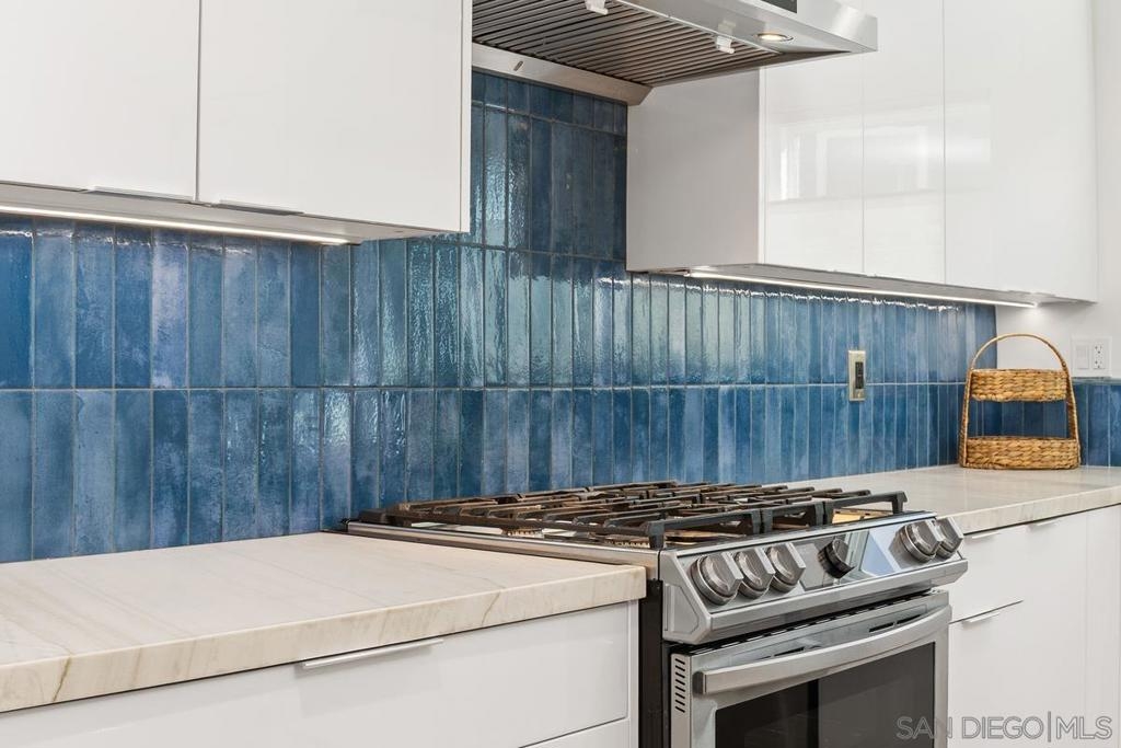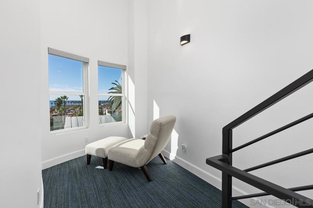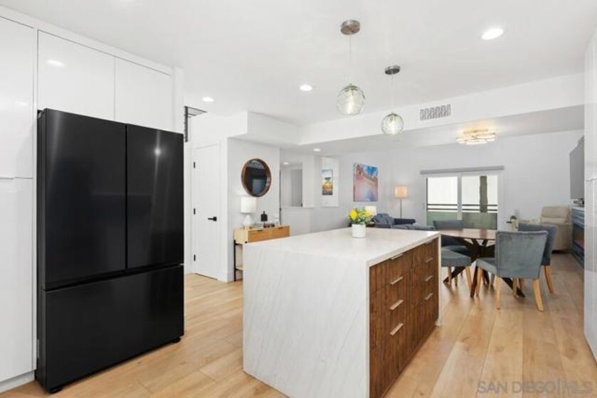 This highly upgraded residence offers refined design, modern systems, and exceptional functionality arranged to maximize comfort, privacy, and coastal views. The entry level opens to the main living space with an open kitchen, dining, and living area along with a full bedroom and bath ideal for everyday living and entertaining. The kitchen features quartzite countertops, a waterfall island, soft close cabinetry with roll out storage, custom pantry, wine refrigerator, 5 burner gas cooktop, and split oven with air fryer function. A 60 inch Dimplex electric fireplace anchors the living area with custom and gallery lighting. Additional upgrades include a newer HVAC system, large capacity tankless water heater, updated electrical and lighting, and wide plank CoreTec luxury vinyl flooring throughout the main living areas. The second level hosts the primary suite, an additional bedroom and full bath, and flexible bonus space ideal for an office or reading nook. The secondary bedroom offers access to a private patio balcony overlooking Coast Highway and the Star Theatre. All bathrooms have been renovated with frameless shower glass, Kohler fixtures, custom storage, and illuminated medicine cabinets. The upper level provides flexible space and opens to a private rooftop deck with panoramic ocean views. Additional highlights include solid core interior doors, custom window coverings, smart home features, private storage, sauna access, and secure bike storage. Ideally located near downtown Oceanside, the pier, beaches, dining, and shopping.