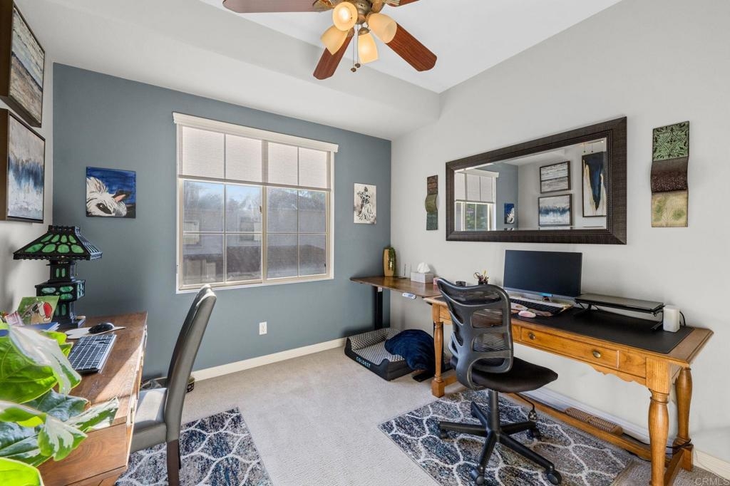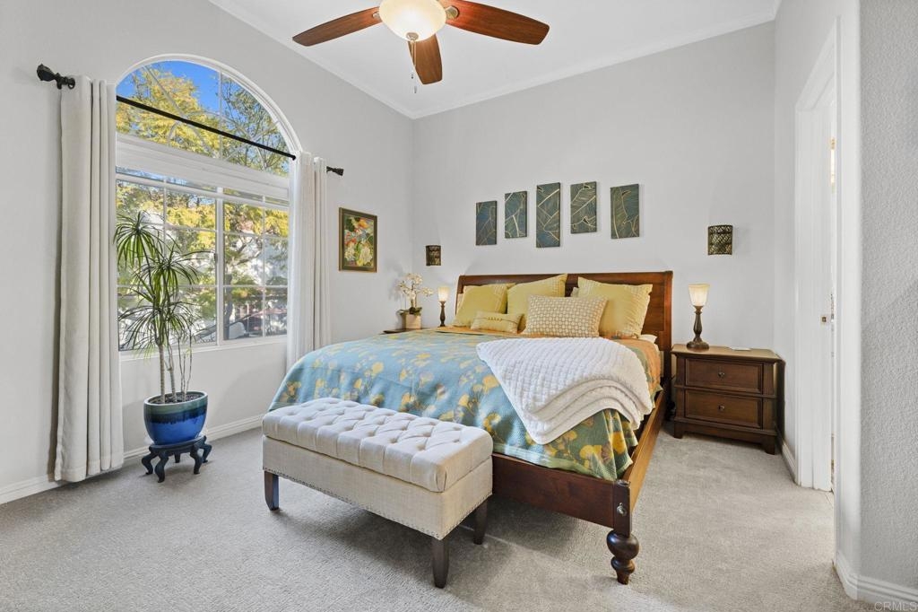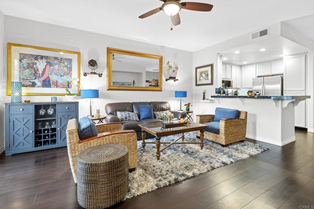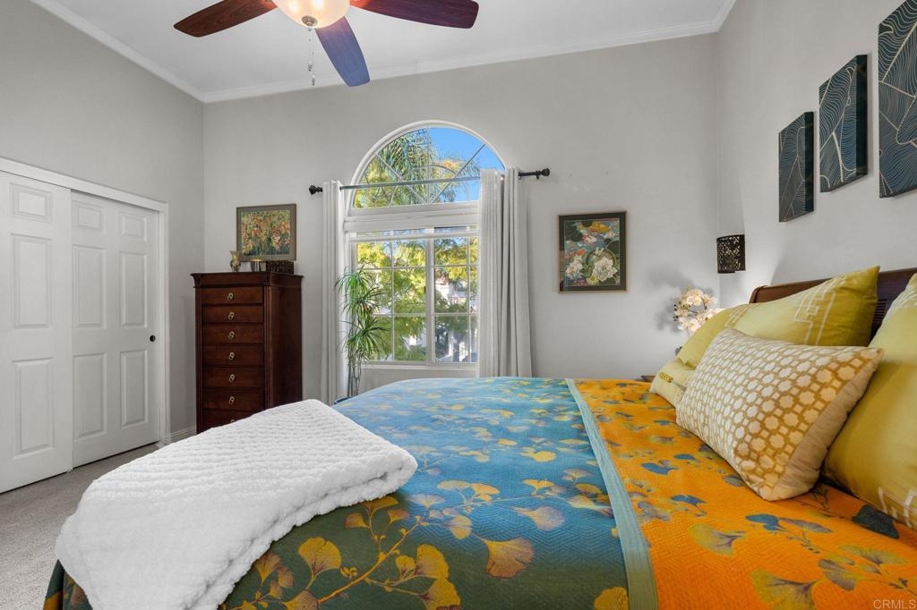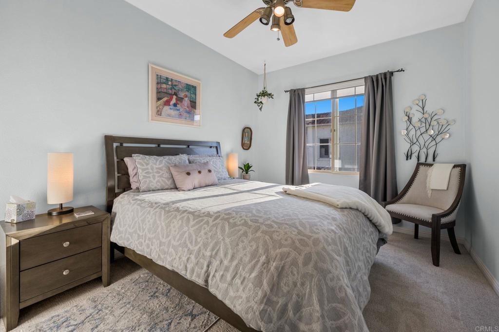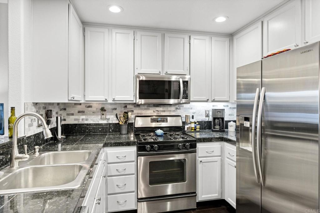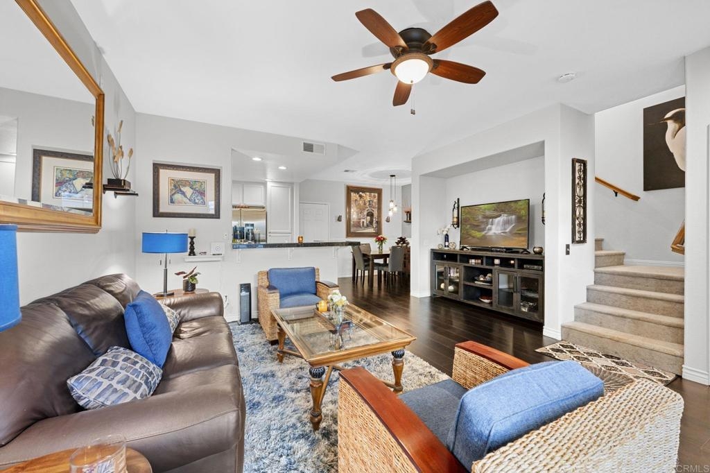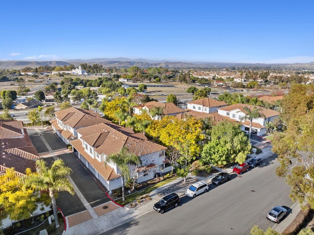 Welcome to the perfect turnkey townhome in beautiful Oceanside. Only 5 miles to the Pacific ocean and harbor. Enter the unit through your cozy private front porch and enjoy a table fire and a drink. Go through security screen and front door to an open concept first floor with gorgeous wood flooring. Kitchen complete with stainless steel appliances and granite counters. Light grey cabinets complete the kitchen. Pantry in kitchen as well as second pantry in dinette. Half bathroom downstairs for guests. Going upstairs- enjoy new carpeting and 4 inch baseboards. Primary bedroom has soaring ceilings, crown moulding and a fantastic view through the extra large windows. Large master with ensuite bathroom. Closet space galore. Closets in primary as well as walk in closet in primary bathroom. Washer and dryer in upstairs hall closet. Newer Samsung matching set stays with unit. 2 other bedrooms have been upgraded with built-in closets with remote controlled lighting. Luxury window coverings have been upgraded throughout home from 3 day blinds. 2 car attached garage off kitchen with storage and automatic garage door opener. Ring alarm system will stay with house.