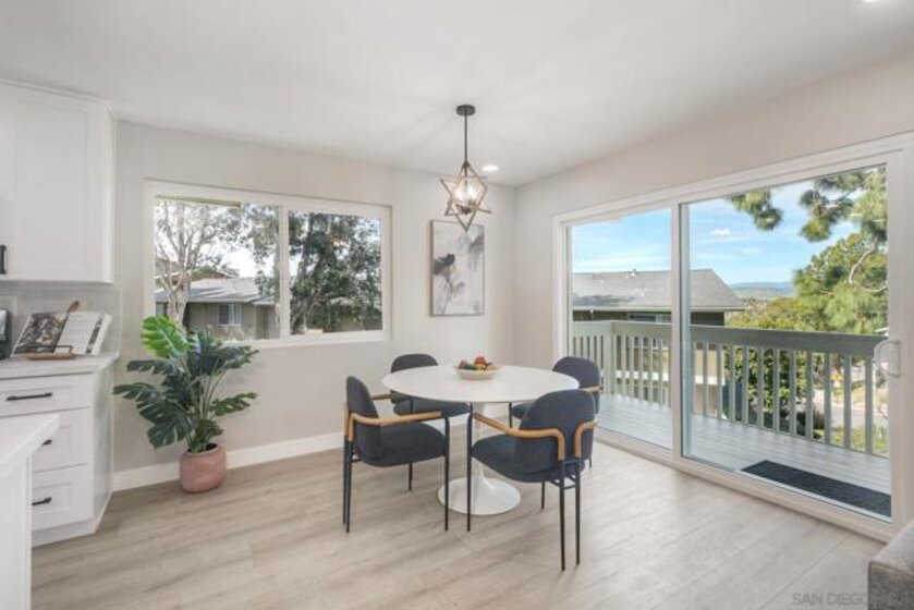 Quail Ridge Community is highly sought after for being just minutes from Oceanside Harbor, the beach and Camp Pendleton. This two bedroom reverse layout offers your living space on the entry level, along with a patio right off the dining area, downstairs, the layout boasts two bedrooms and two full baths. The master bedroom has a slider leading to your private outdoor space. The galley style kitchen has been updated with new cabinetry counter tops and appliances. Laundry room is located just off the kitchen. Windows have been updated also!